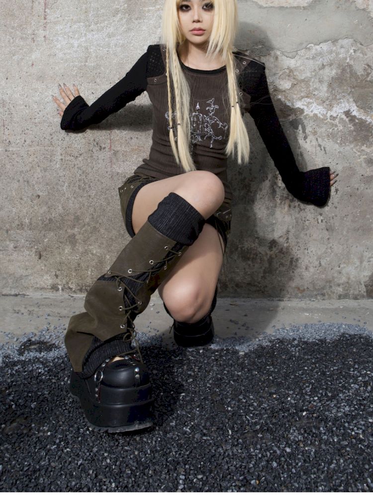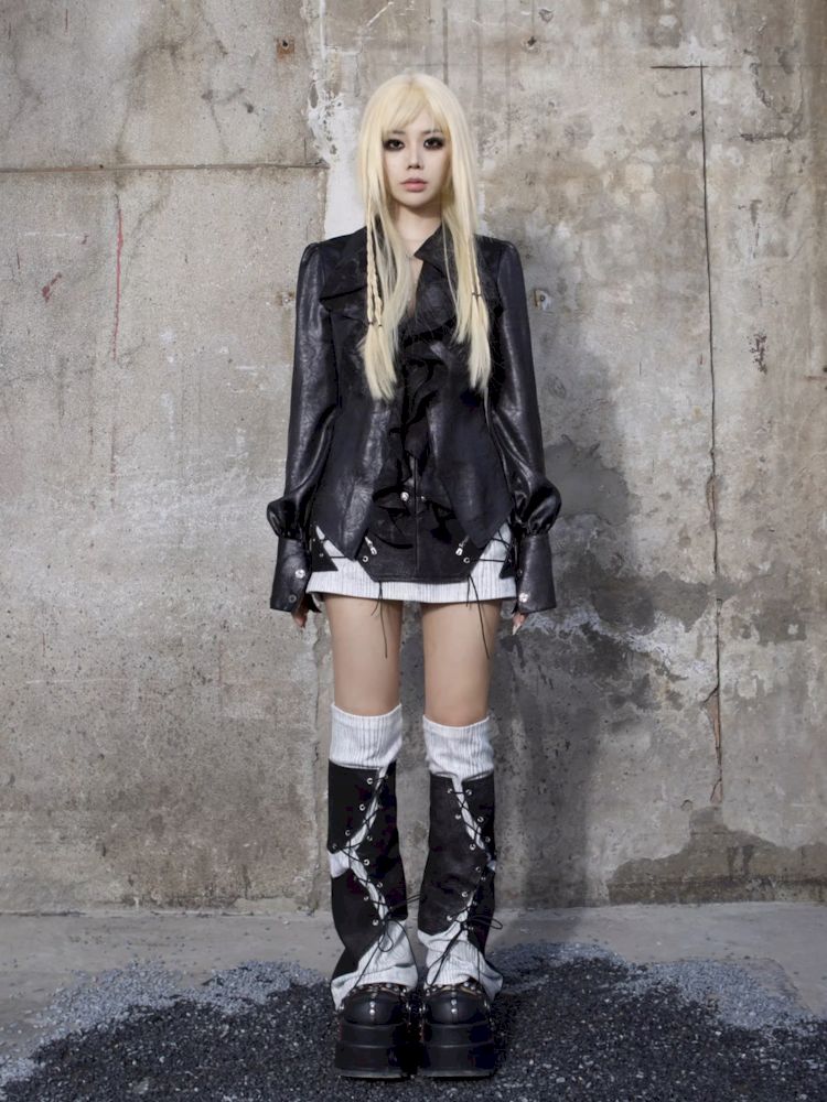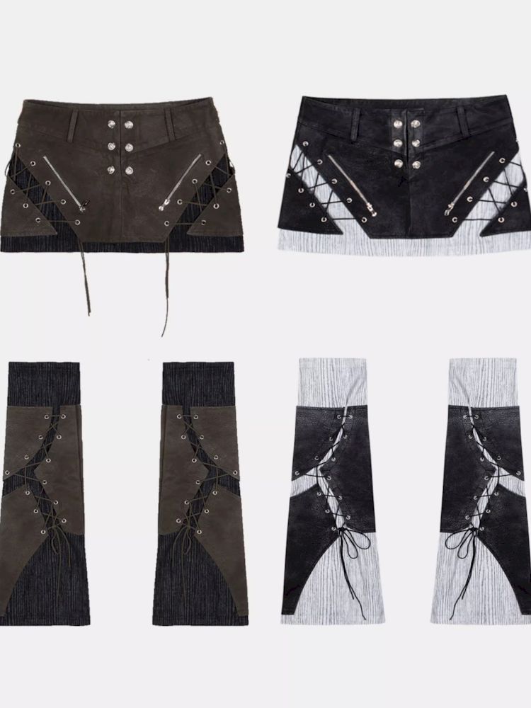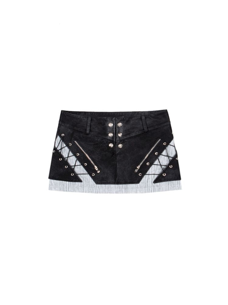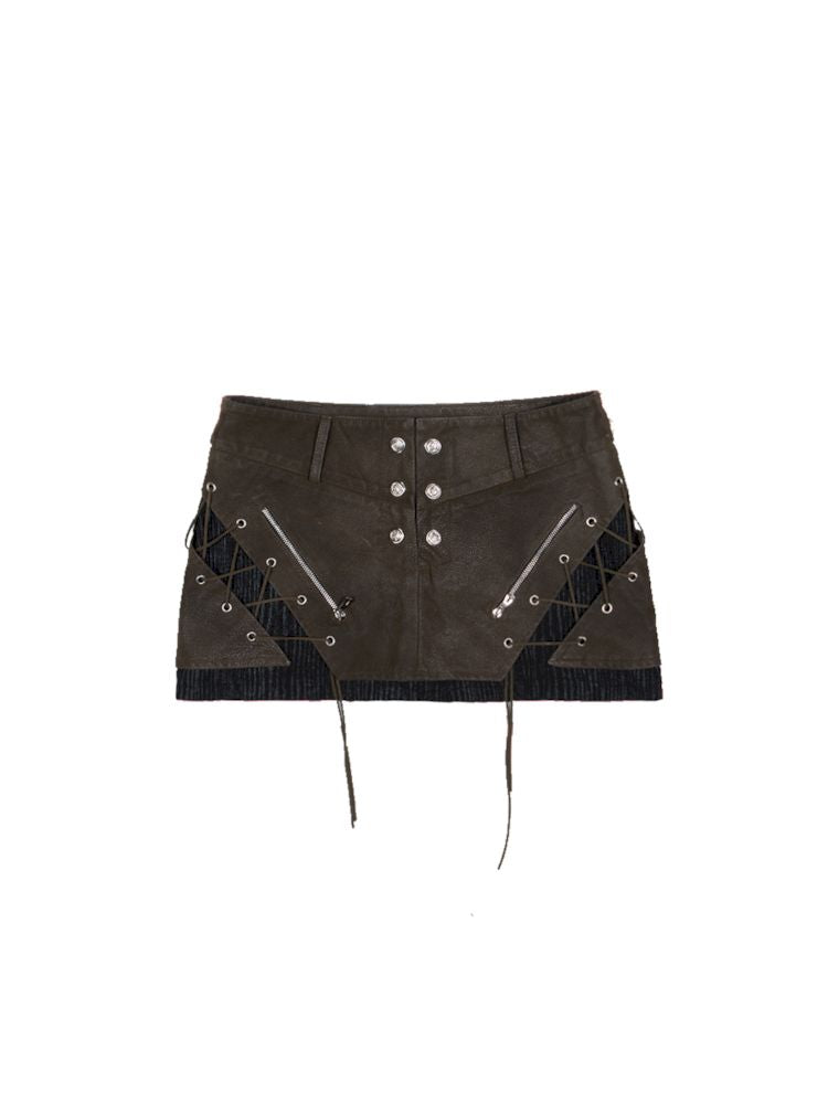 Heavy duty washed low waist leather skirt【s0000007581】