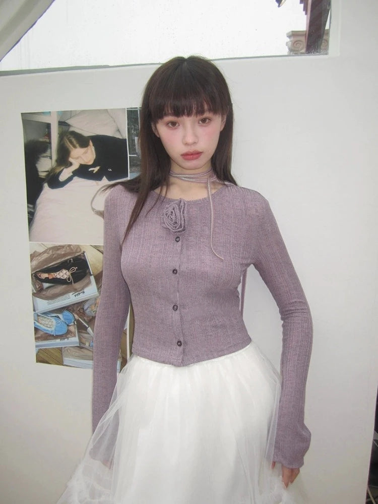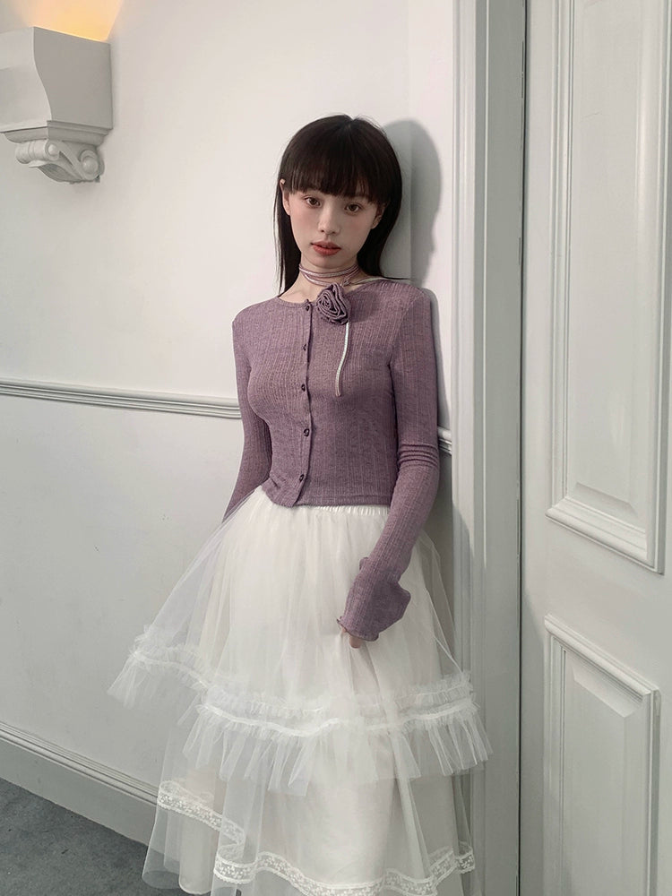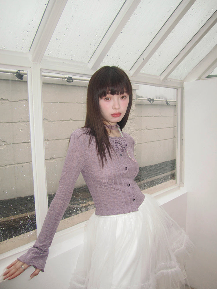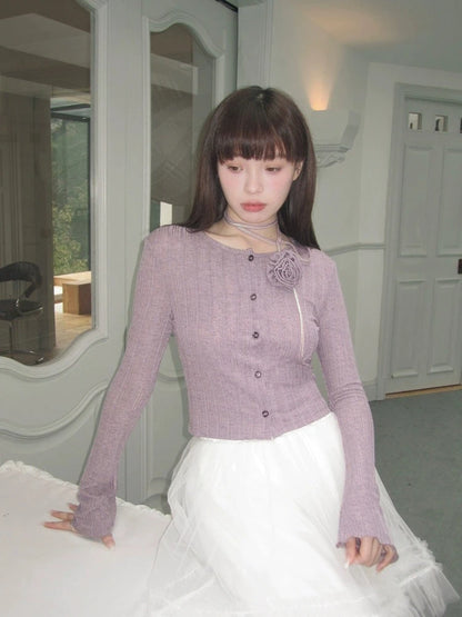 Purple knit cardigan【s0000007611】