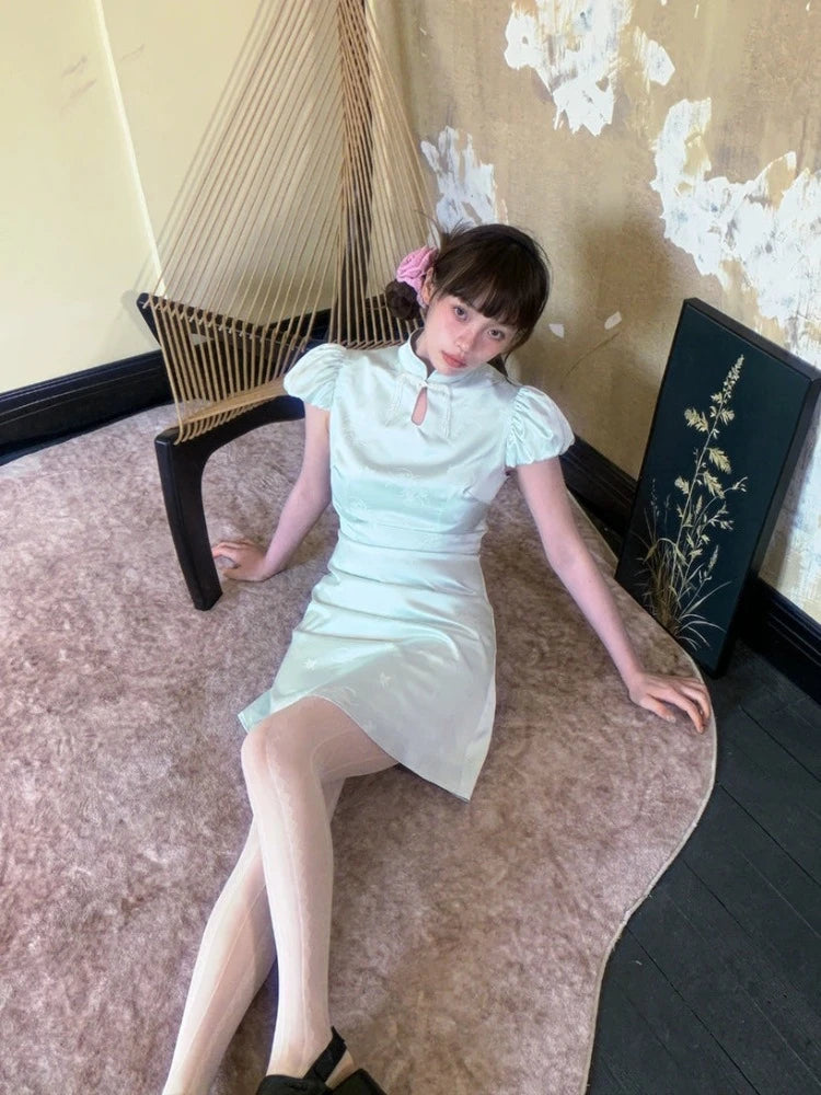 Chinese style short sleeve short dress【s0000007621】