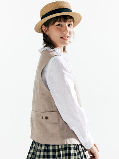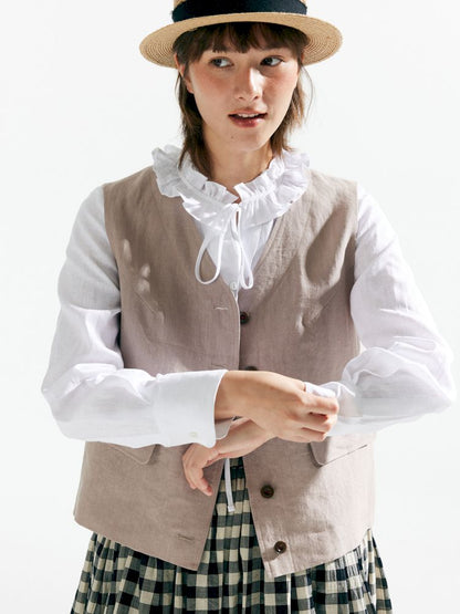 Retro Casual V-neck Linen Vest Jacket【s0000007627】