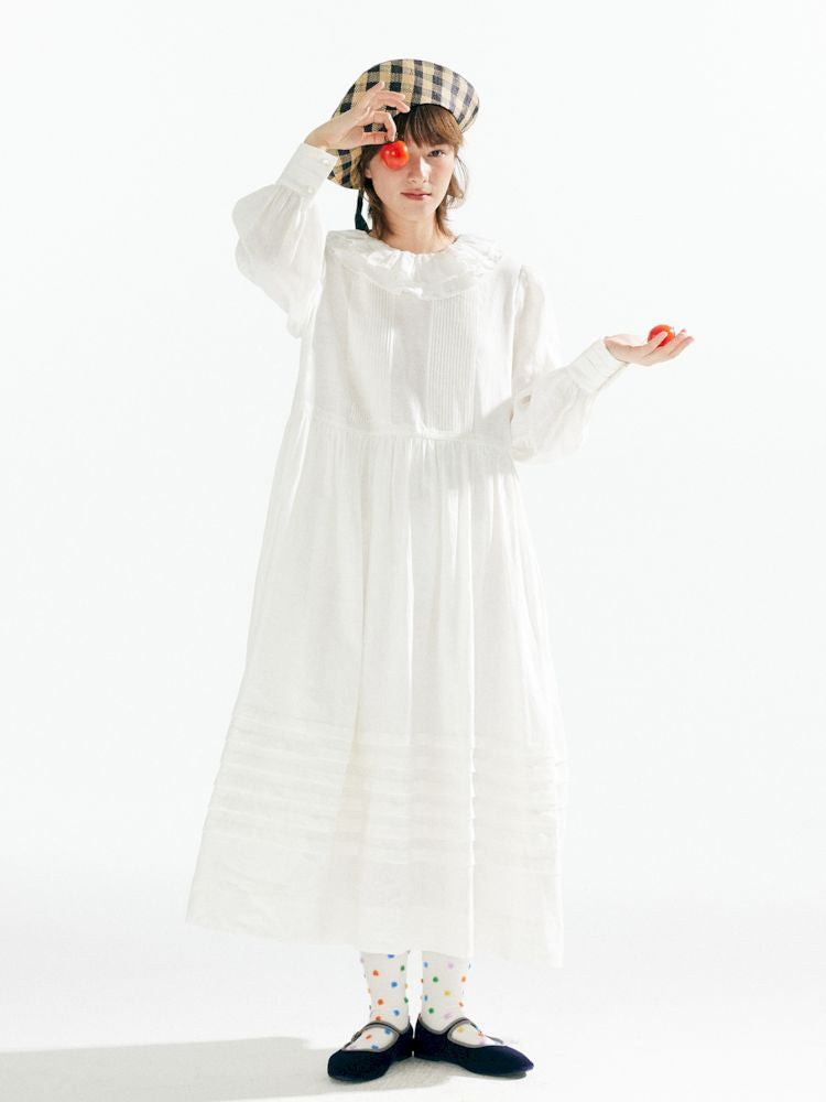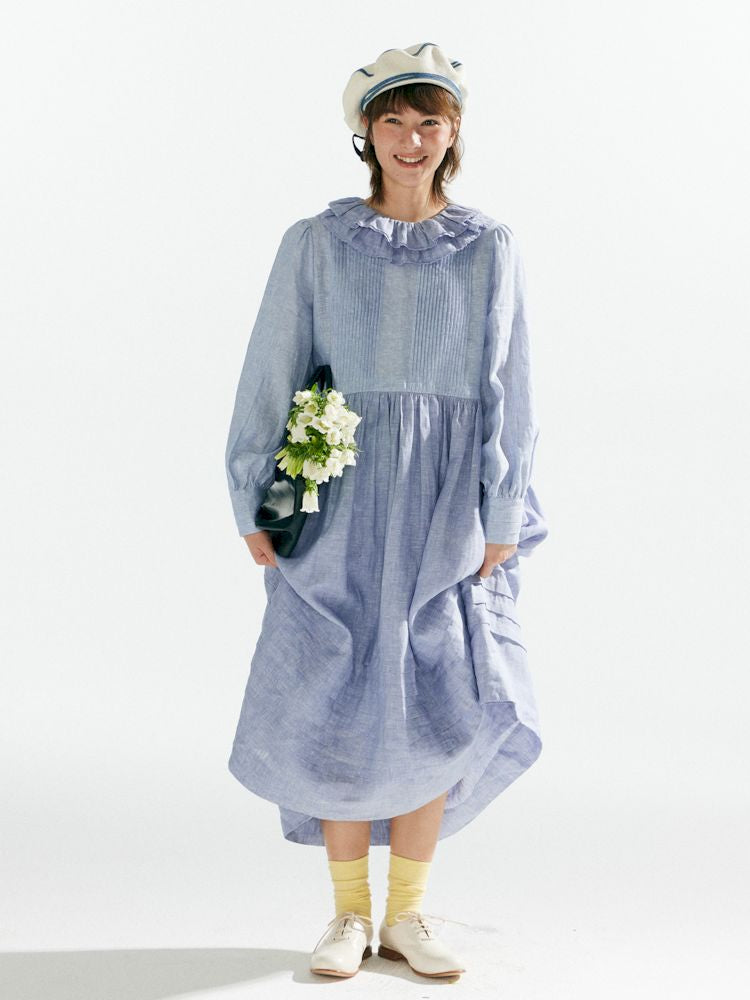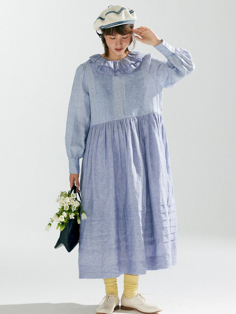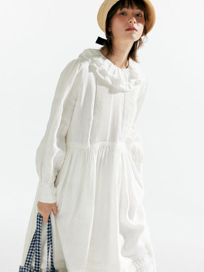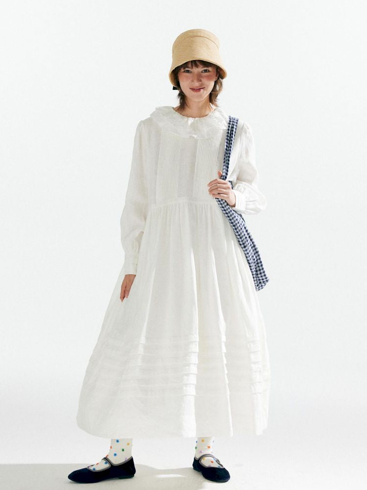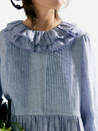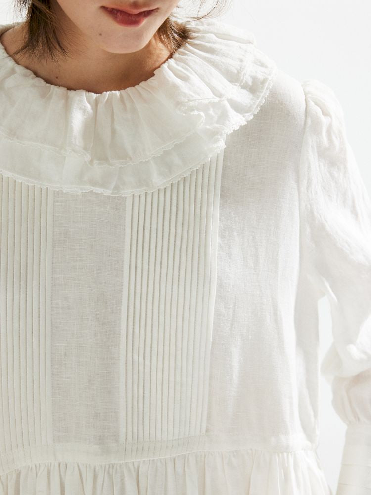 Pleated Ruffle Lace Neck Dress【s0000007635】