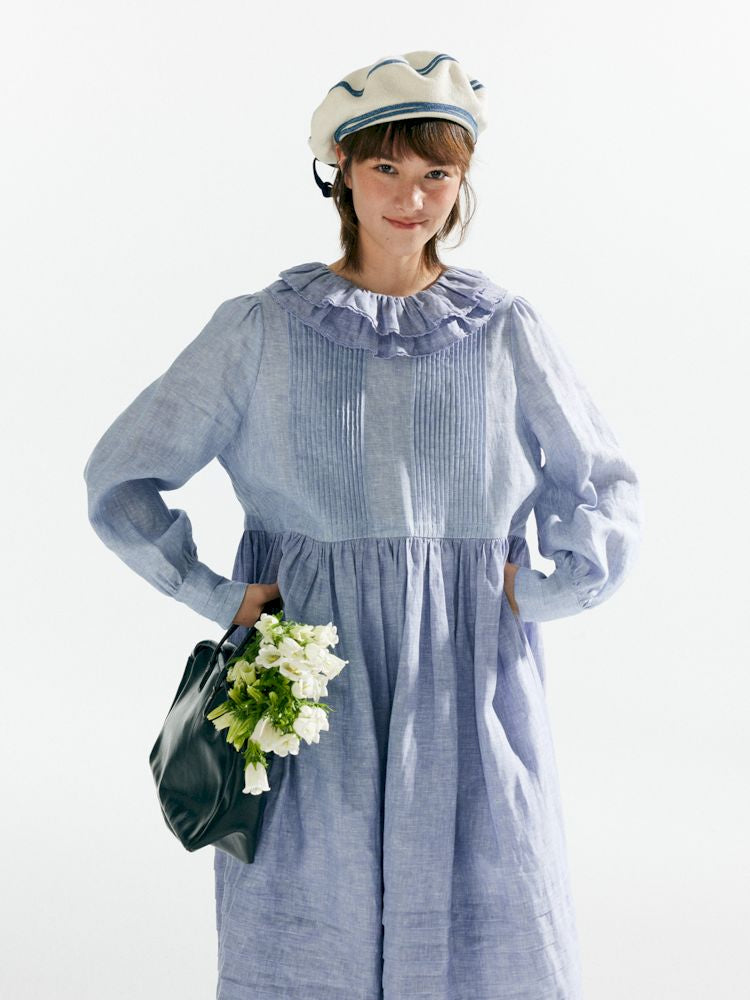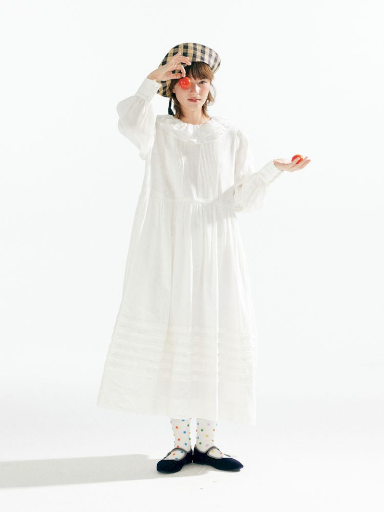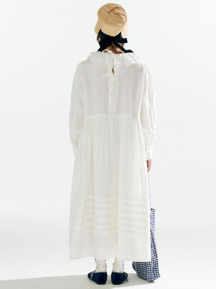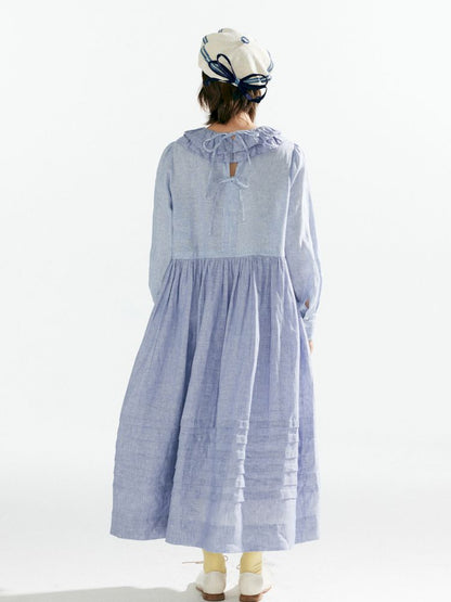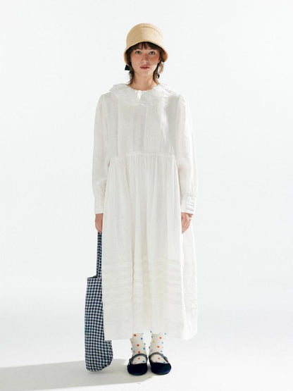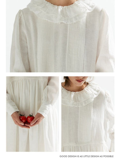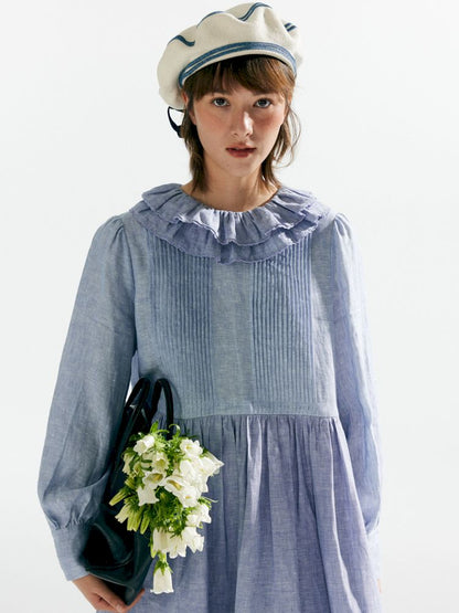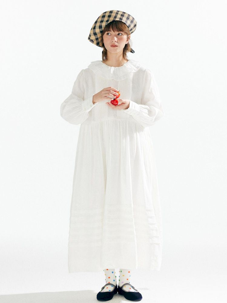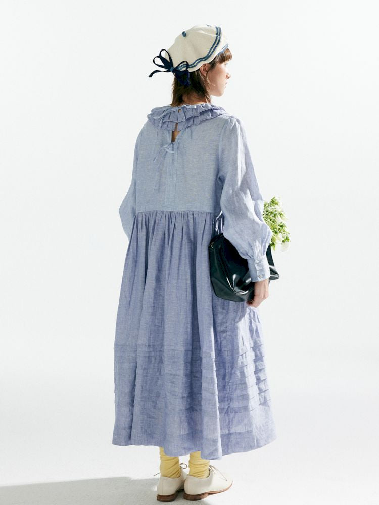 Pleated Ruffle Lace Neck Dress【s0000007635】