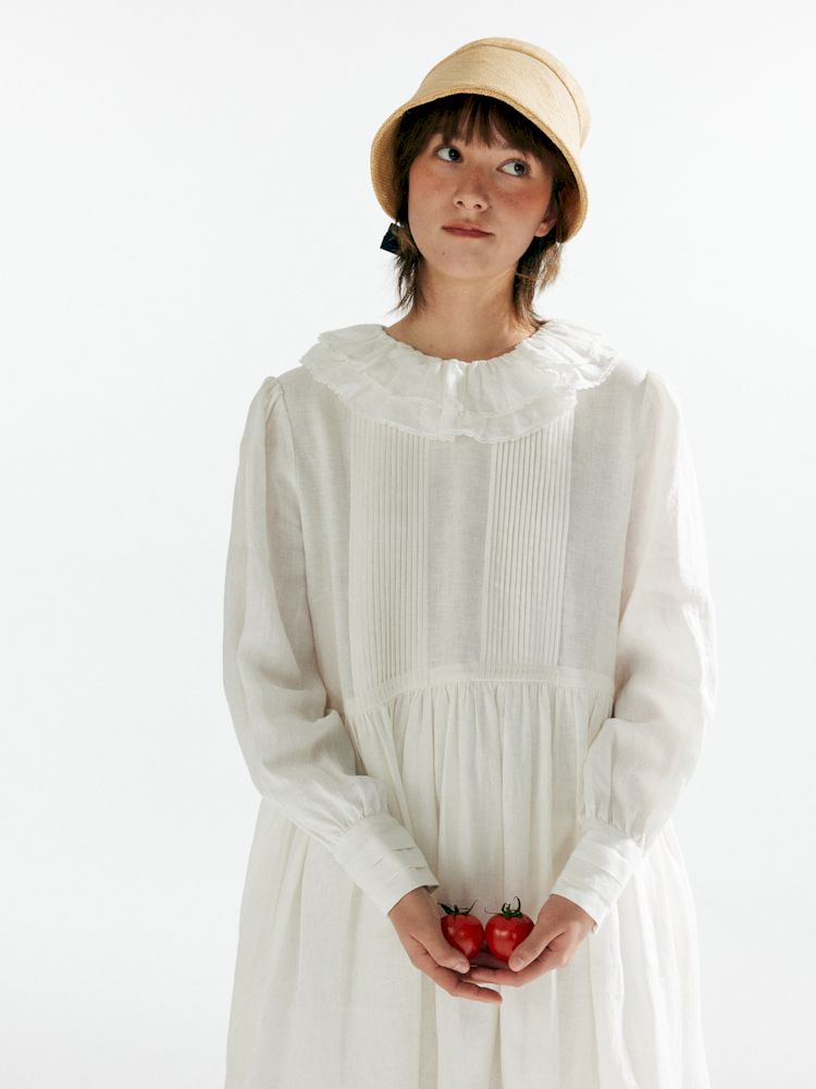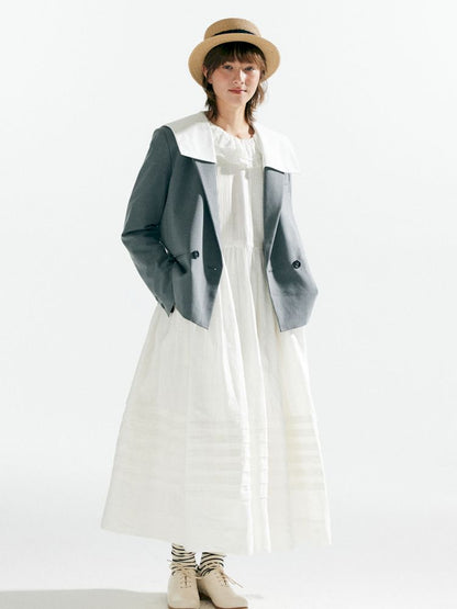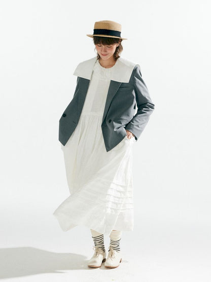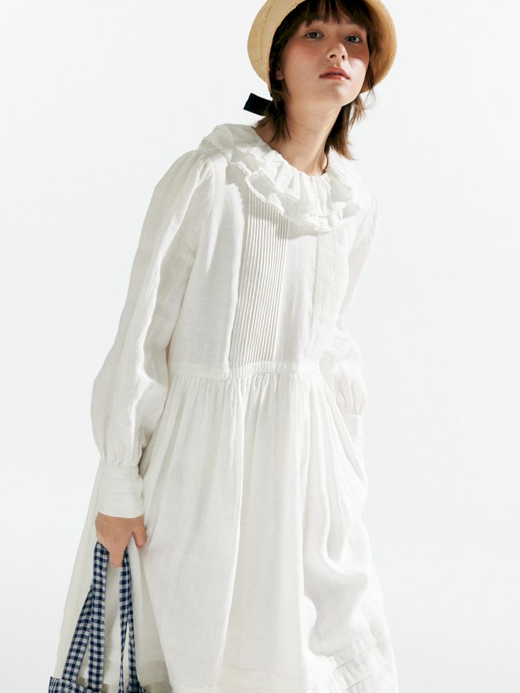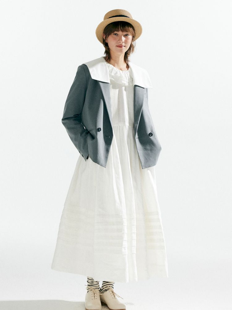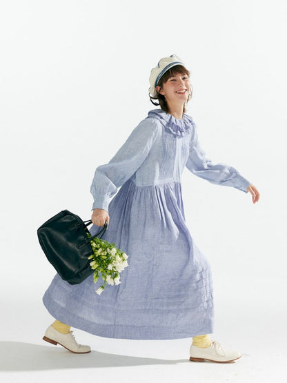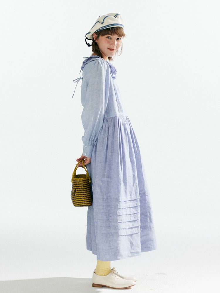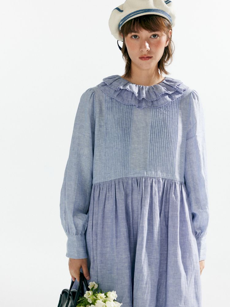 Pleated Ruffle Lace Neck Dress【s0000007635】