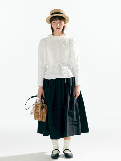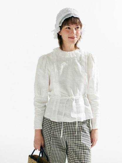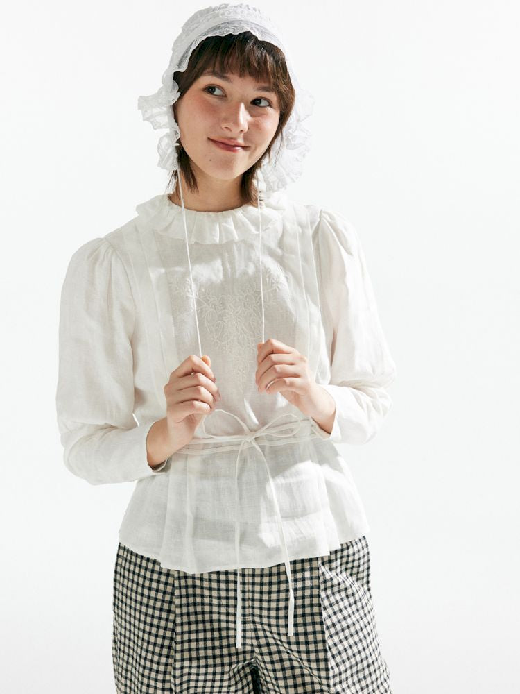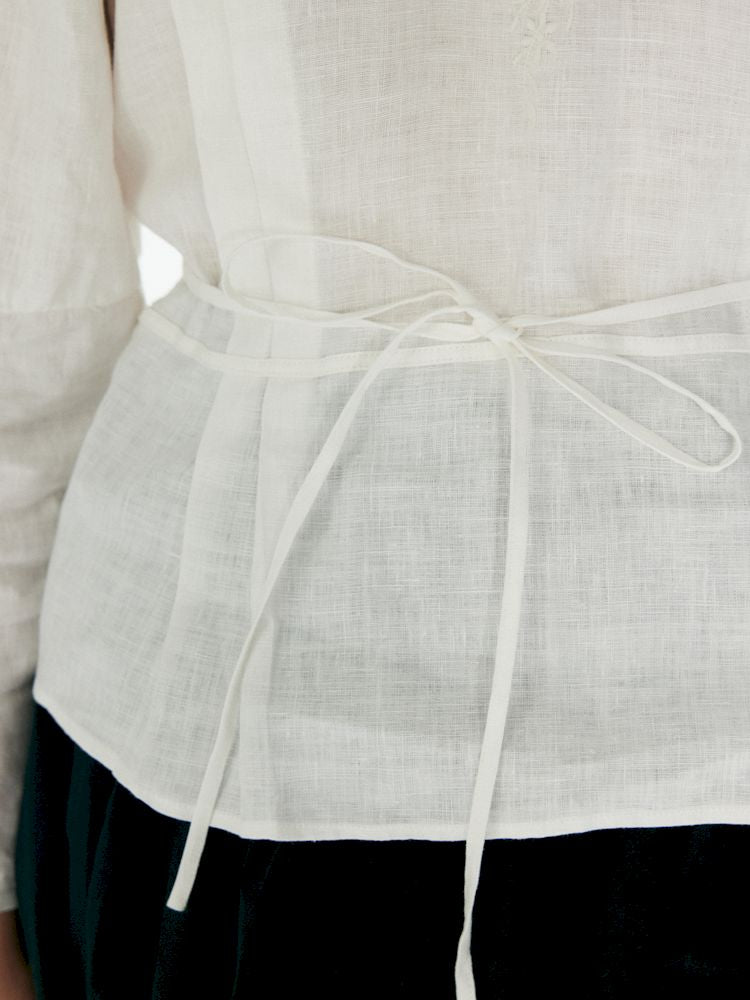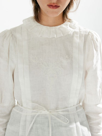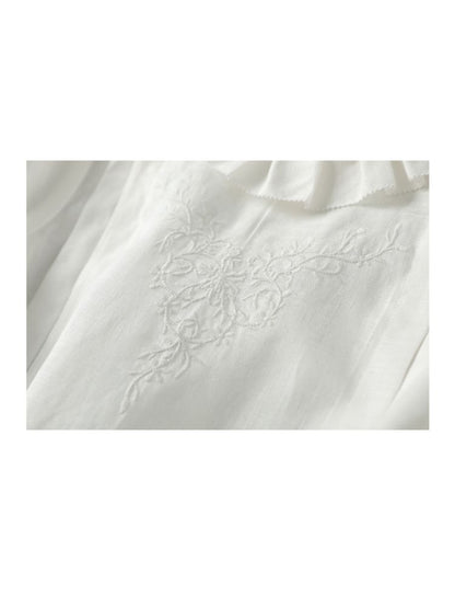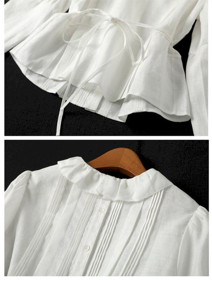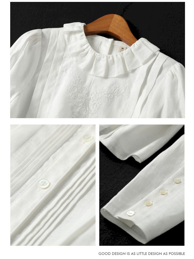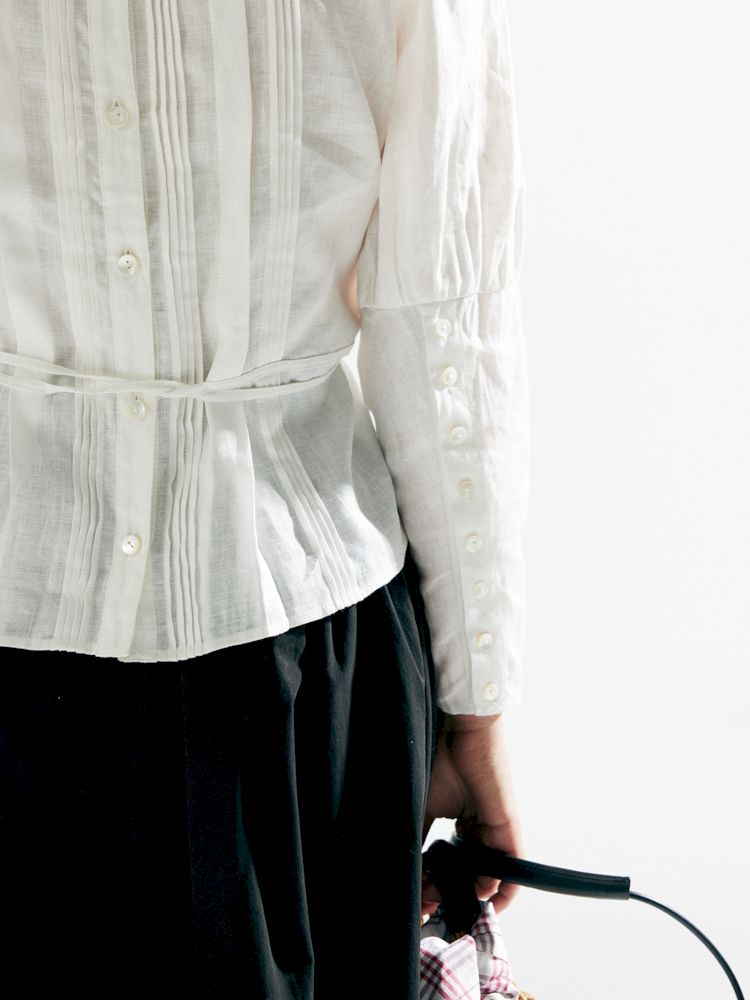 Lamb Leg Sleeve 100% Linen Shirt【s0000007643】