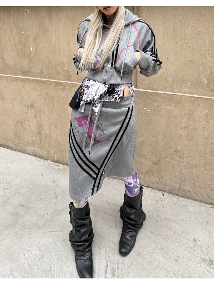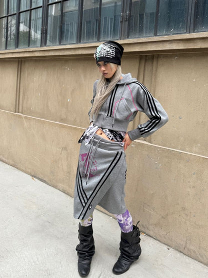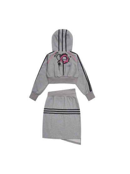 Hooded Sweatshirt Short Jacket Half Skirt Set【s0000007659】
