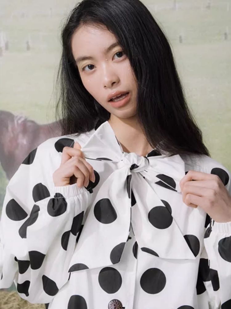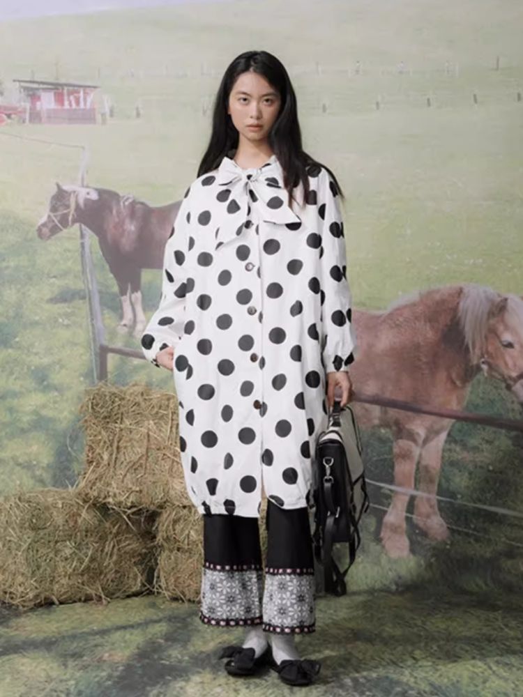 Polka Dot Printed Mid-Length Trench Coat【s0000007704】