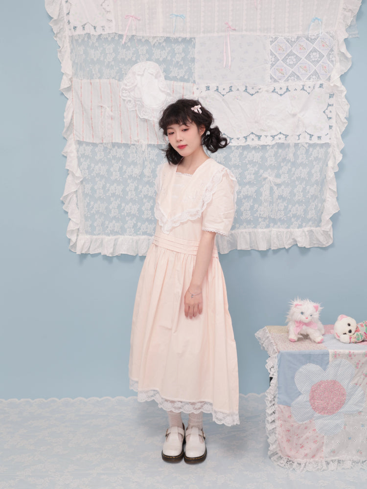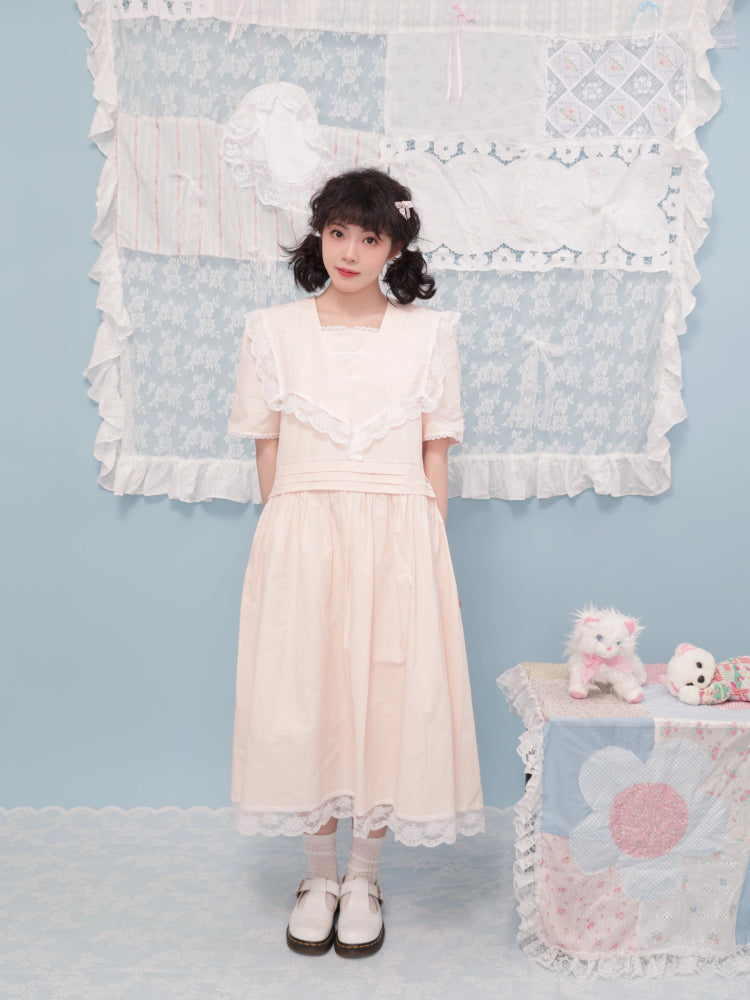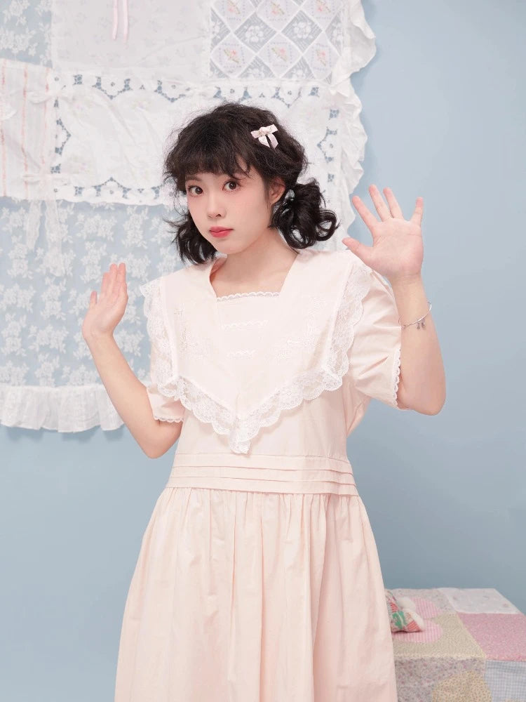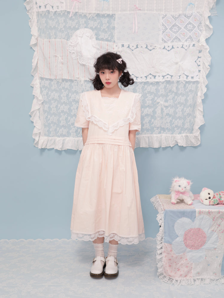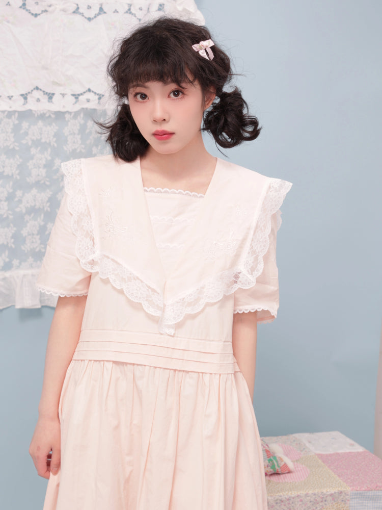 Embroidered lace pink dress【s0000007742】