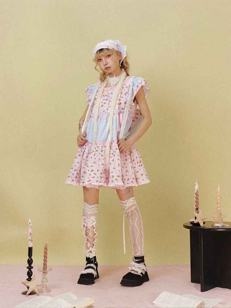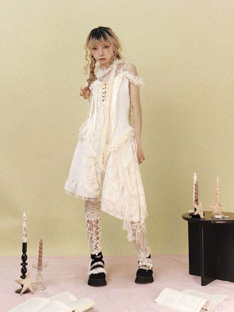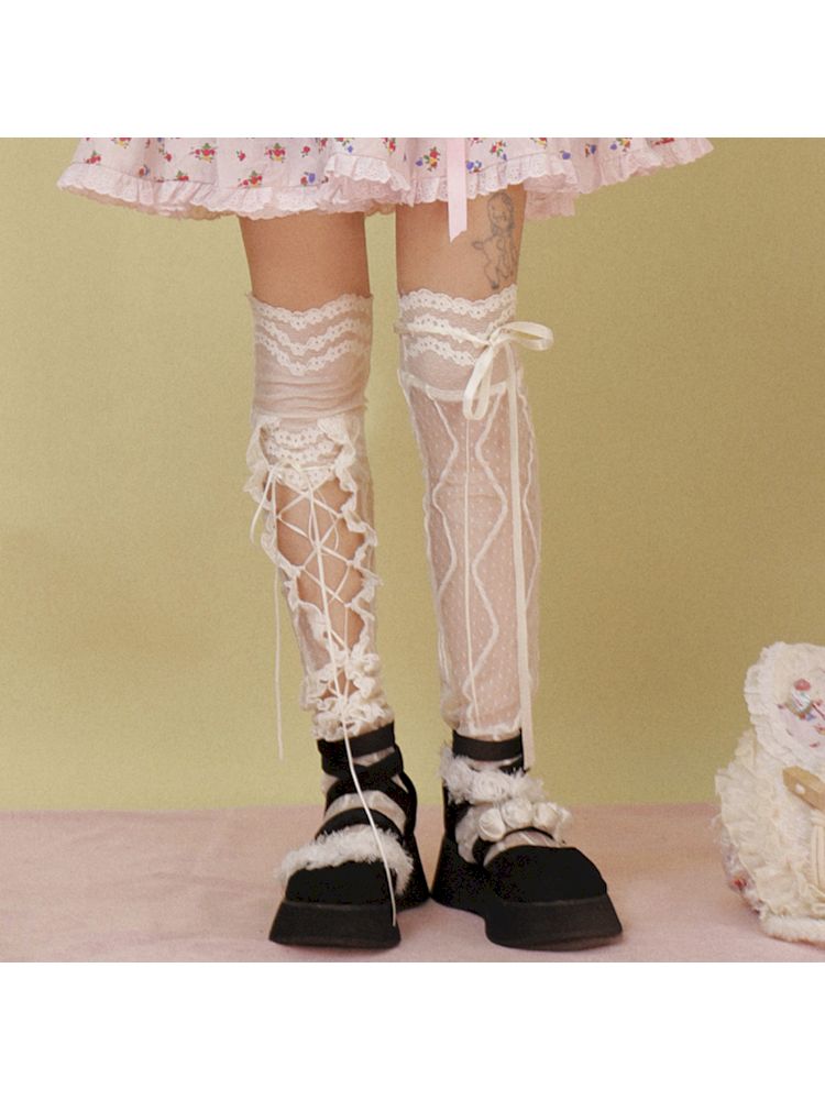 Asymmetrical Girly Lace Tie Mid Calf Socks 【s0000007780】