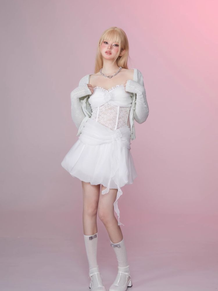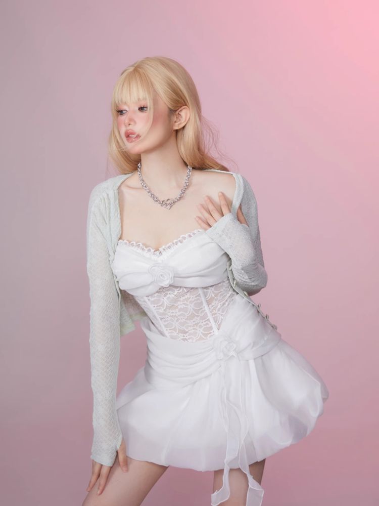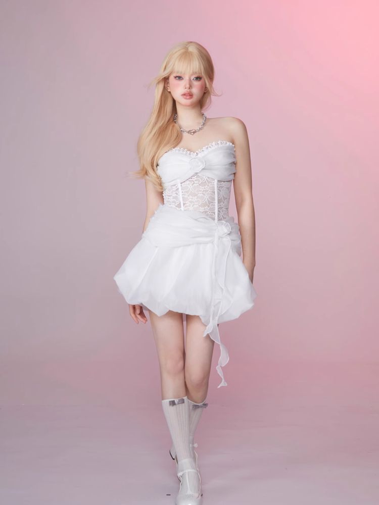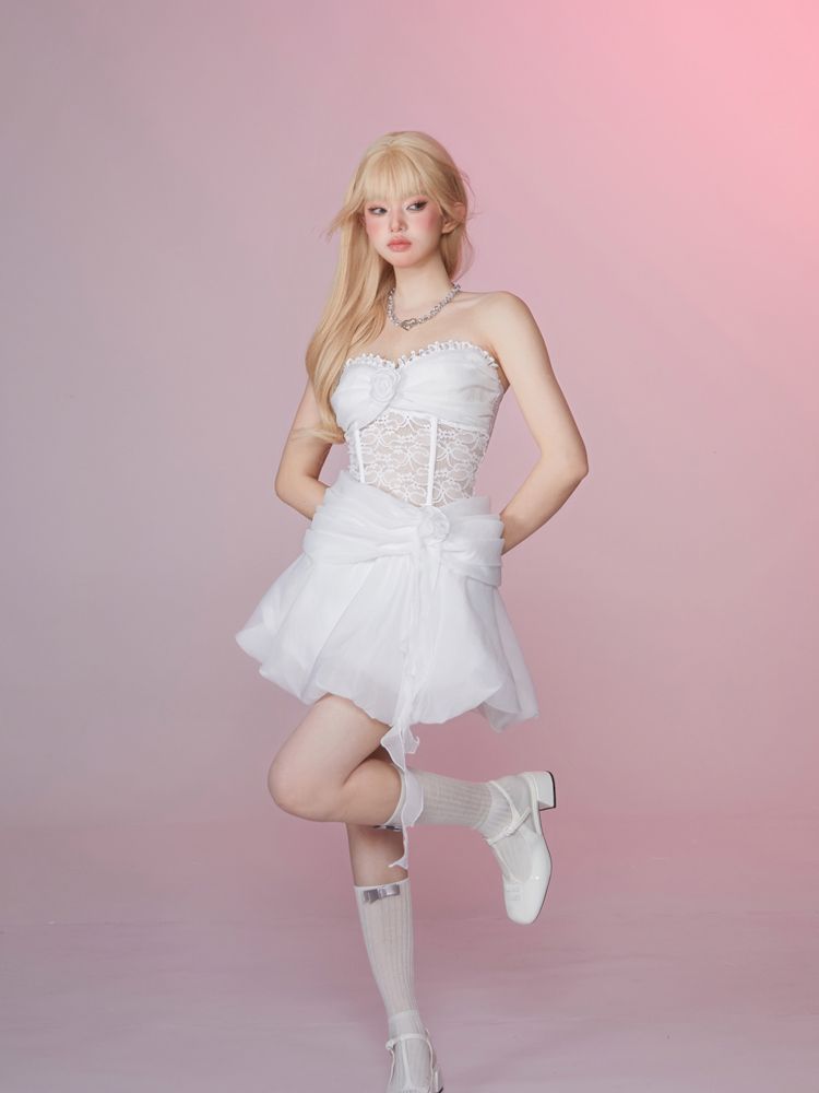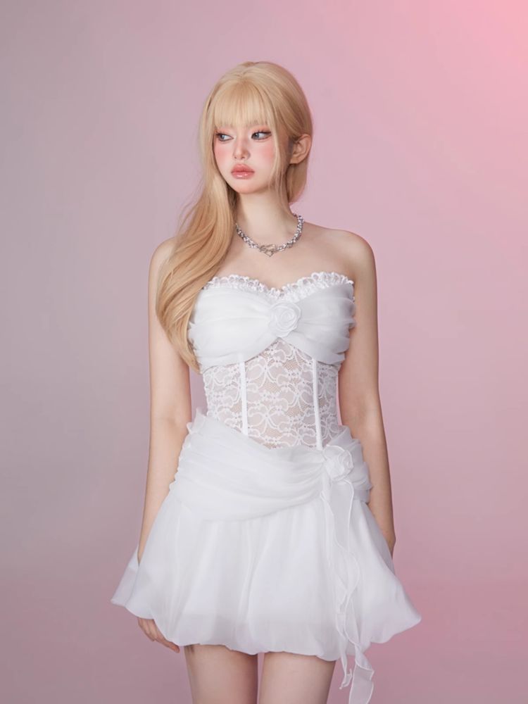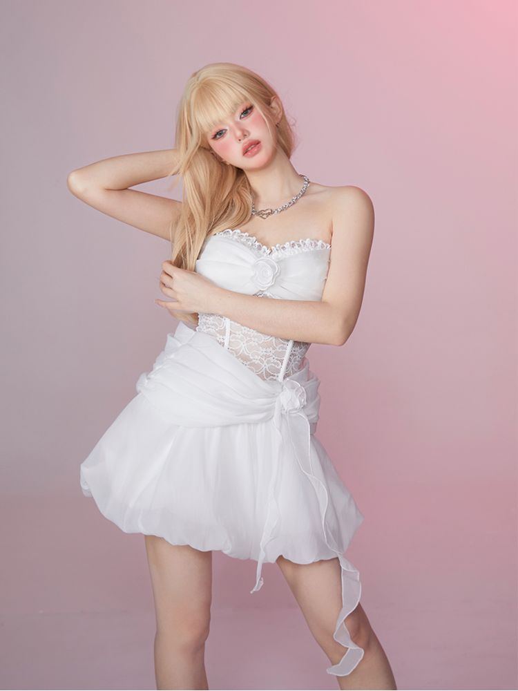Lace Fishbone Waist Wrap Princess Puffy Mesh Dress【s0000007849】