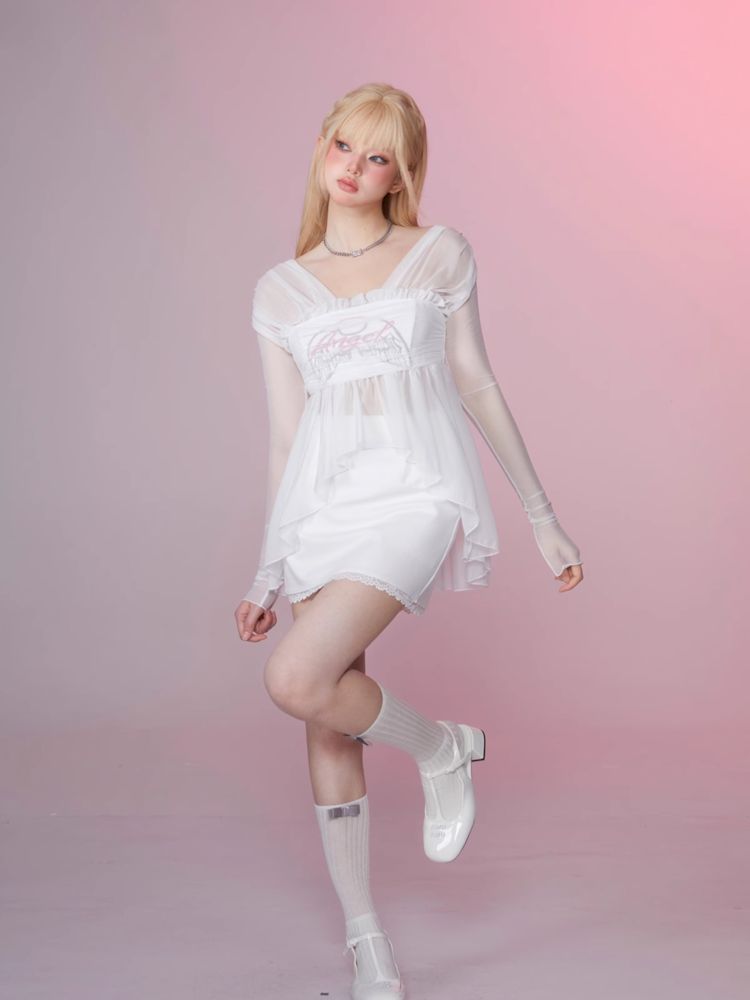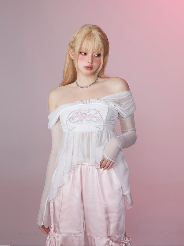 Irregular See-Through Mesh One-Shoulder Top【s0000007854】