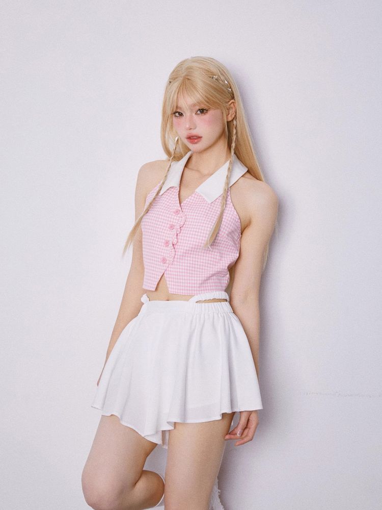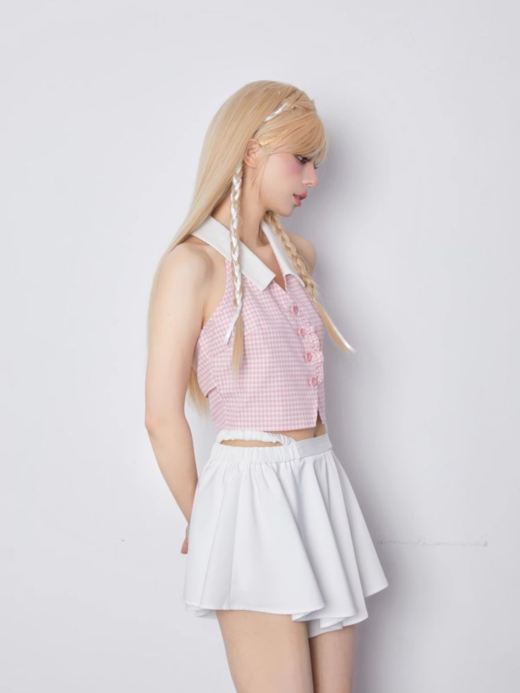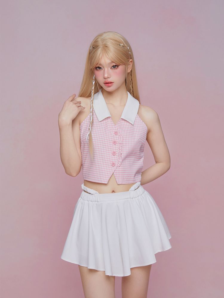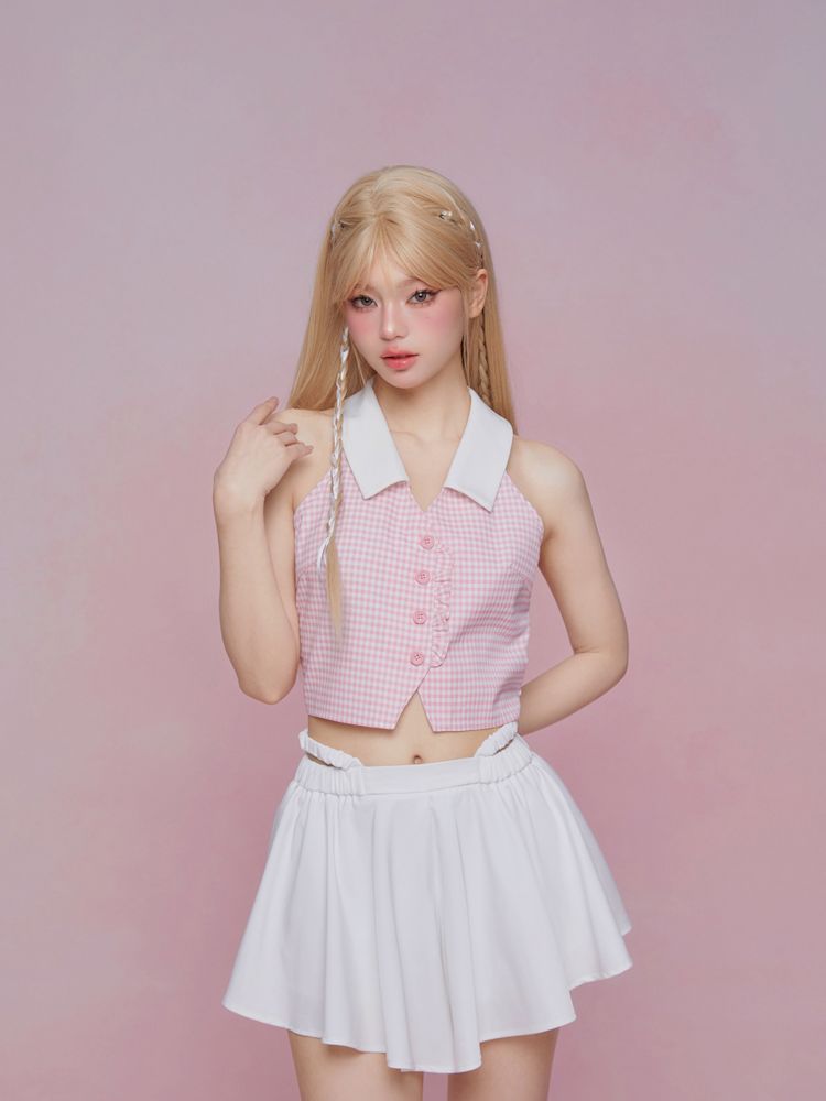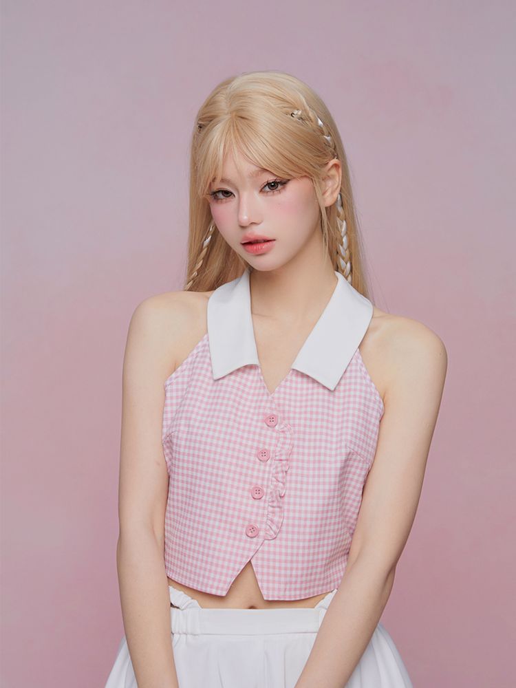 Sleeveless Pink Plaid Blouse【s0000007867】