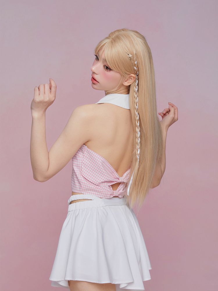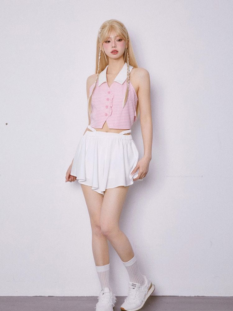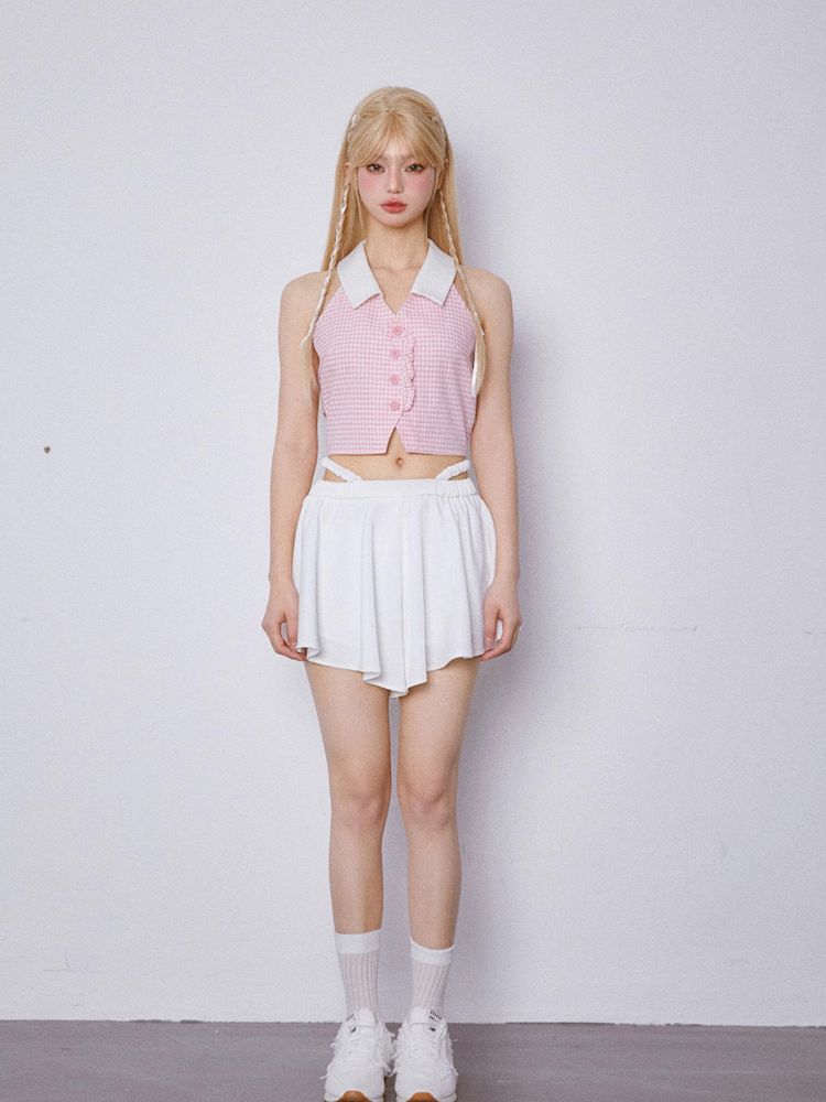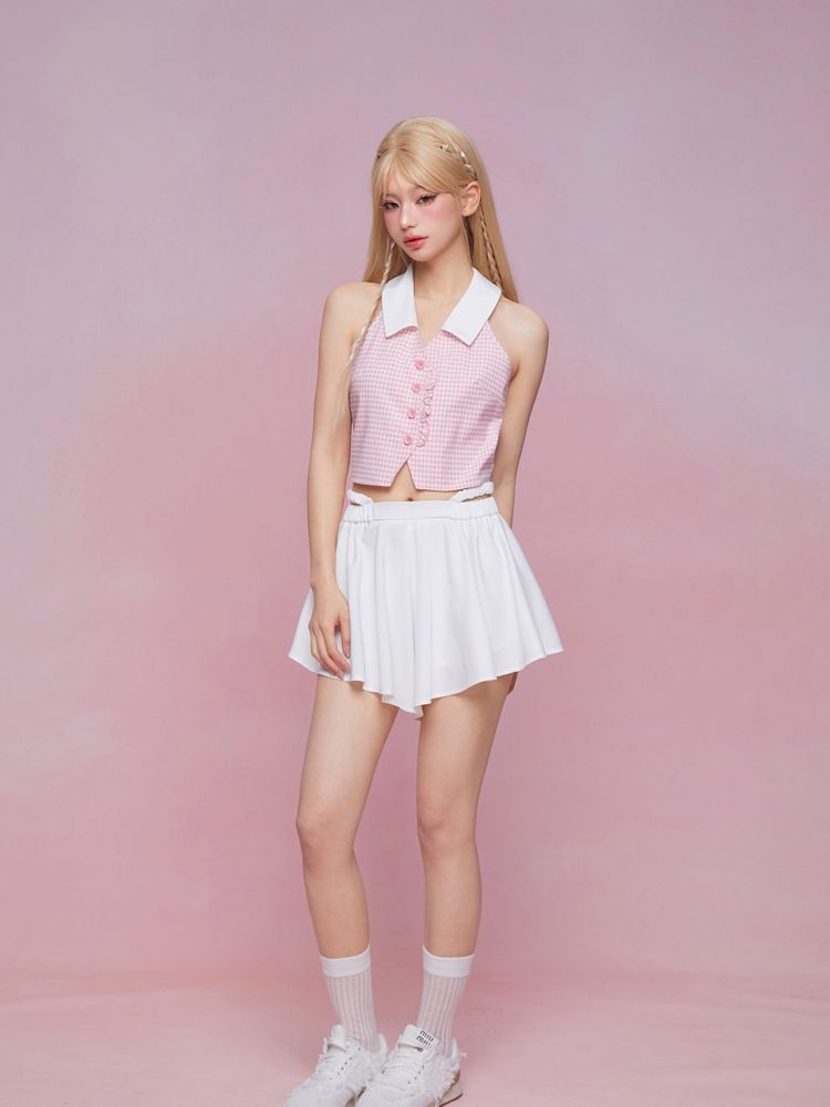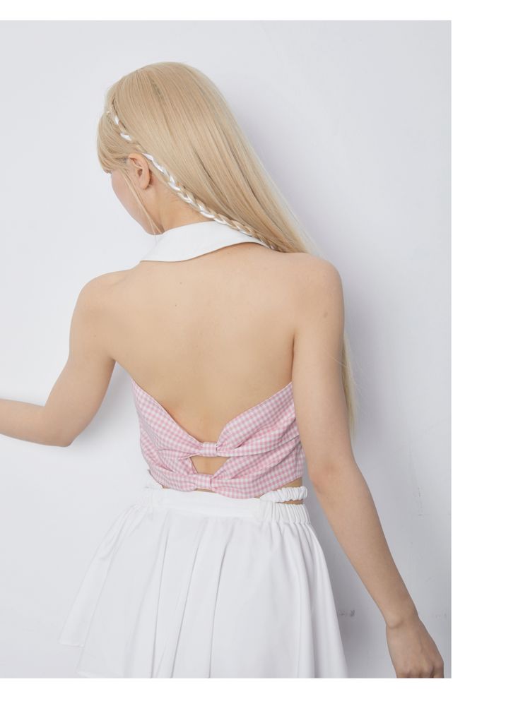 Sleeveless Pink Plaid Blouse【s0000007867】