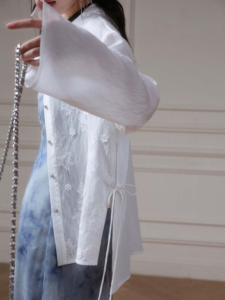 Gardenia Embroidery Semi-Sheer Shirt【s0000007881】