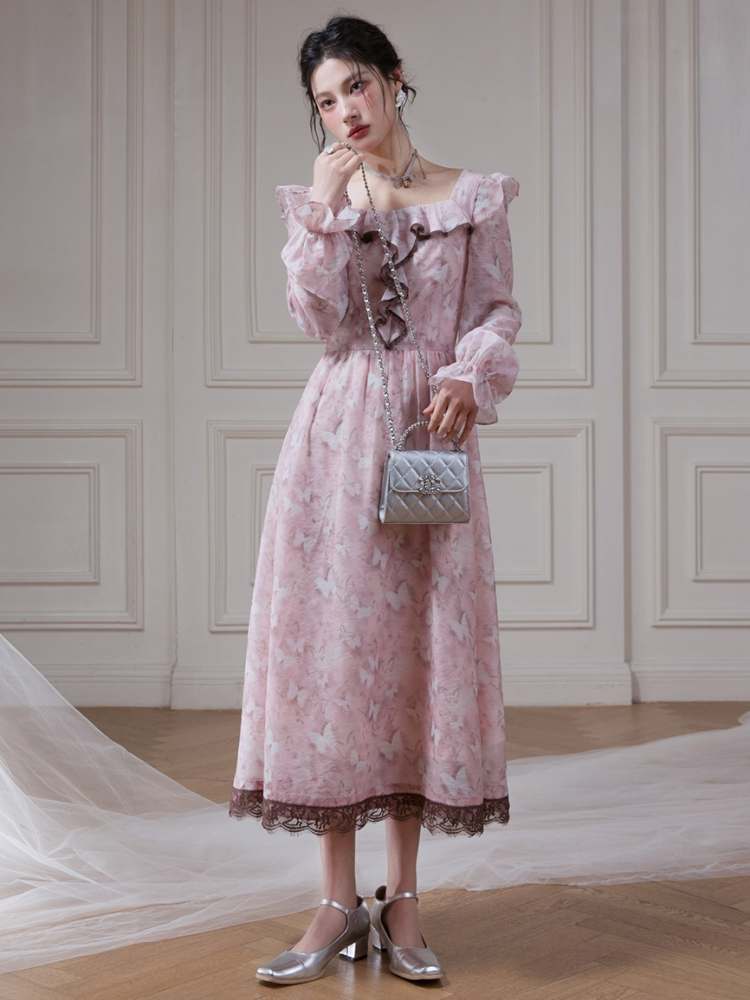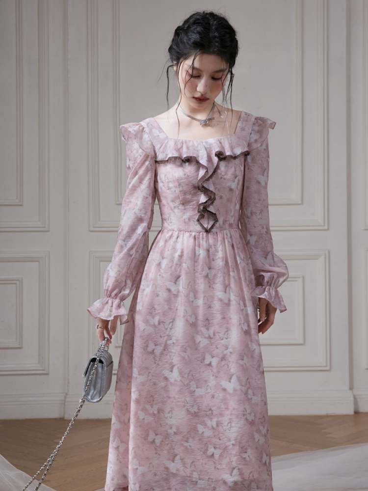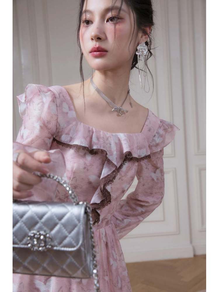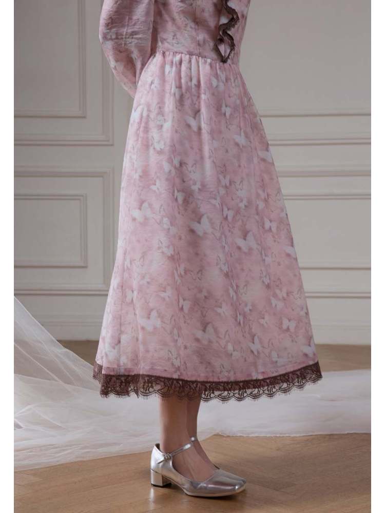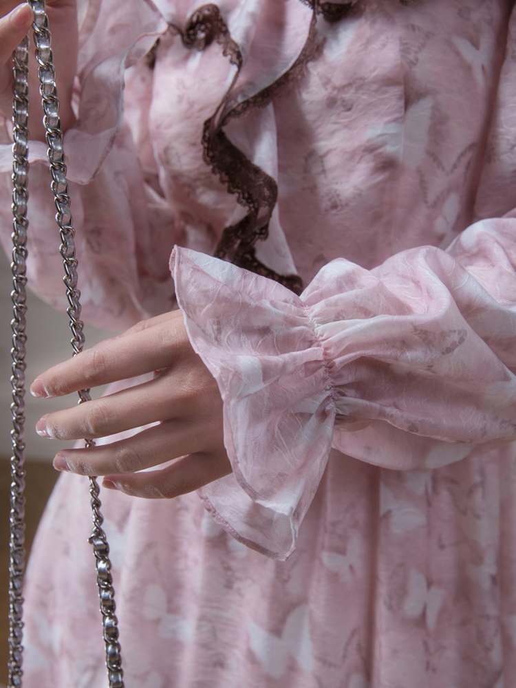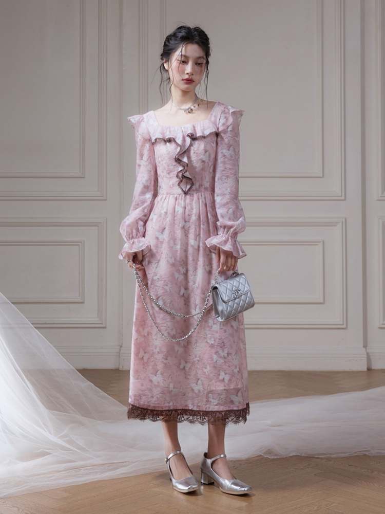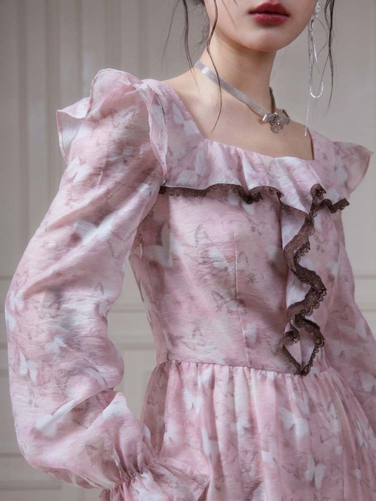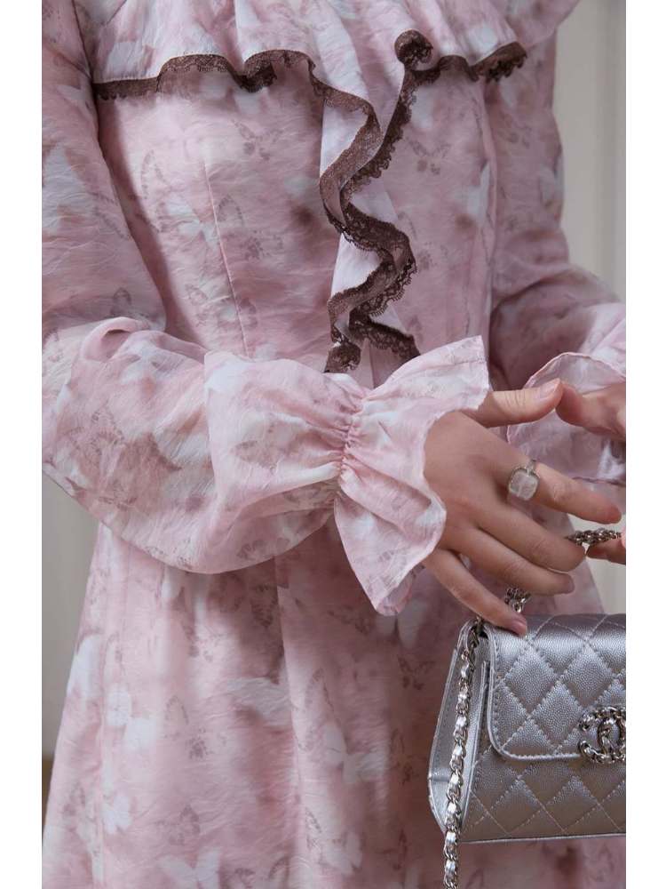 Romantic Butterfly Print Floral Ruffle Dress【s0000007891】