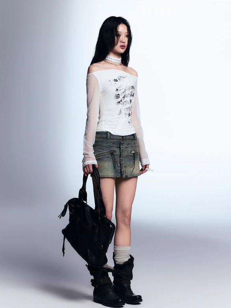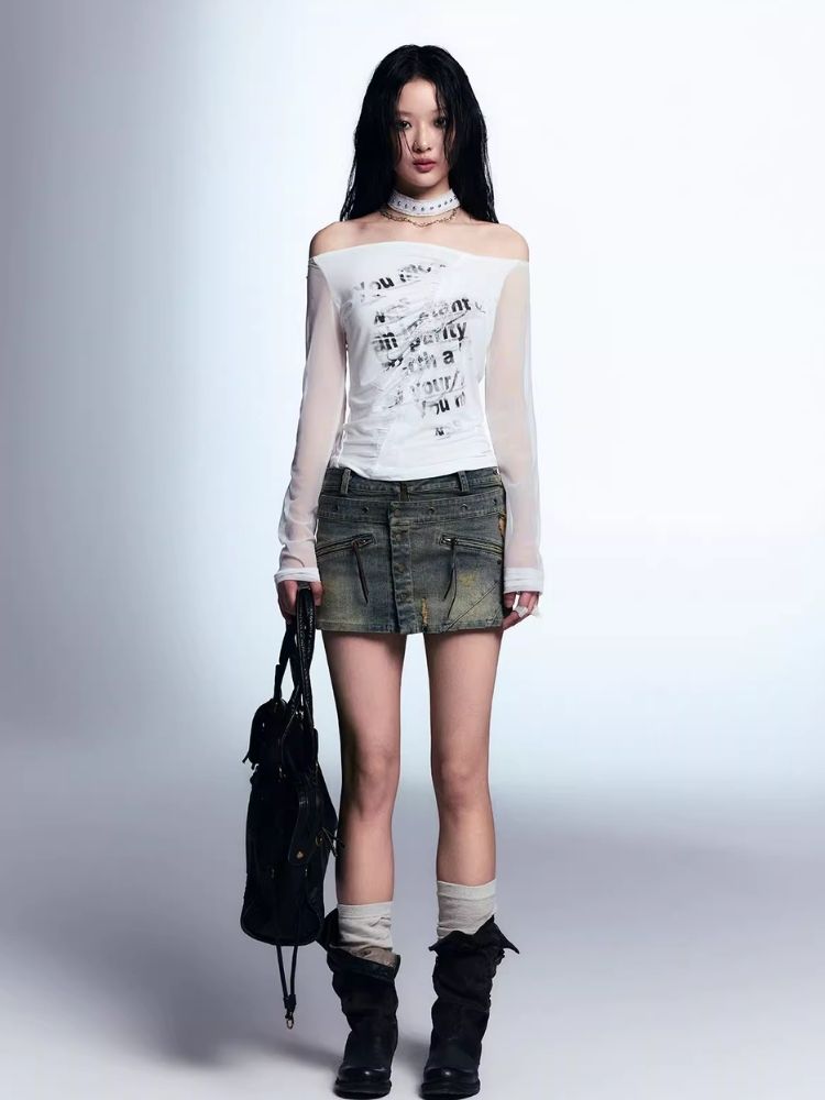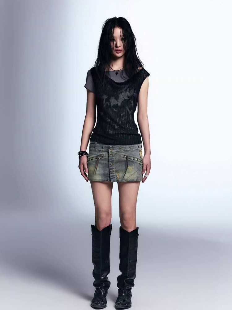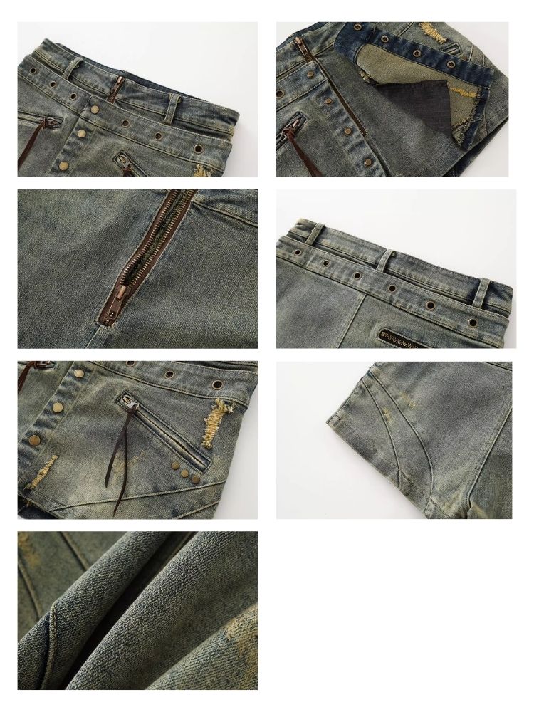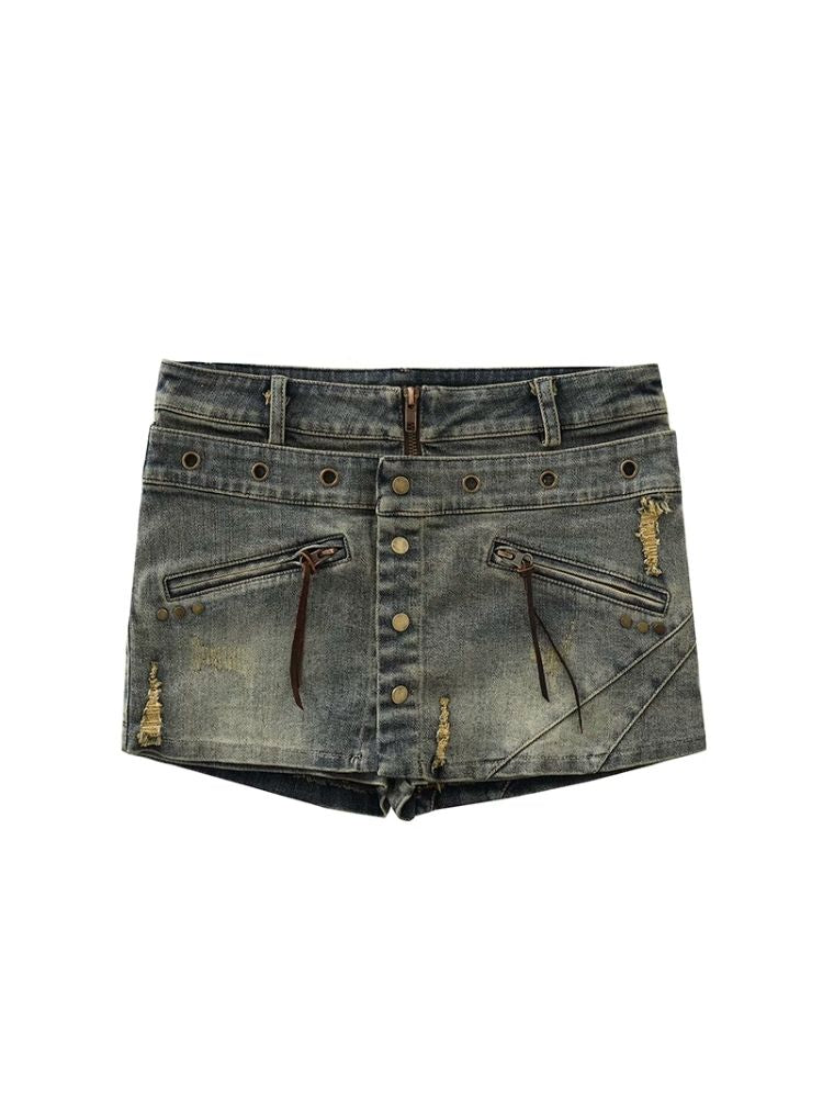 Old washed denim short skirt【s0000007915】