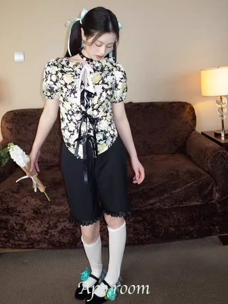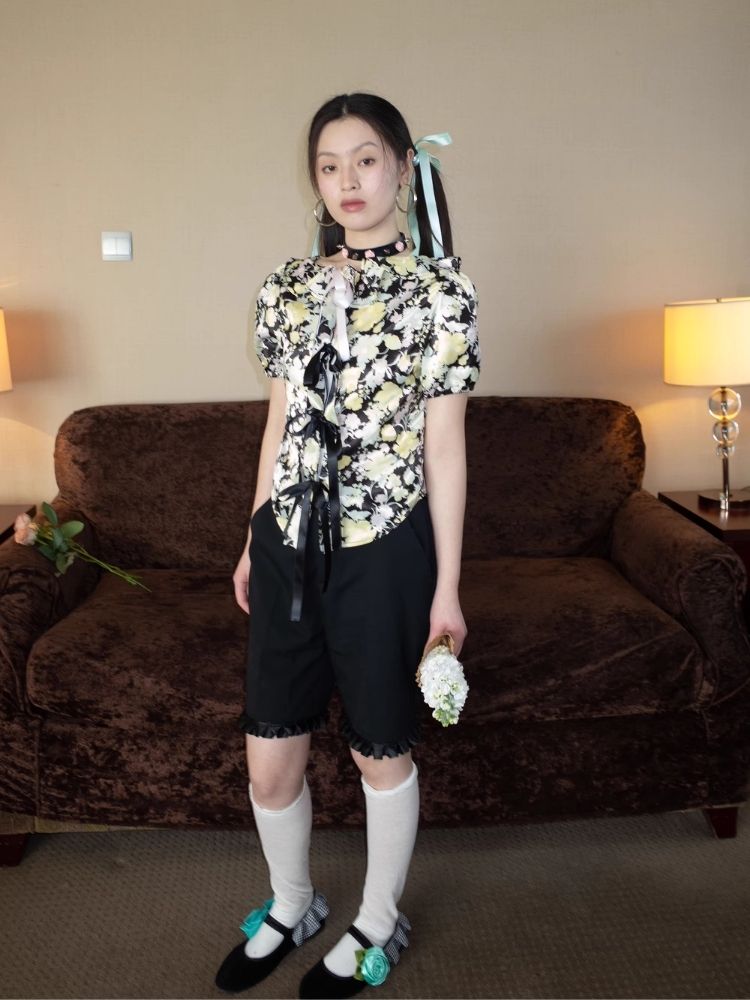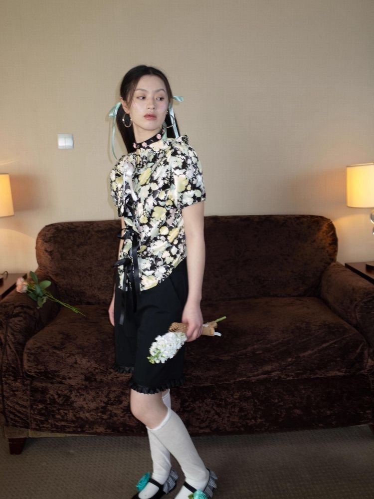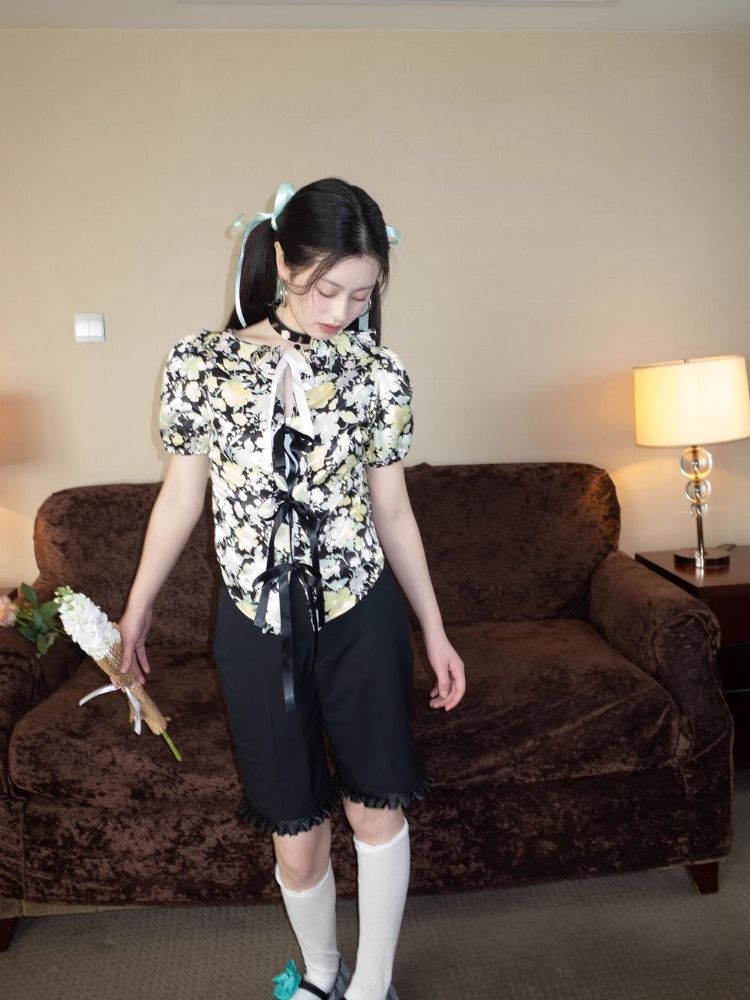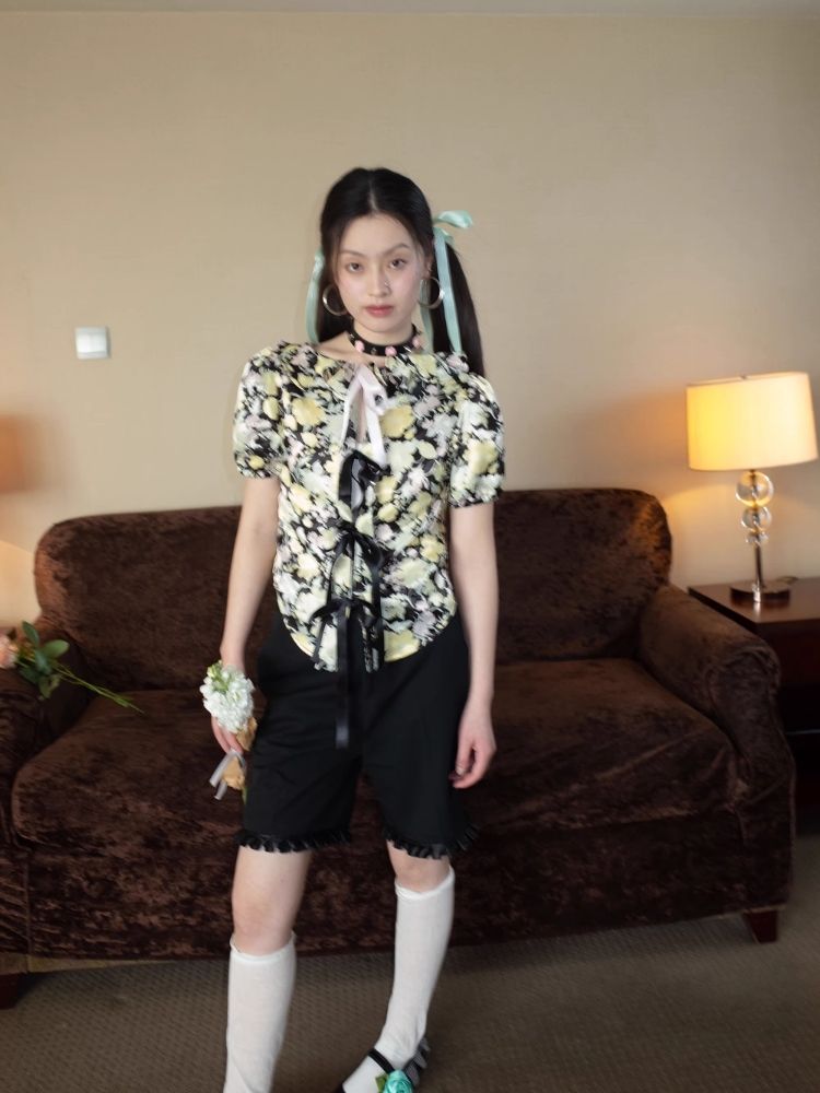 Floral Shirt Lace-up design【s0000007933】