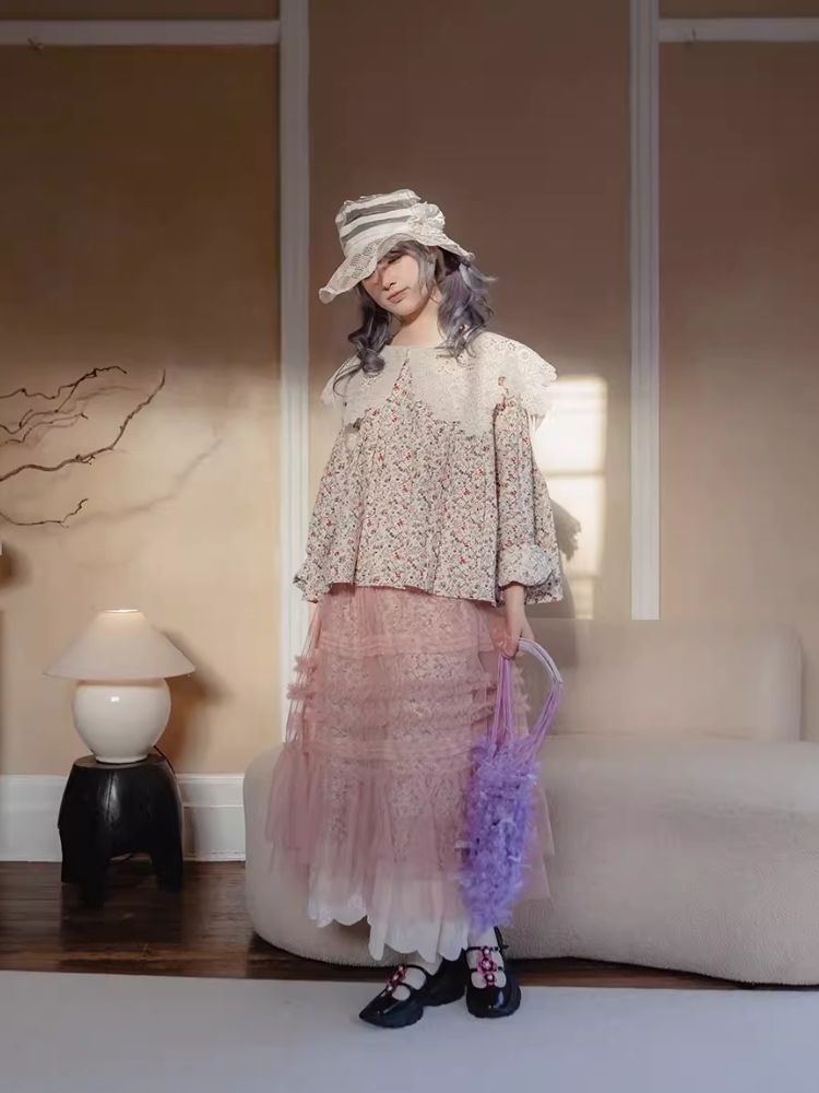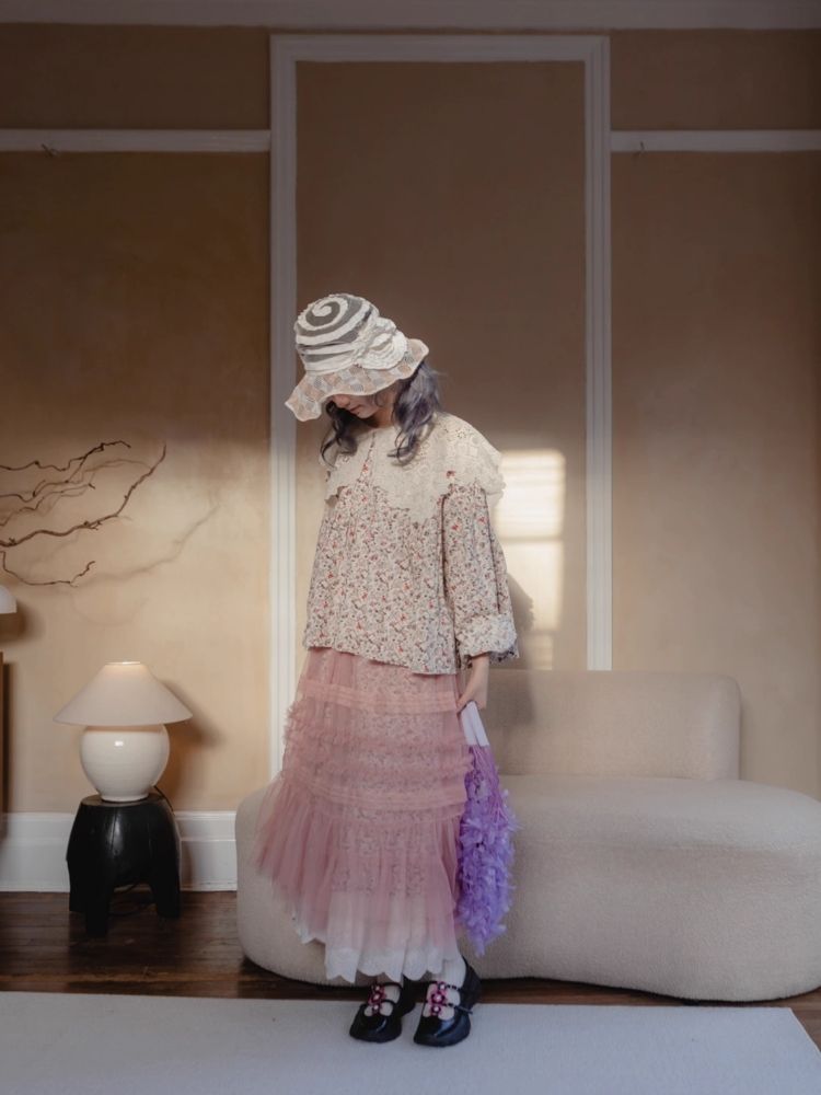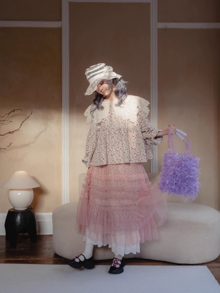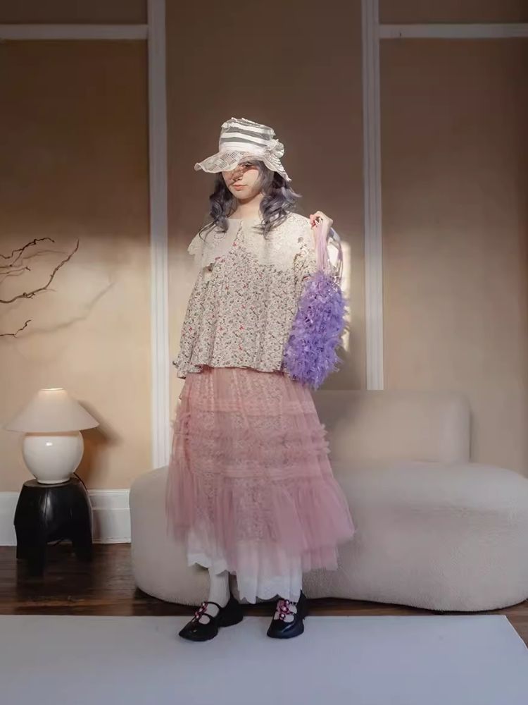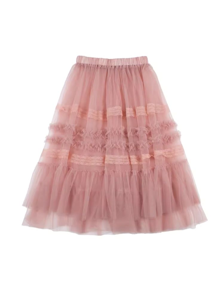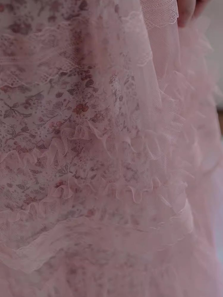 Sweet Cherry Blossom Pink Mesh Half Skirt【s0000007944】