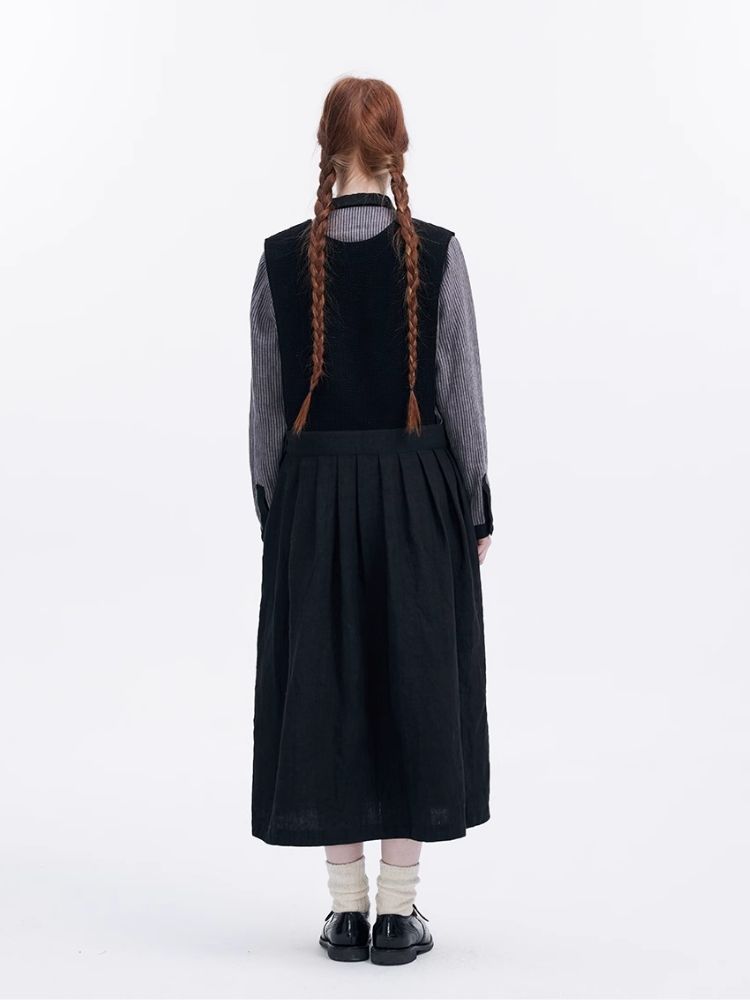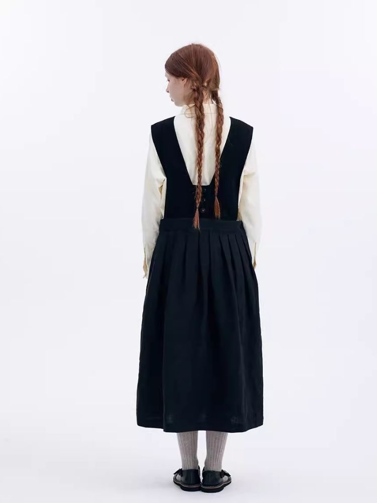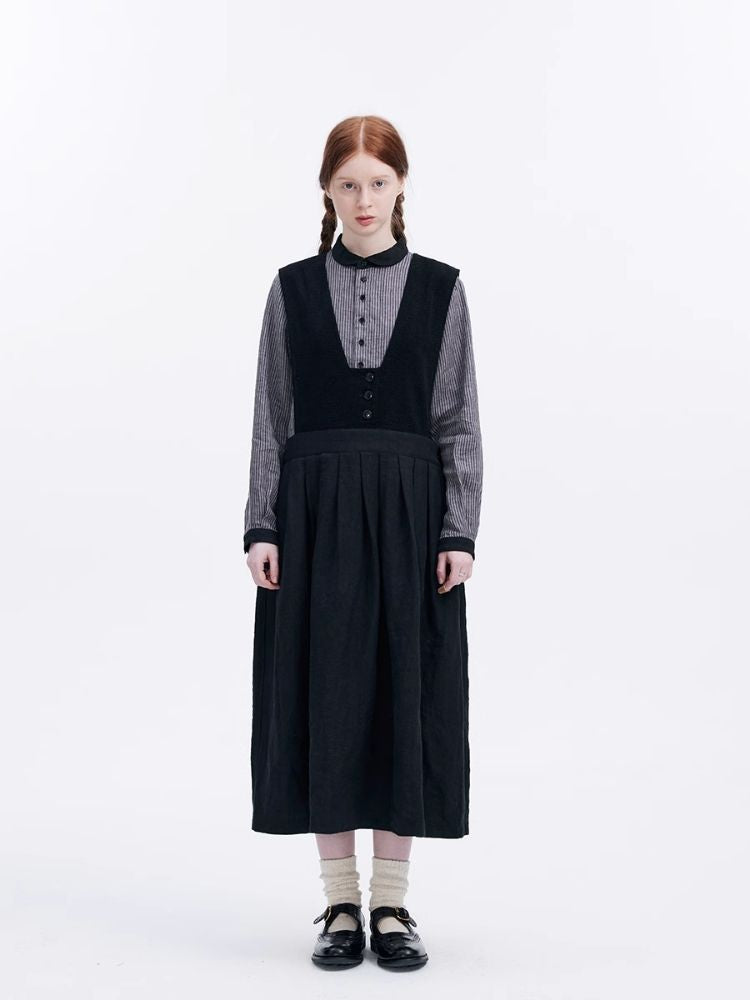 Corduroy Patchwork Linen Sleeveless Dress【s0000007947】