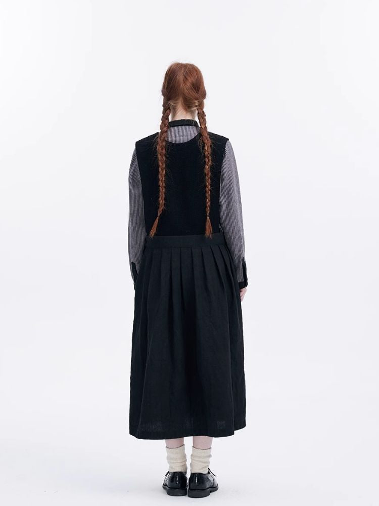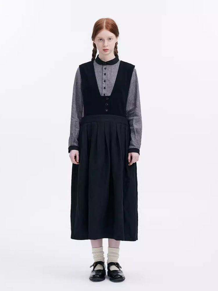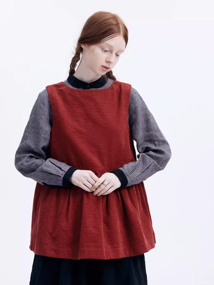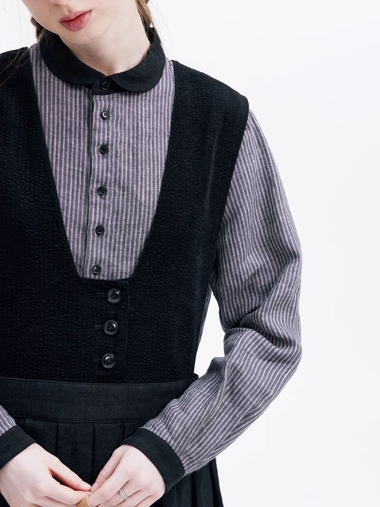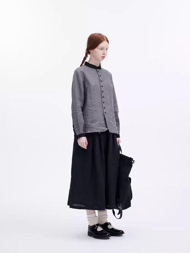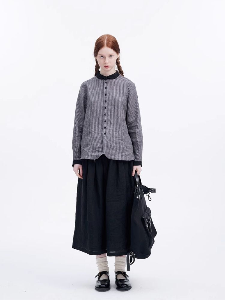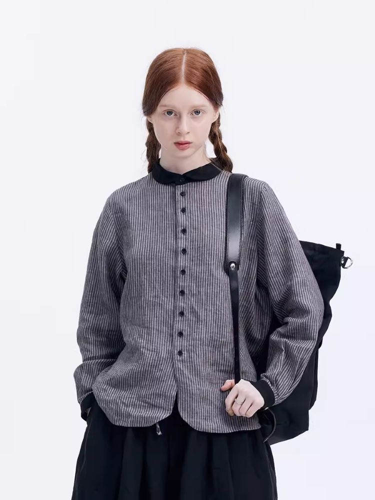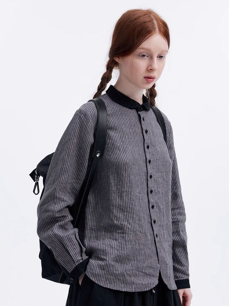 Washed Linen Round Collar Pinstripe Shirt【s0000007952】