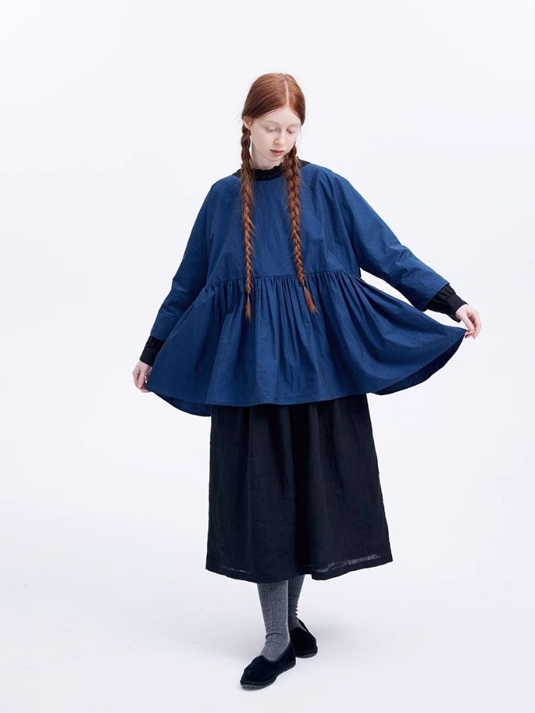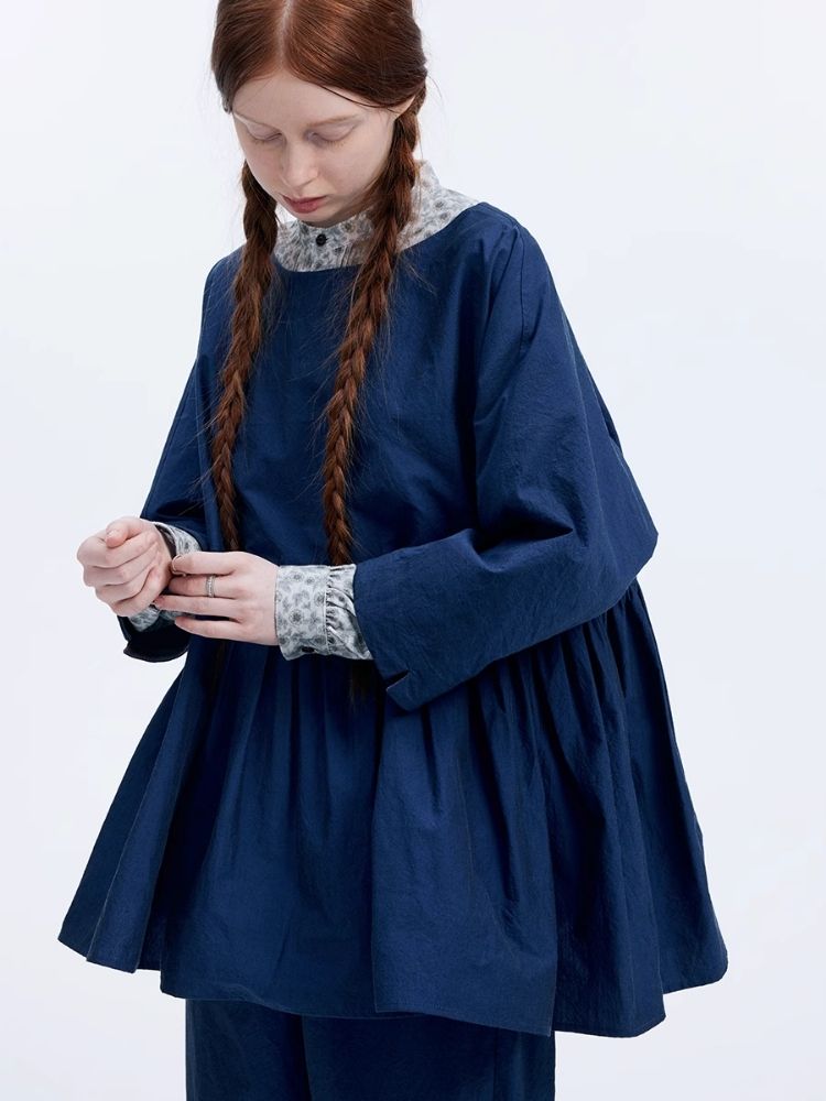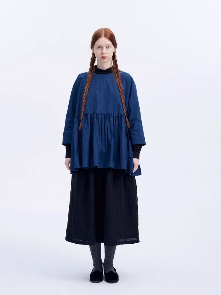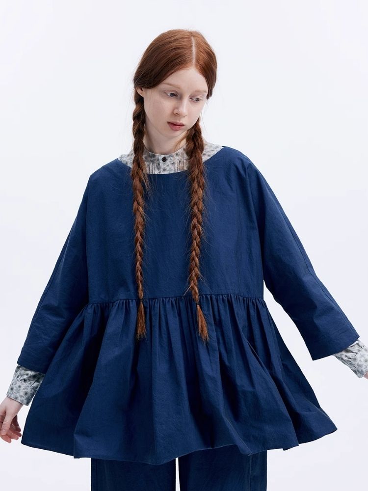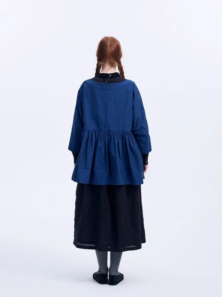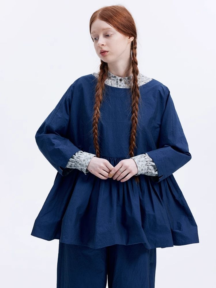 Shiny color sapphire hem smock.【s0000007962】