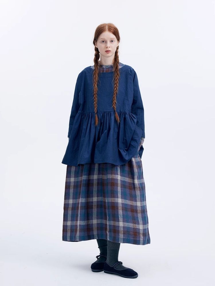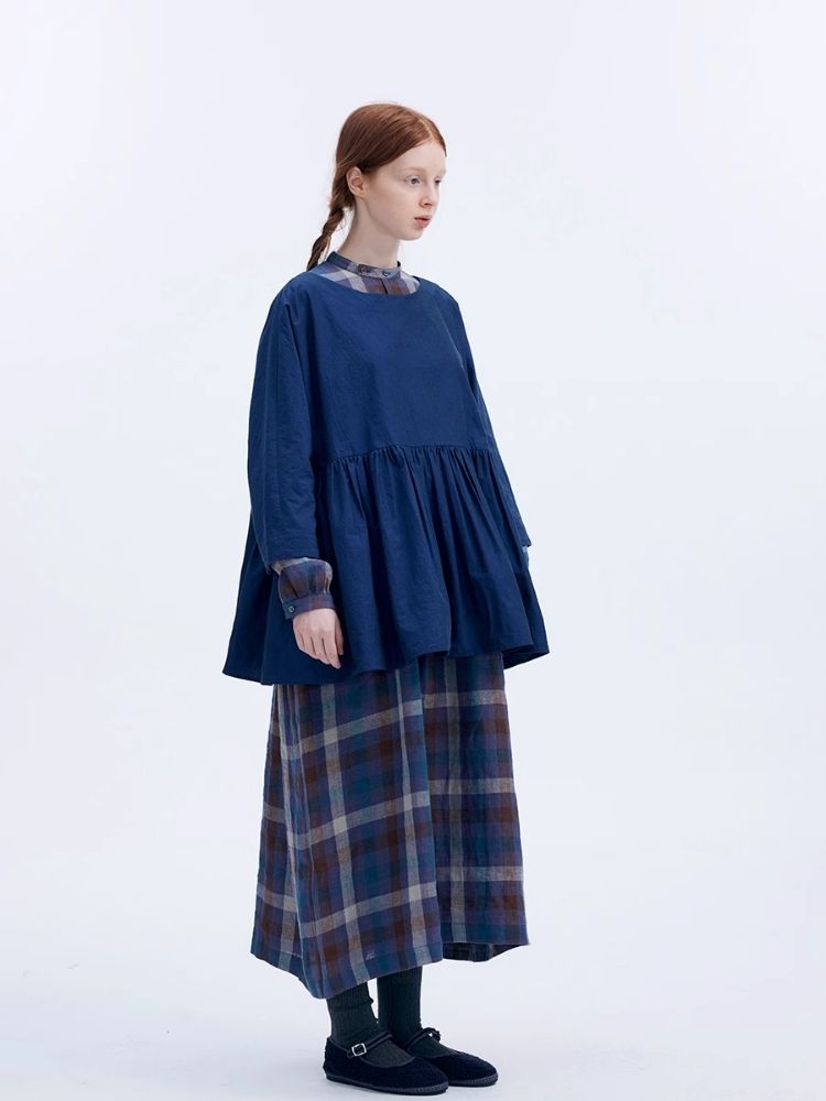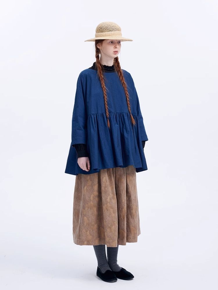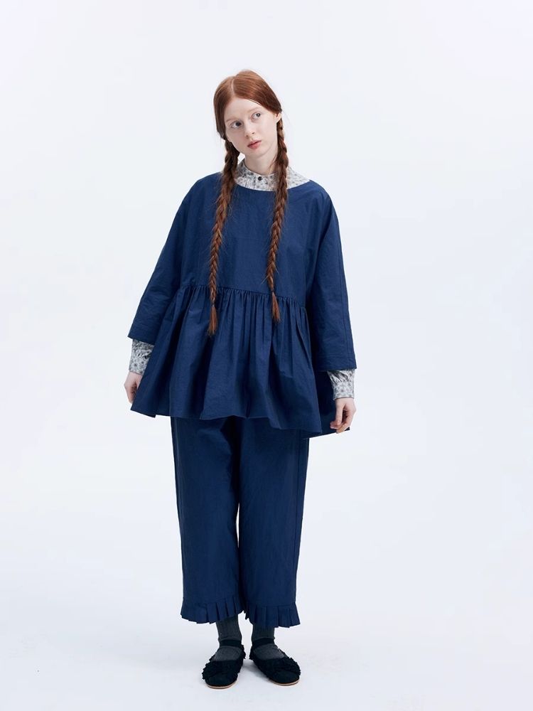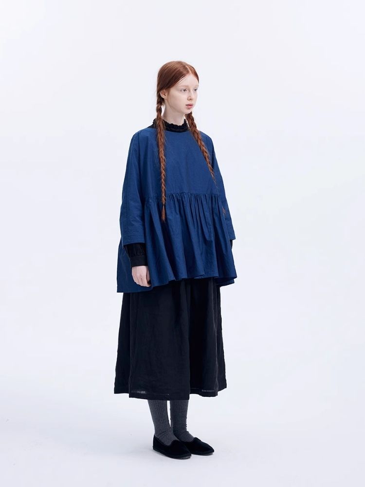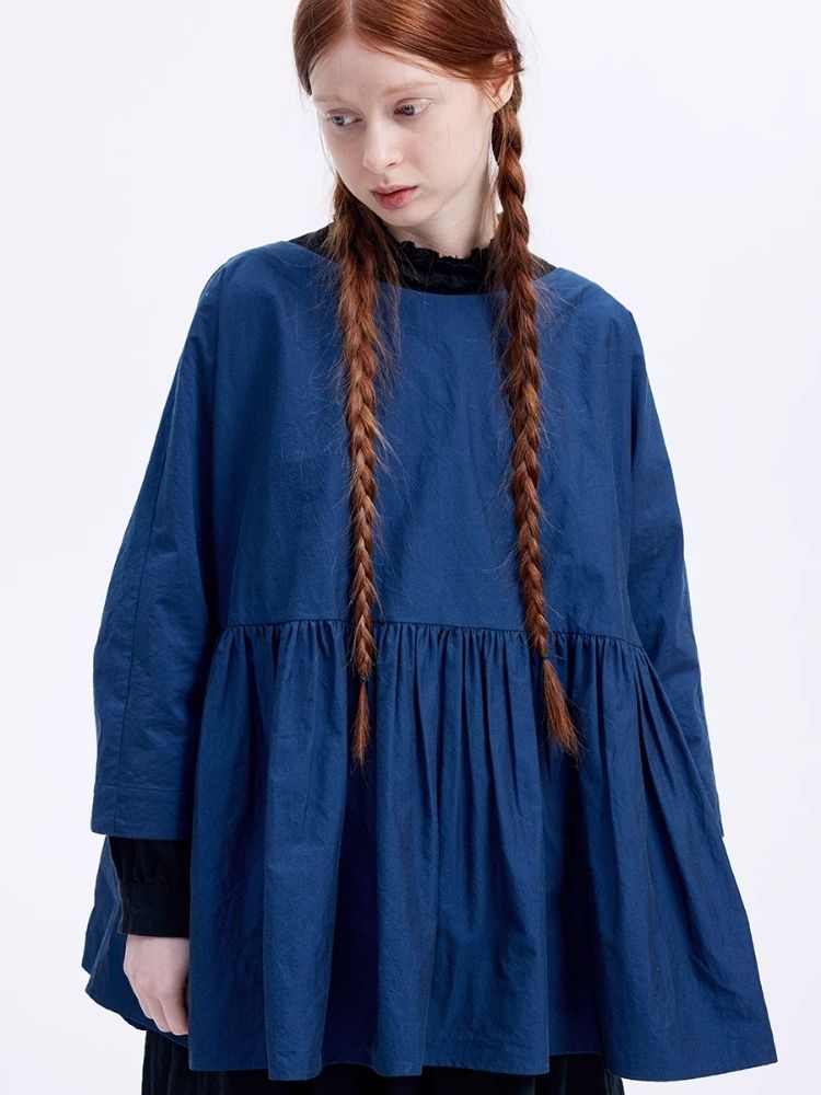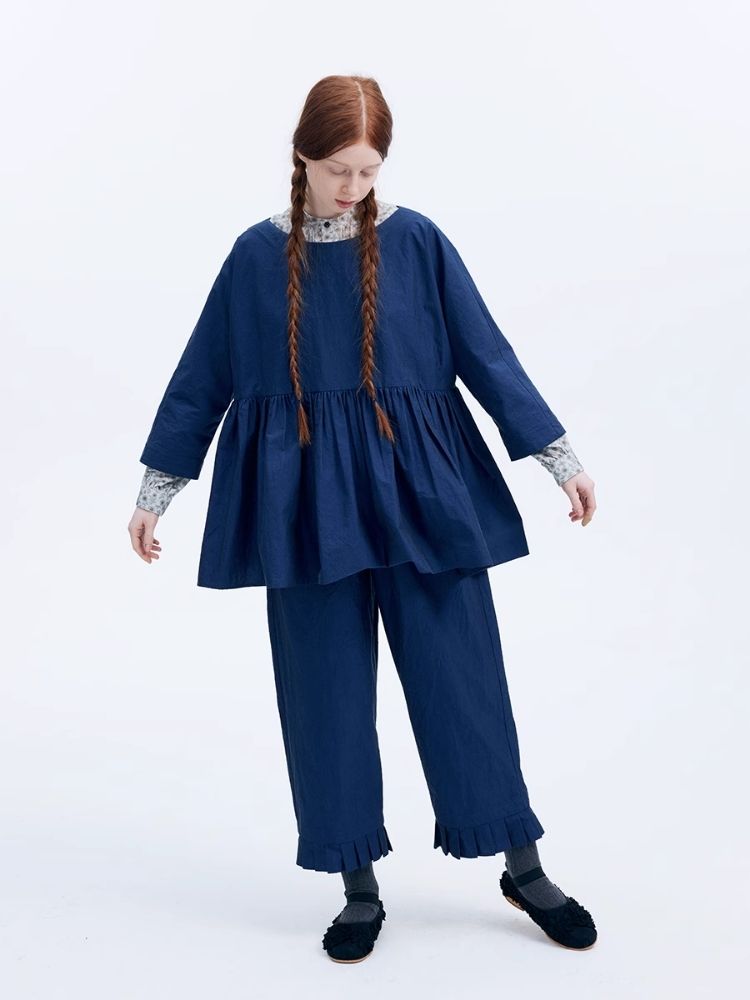 Shiny color sapphire hem smock.【s0000007962】