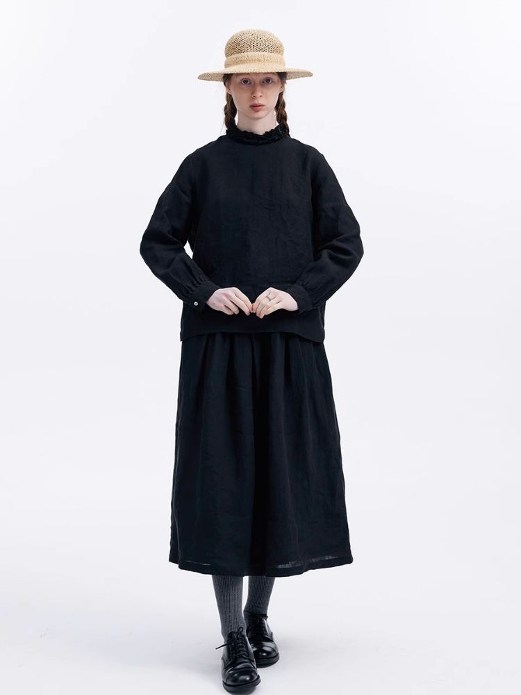Lace Collar Washed Linen Long Sleeve Thin Shirt【s0000007969】