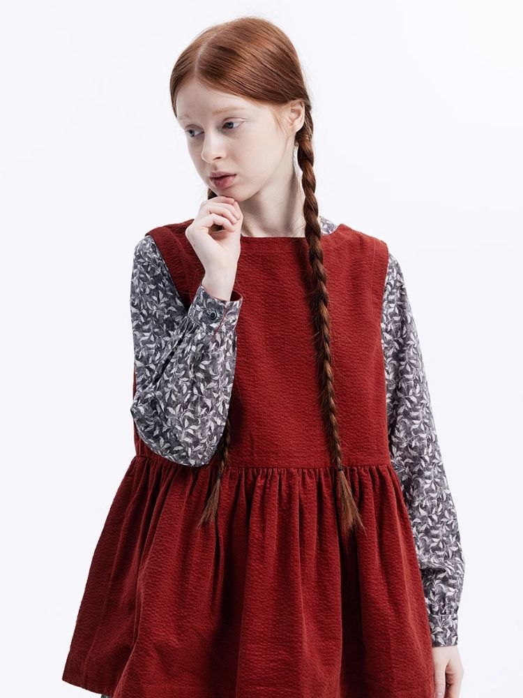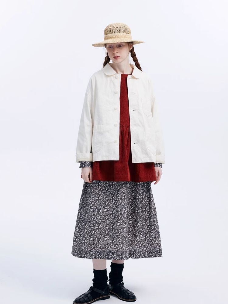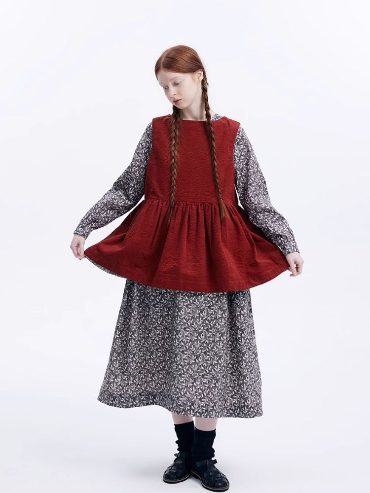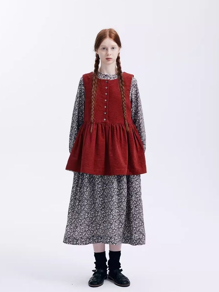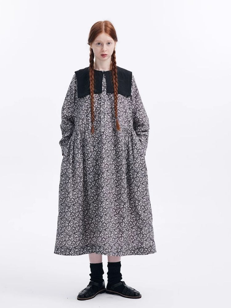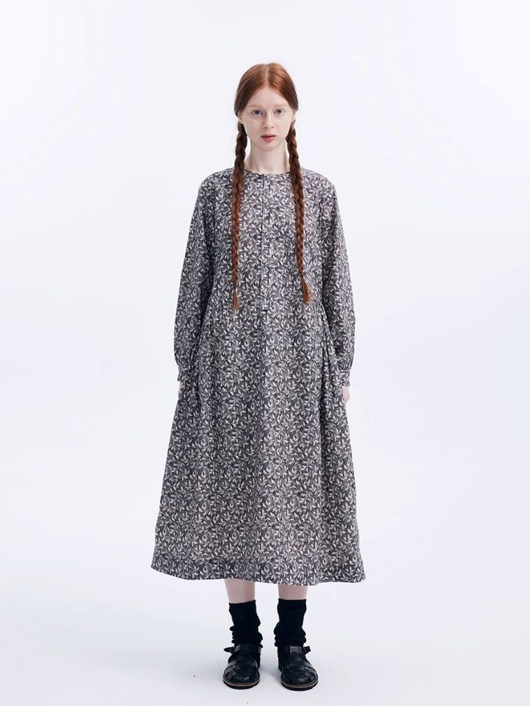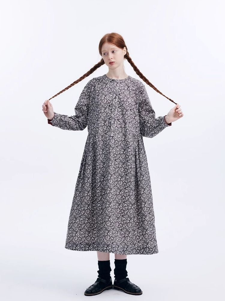 Flower Leaf Literary Long Sleeve Dress【s0000007972】