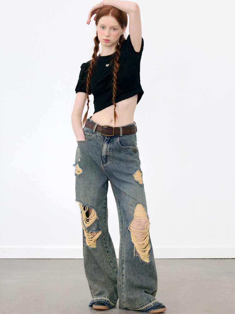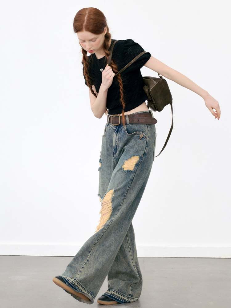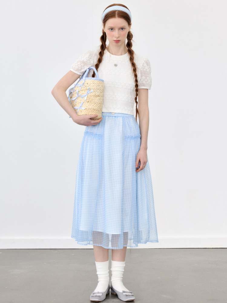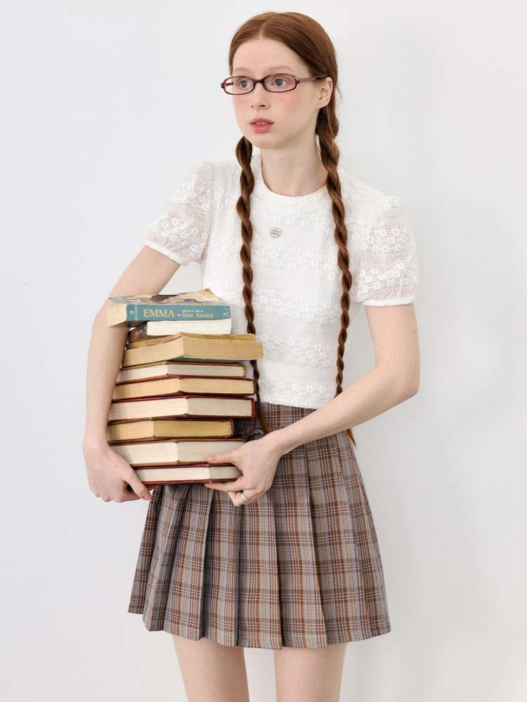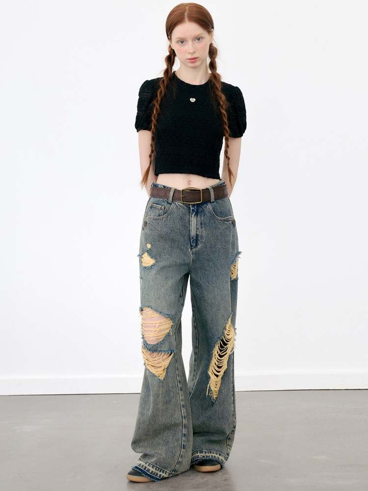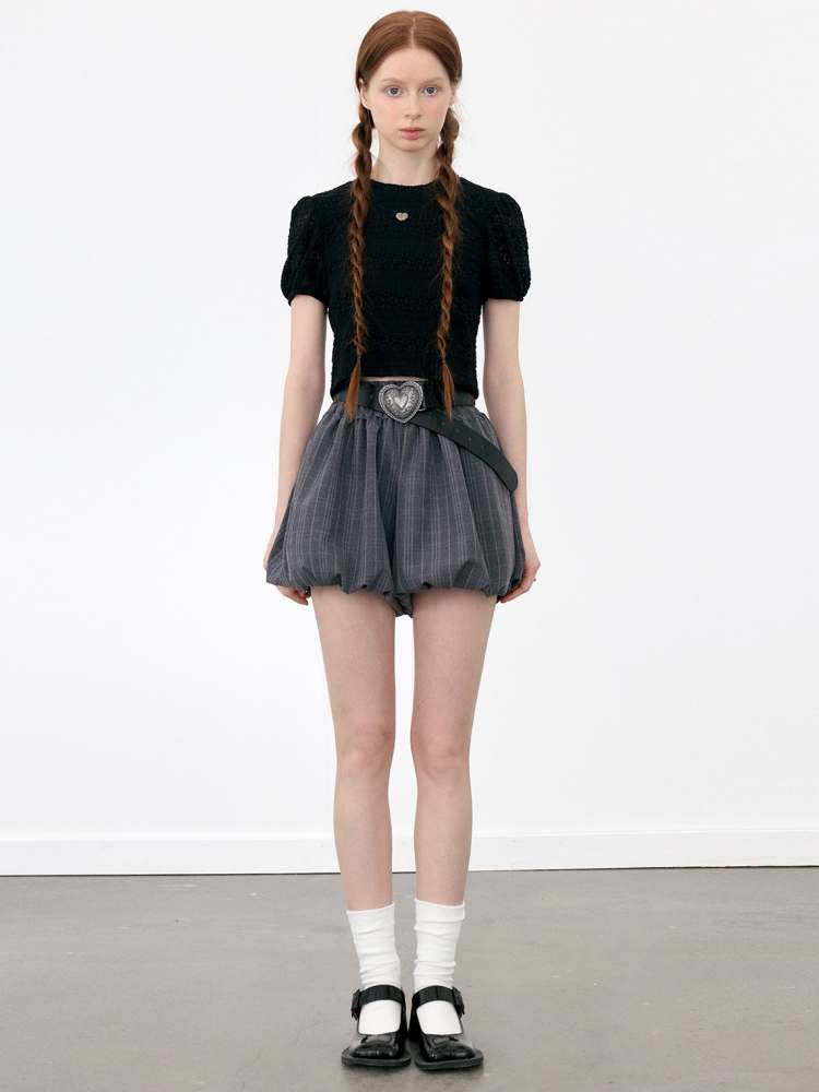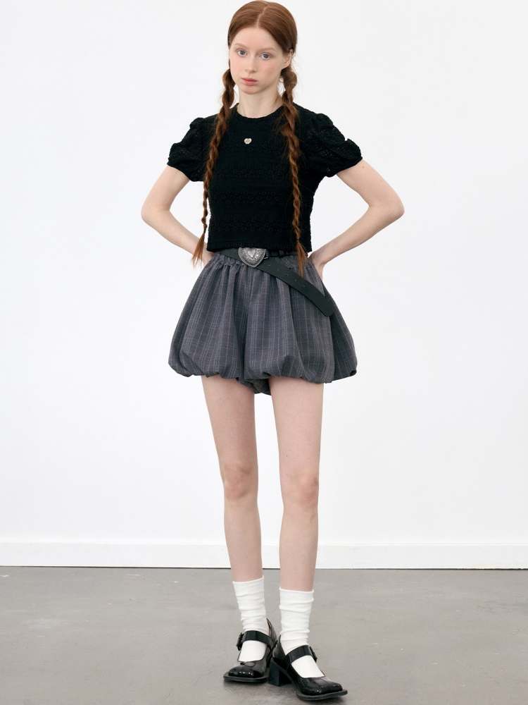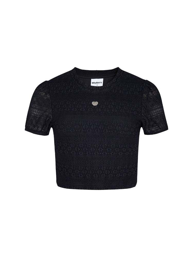 Flower Emboss Puff Sleeve Short T-Shirt【s0000008087】