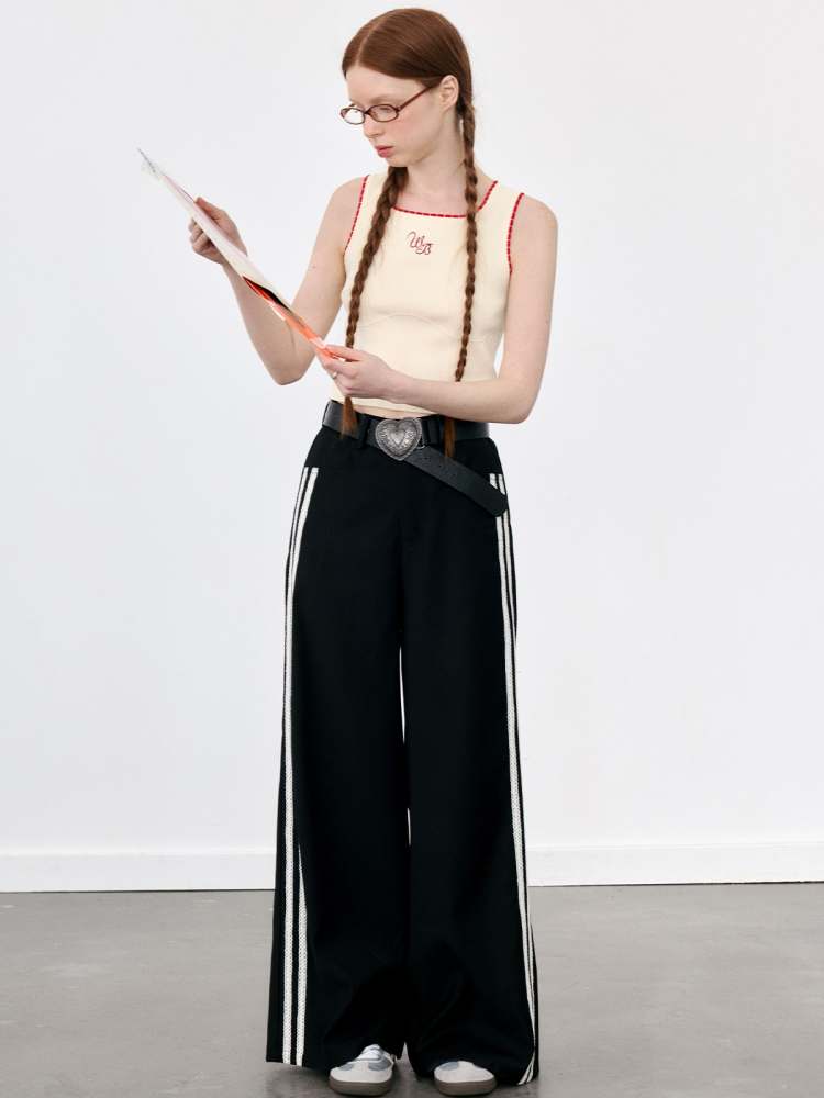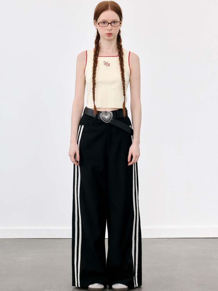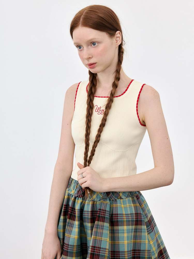 Lace Knit Logo Embroidery Tank Top【s0000008088】