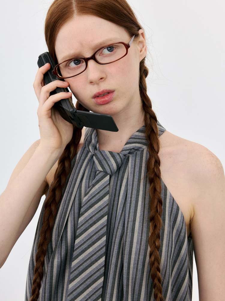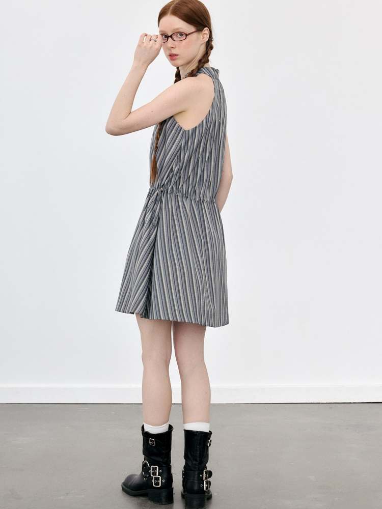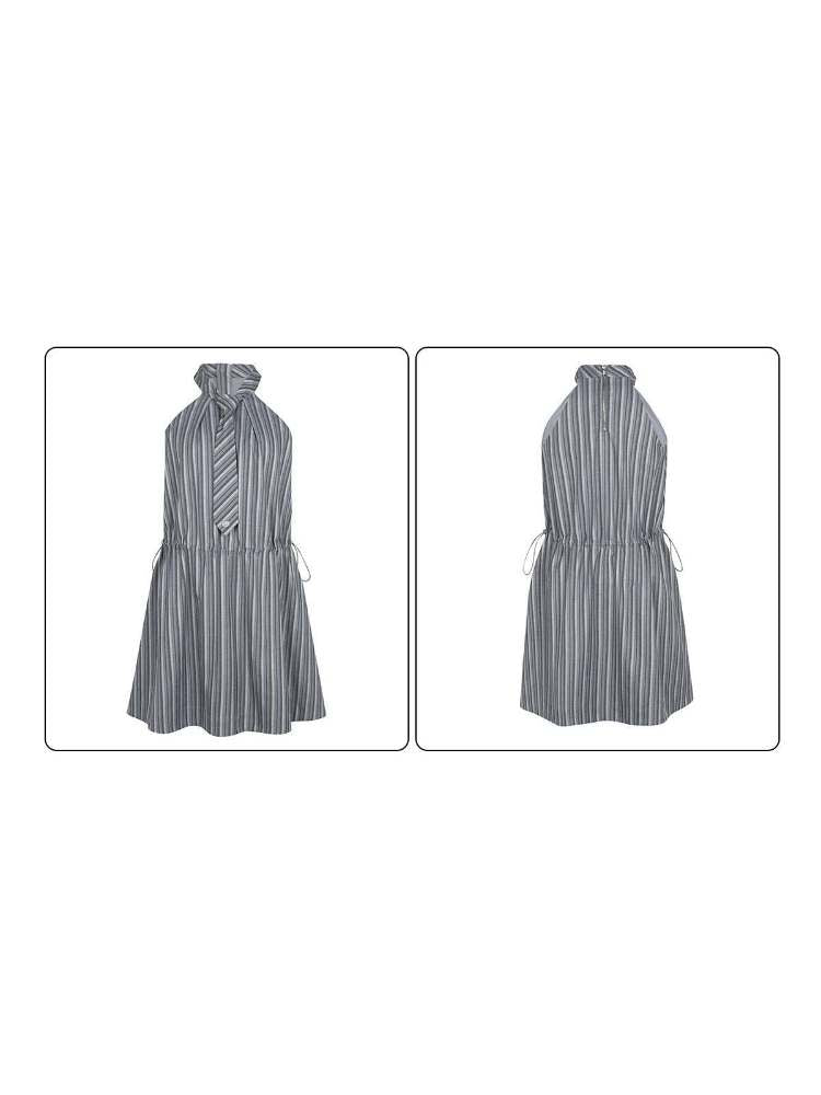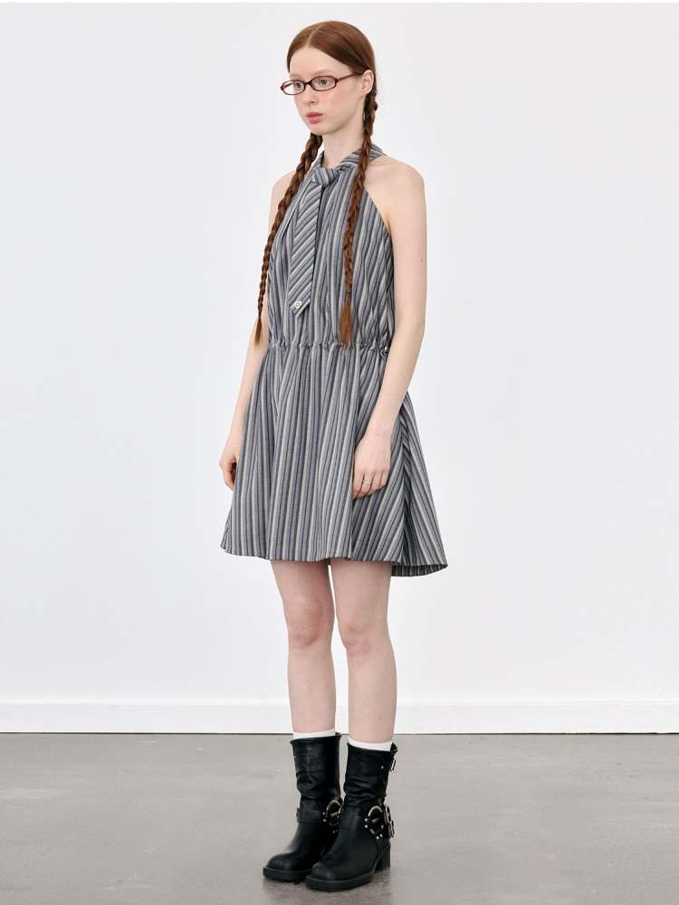 Halter Neck Tie Sleeveless Striped A-Line Dress【s0000008090】