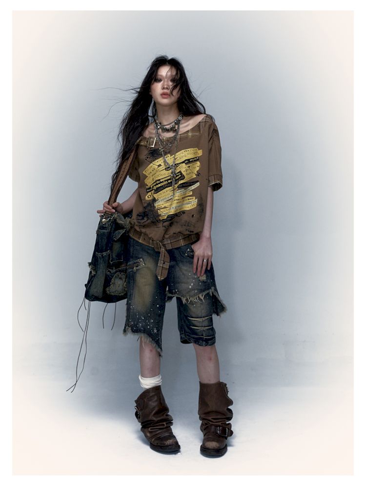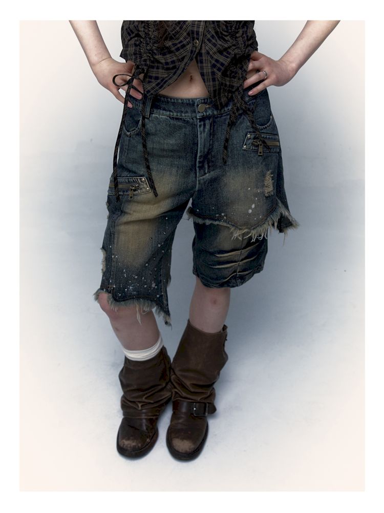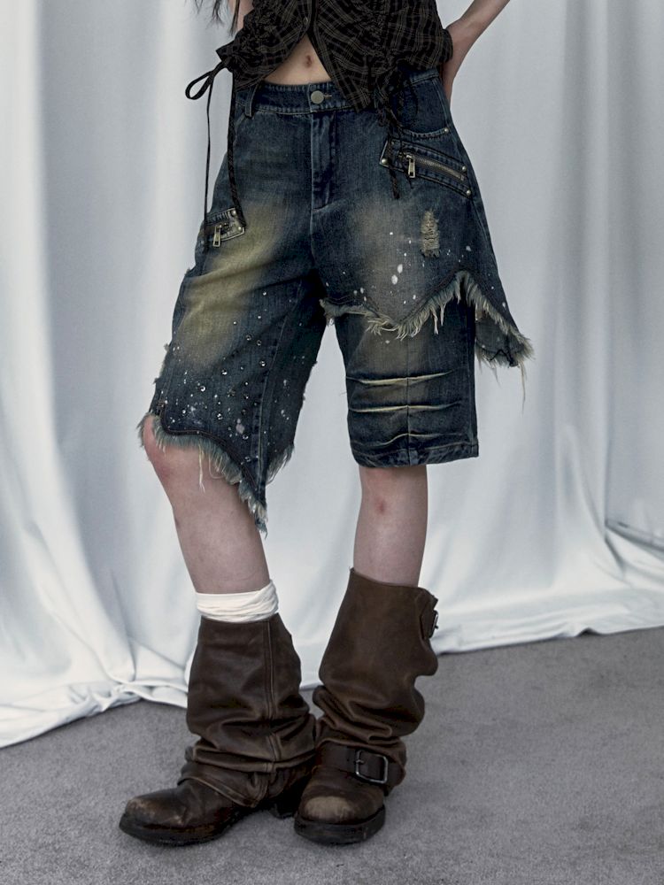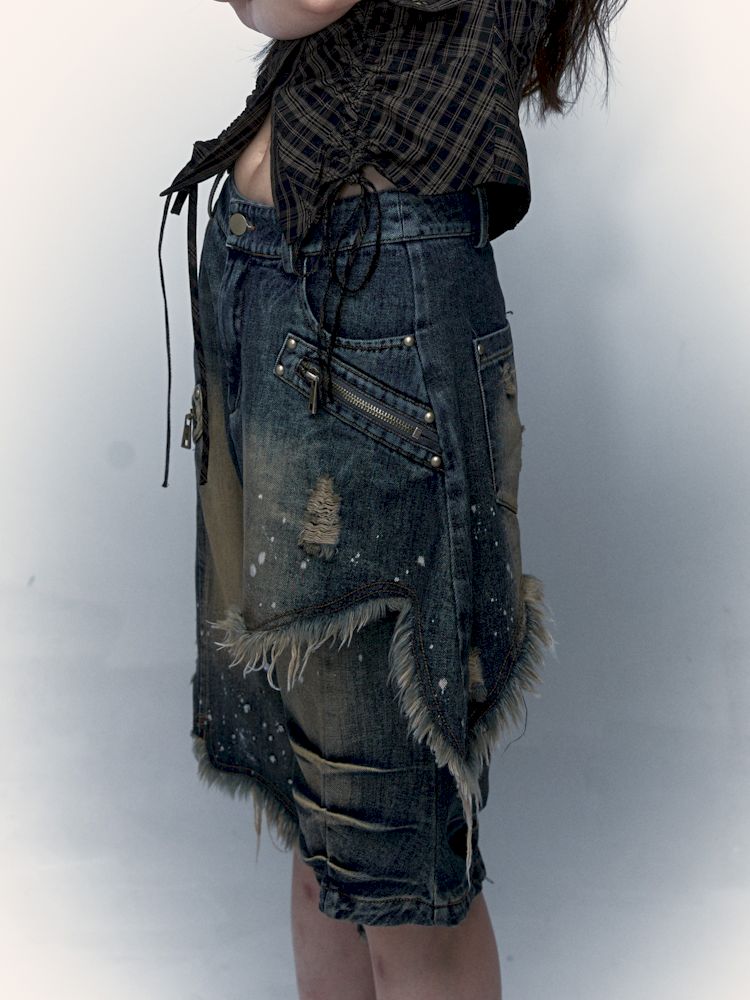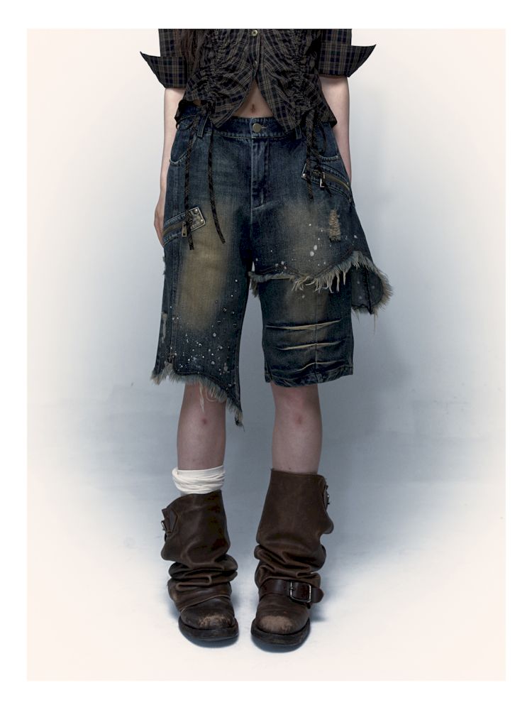 Punk street washed and worn wide-leg jeans【s0000008127】