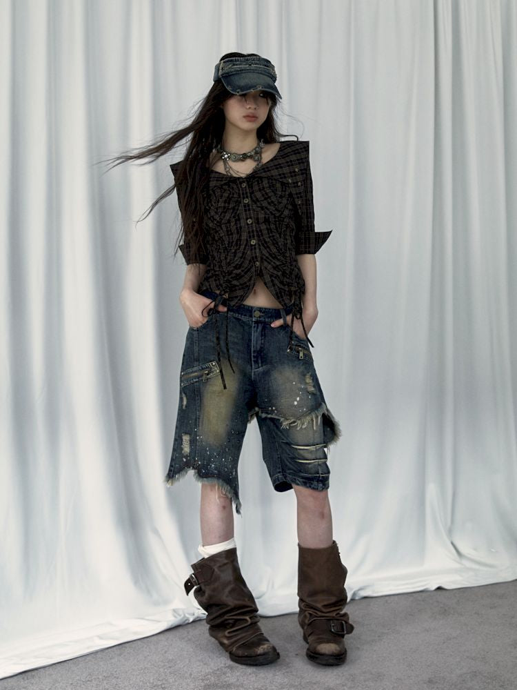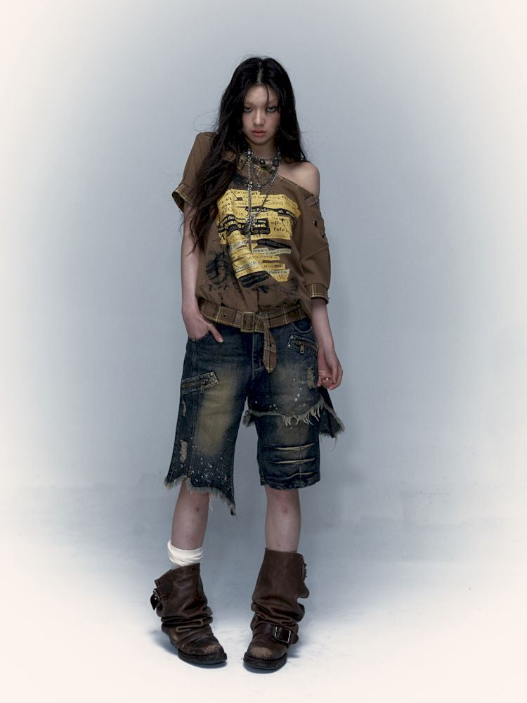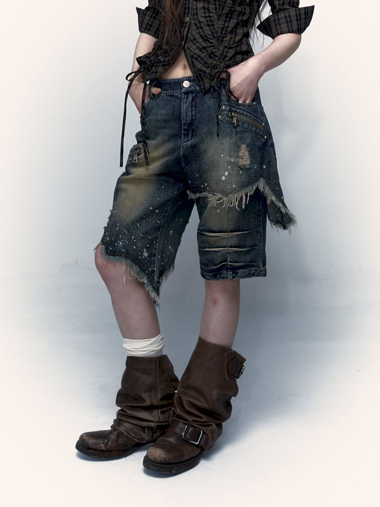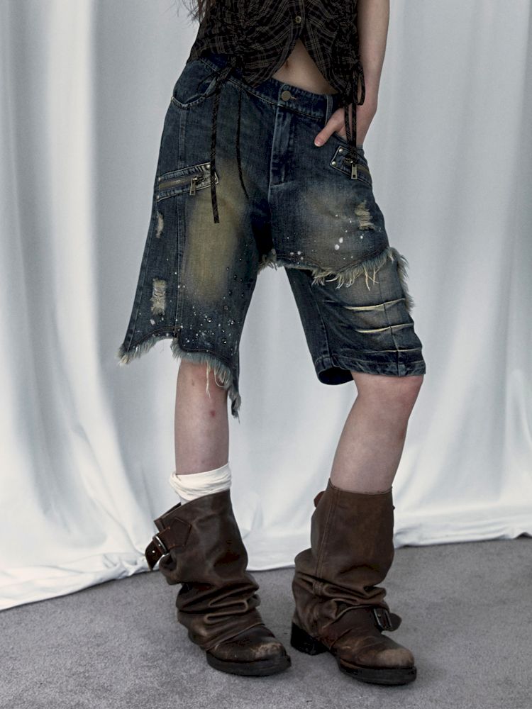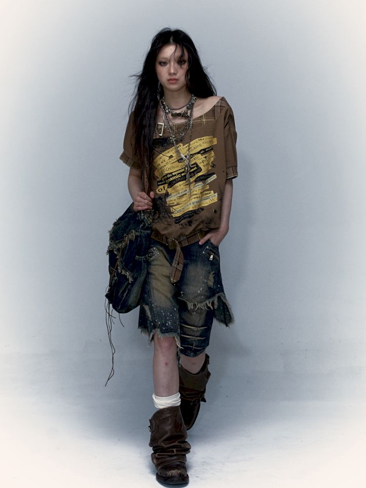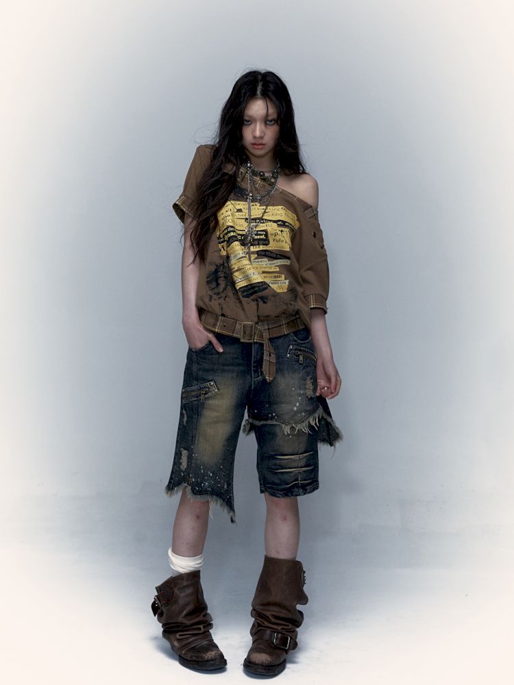 Punk street washed and worn wide-leg jeans【s0000008127】