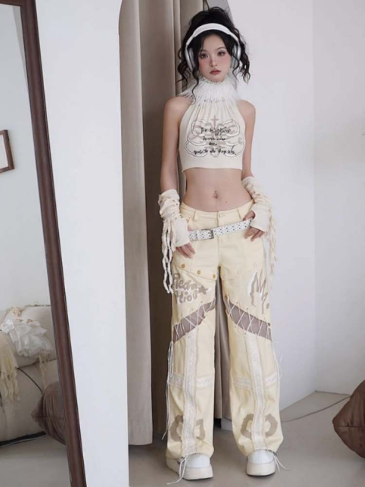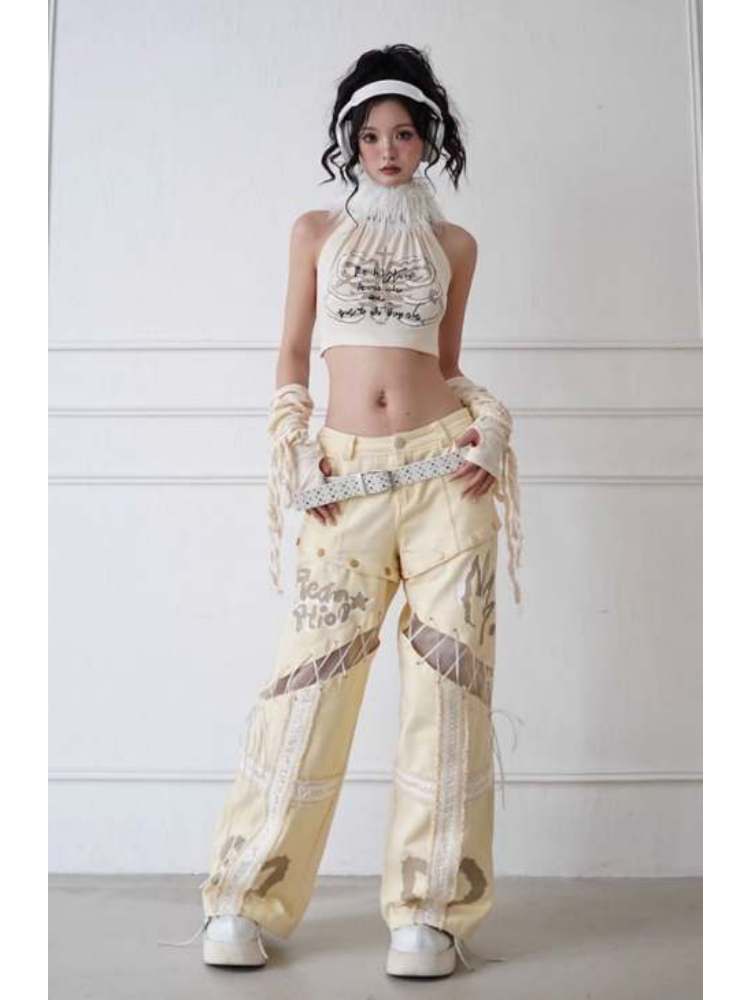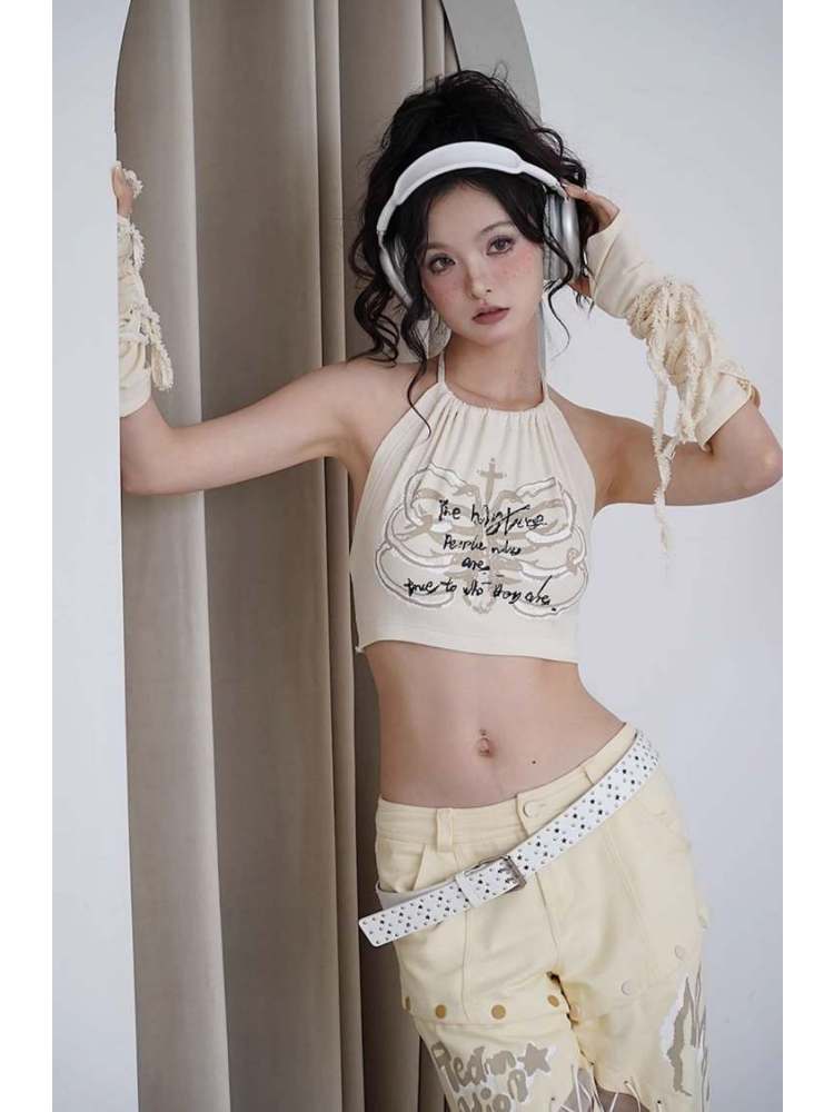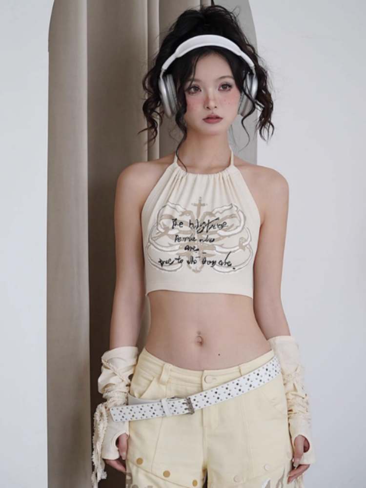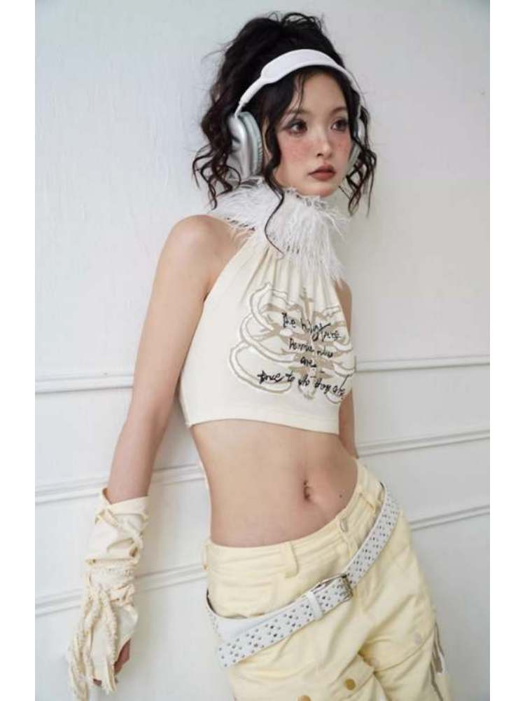 Original Printed Open Back Removable Fur Collar Tube Top Vest【s0000008142】