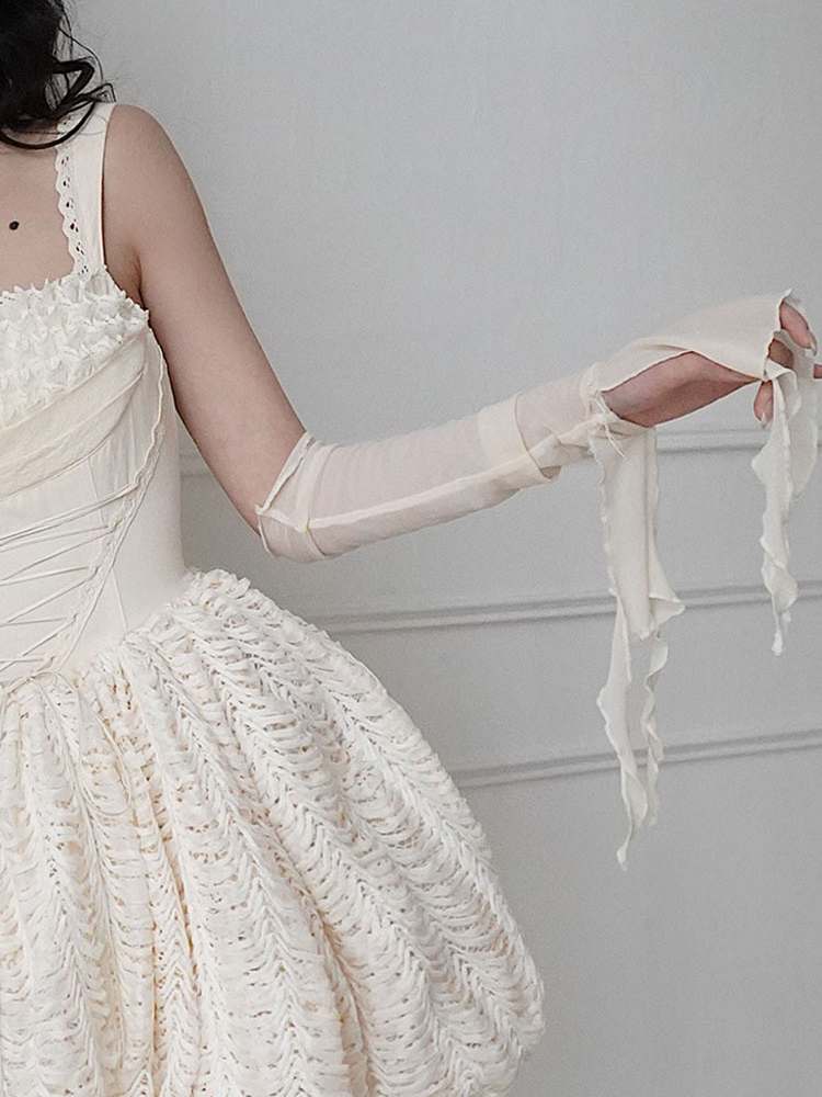 Fluttering Elastic Tulle Sleeves【s0000008145】