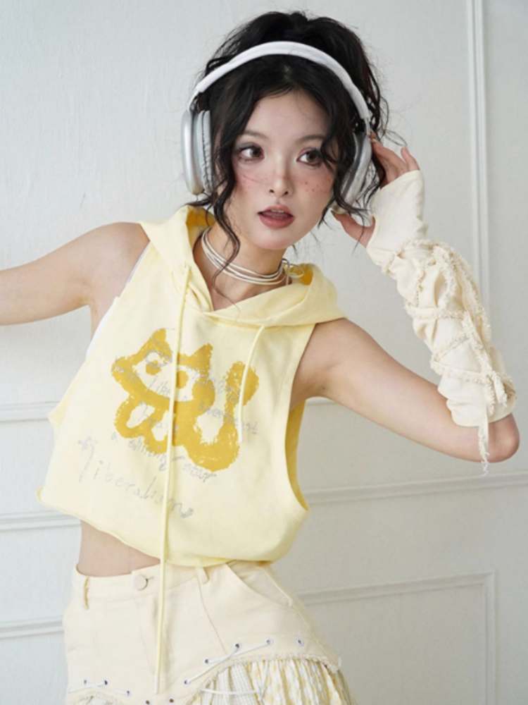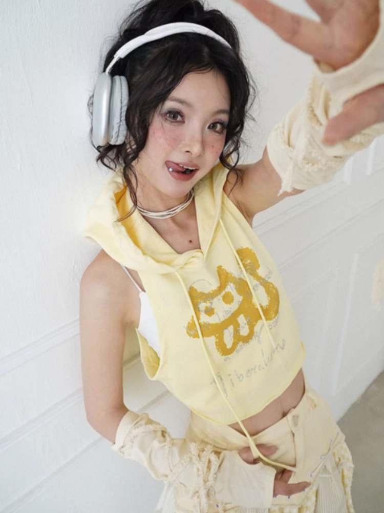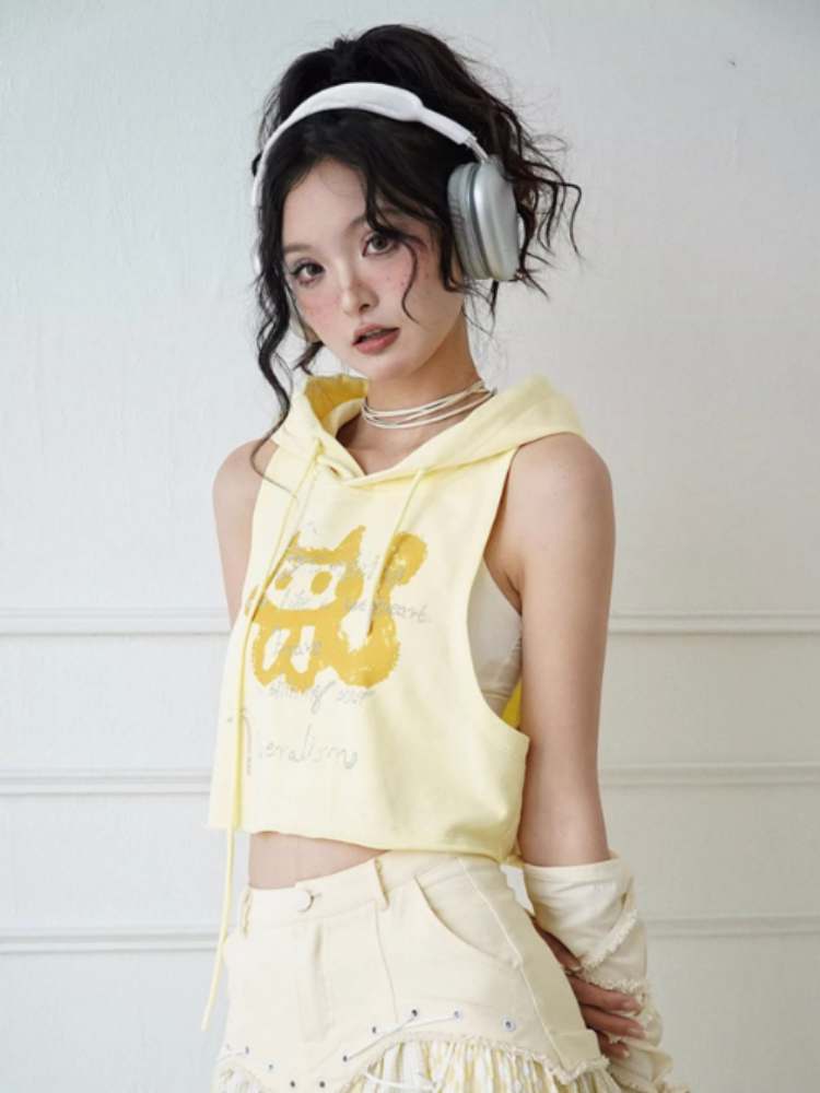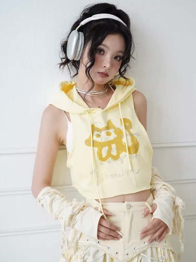 Kitty Print Hooded Tops & Camisole【s0000008150】