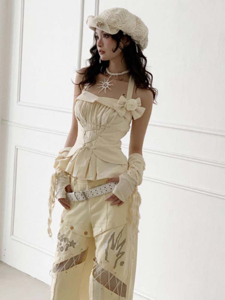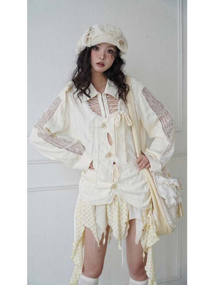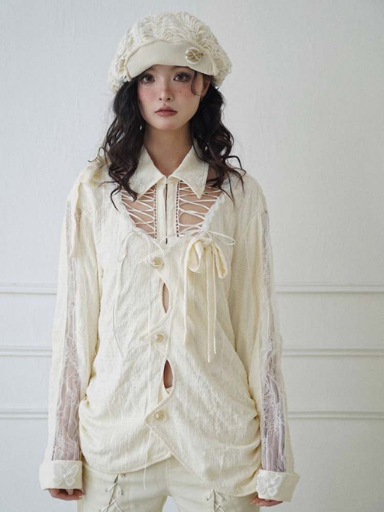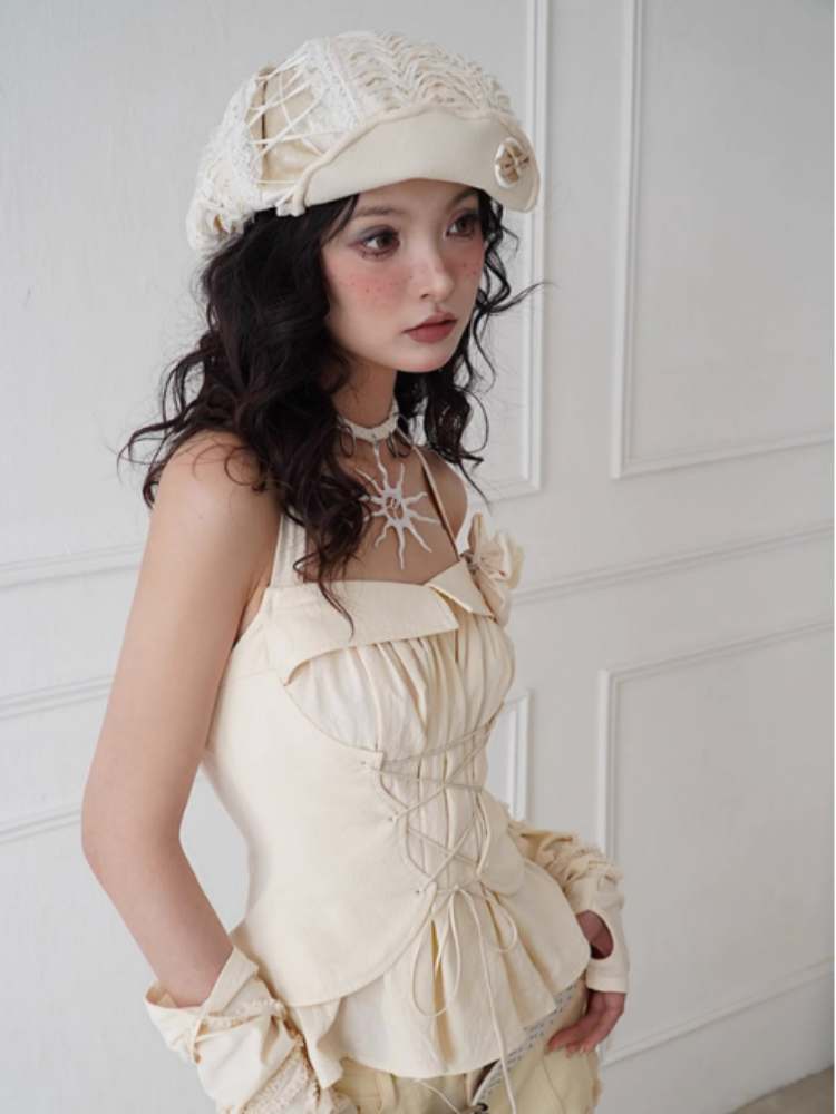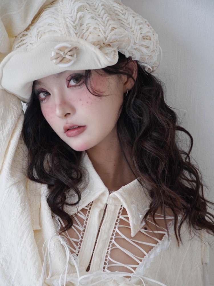 Lace-Up Bowknot & Button Beret Hat【s0000008153】