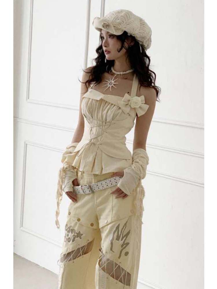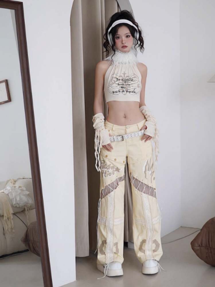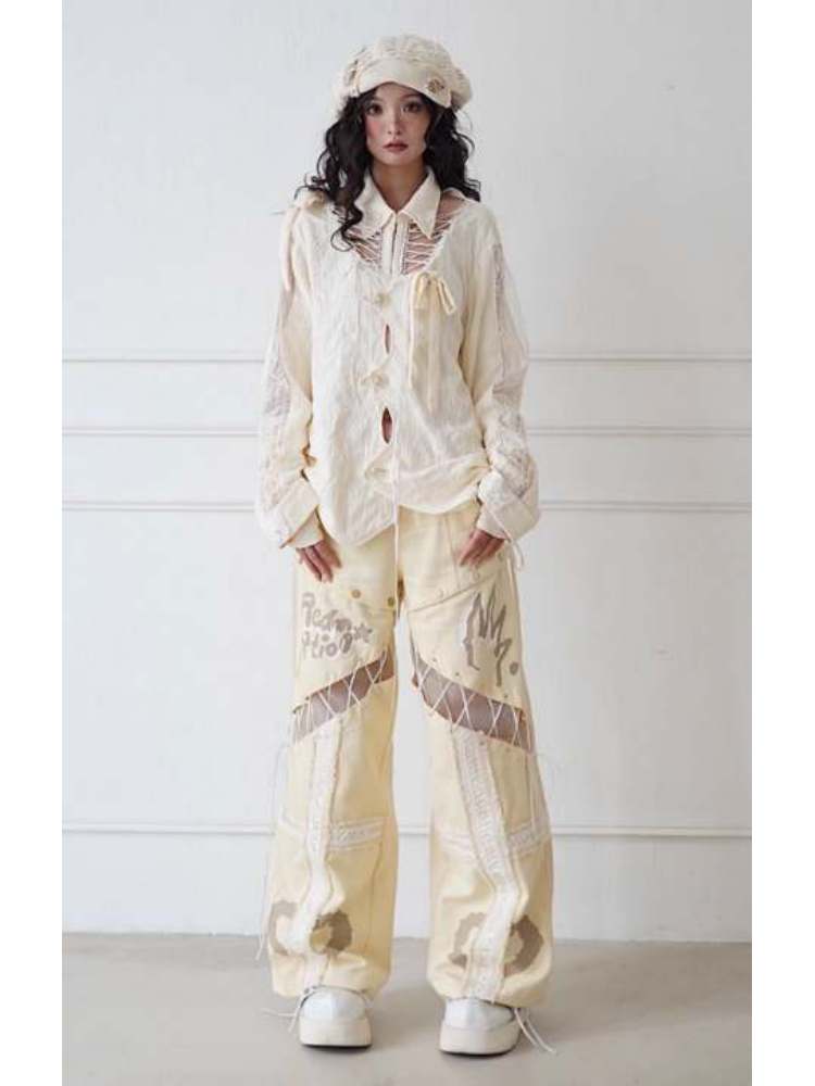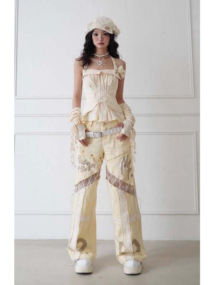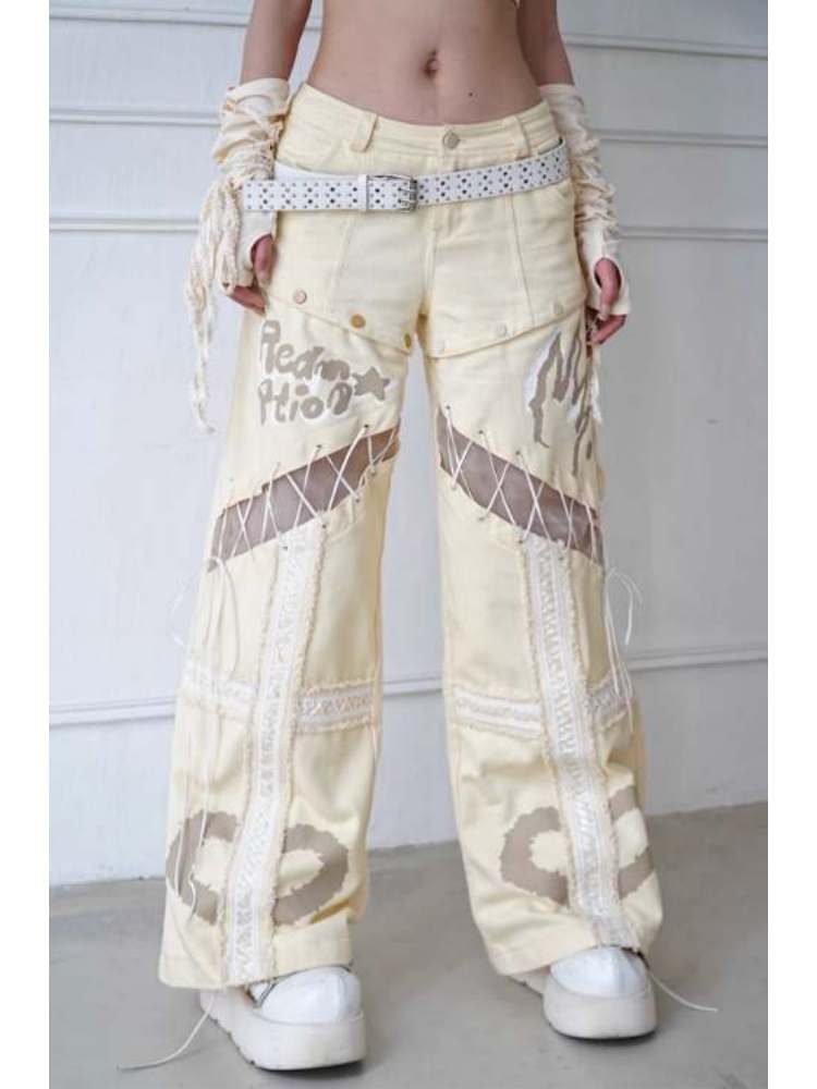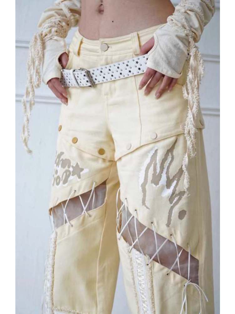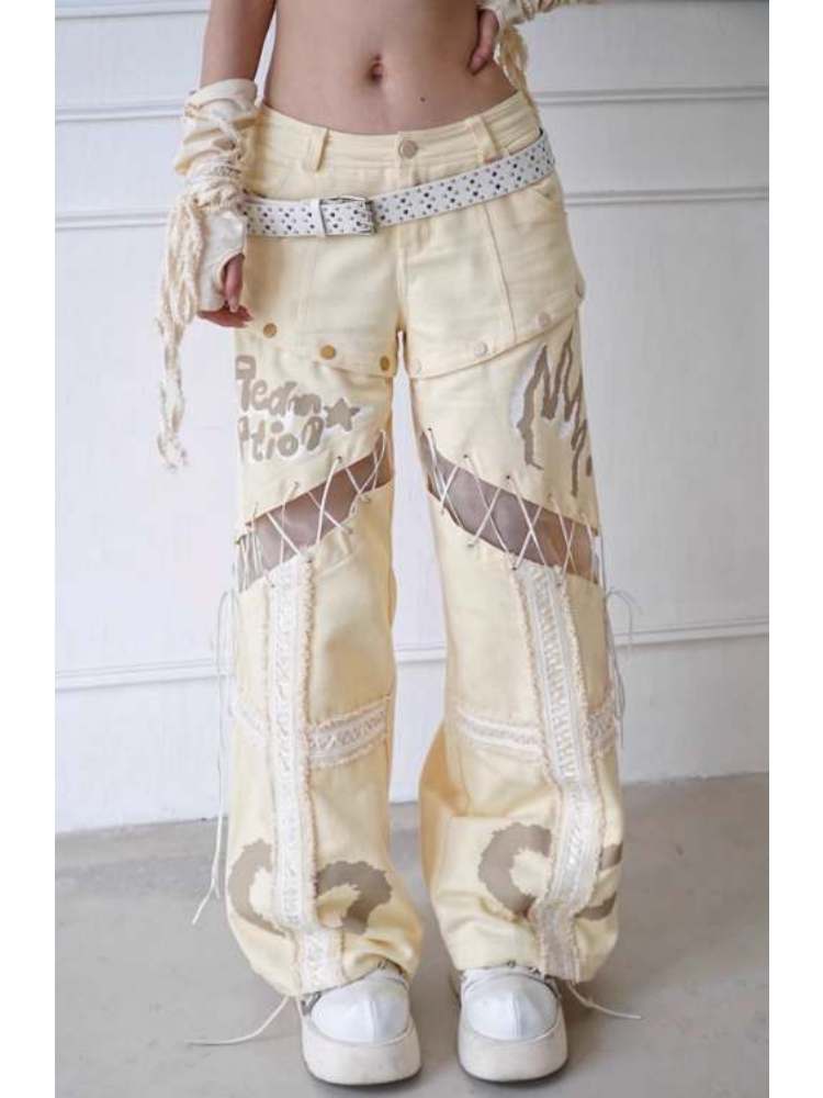 Lace-Up Detachable Straight-Leg Cut Jeans【s0000008154】