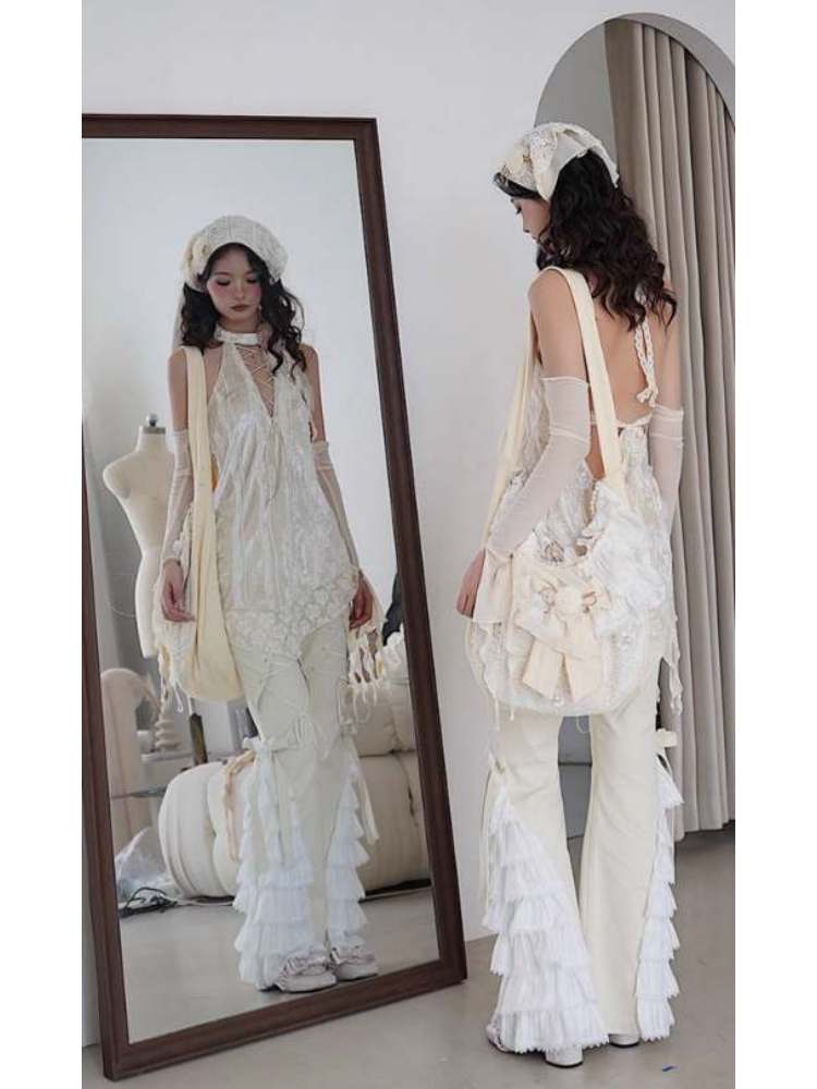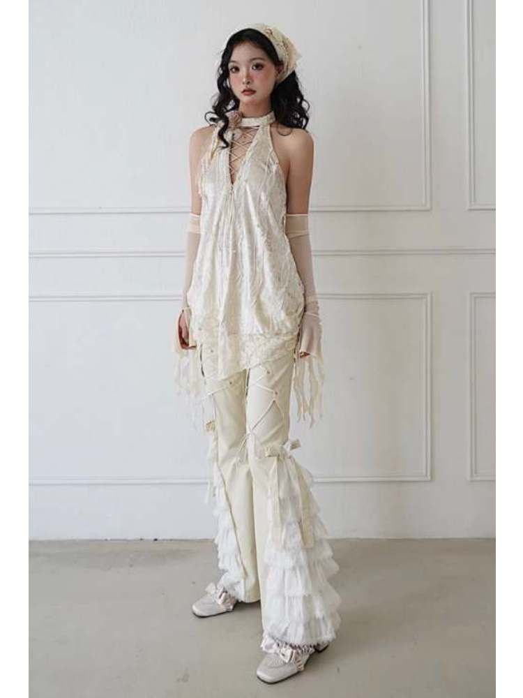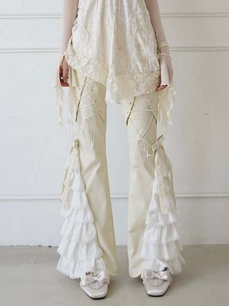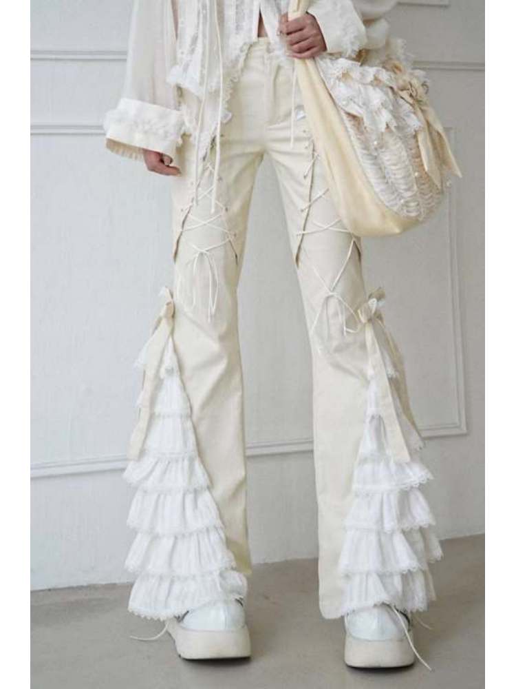 Lace-Up Tiered Bowknots Flared Pants【s0000008155】