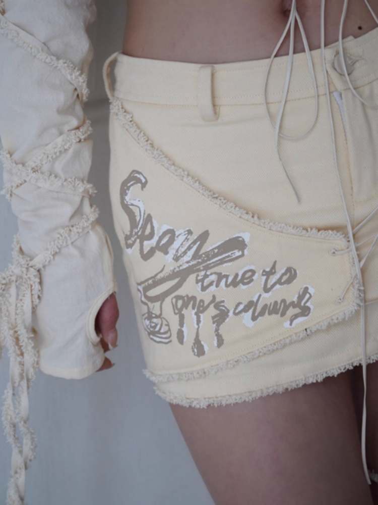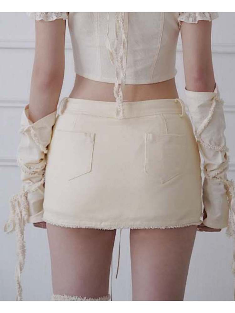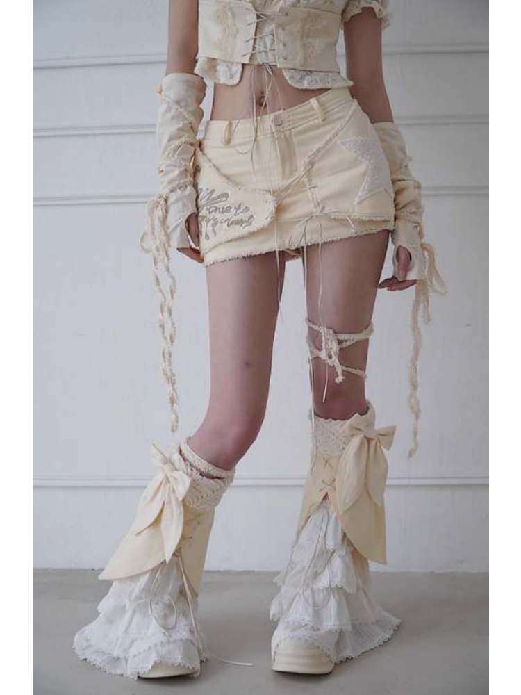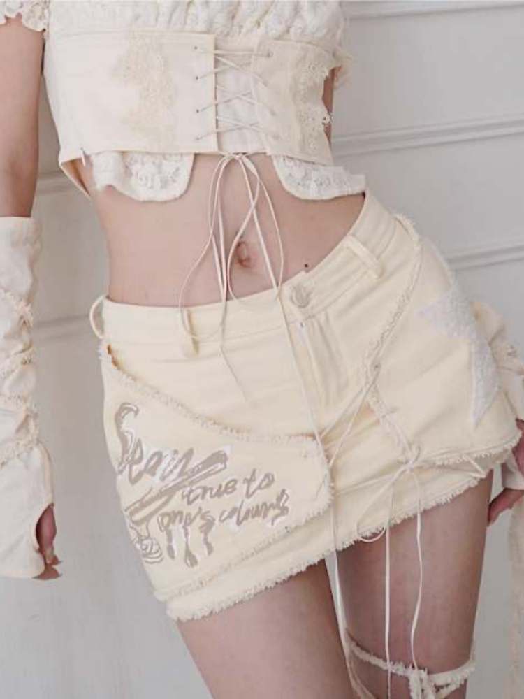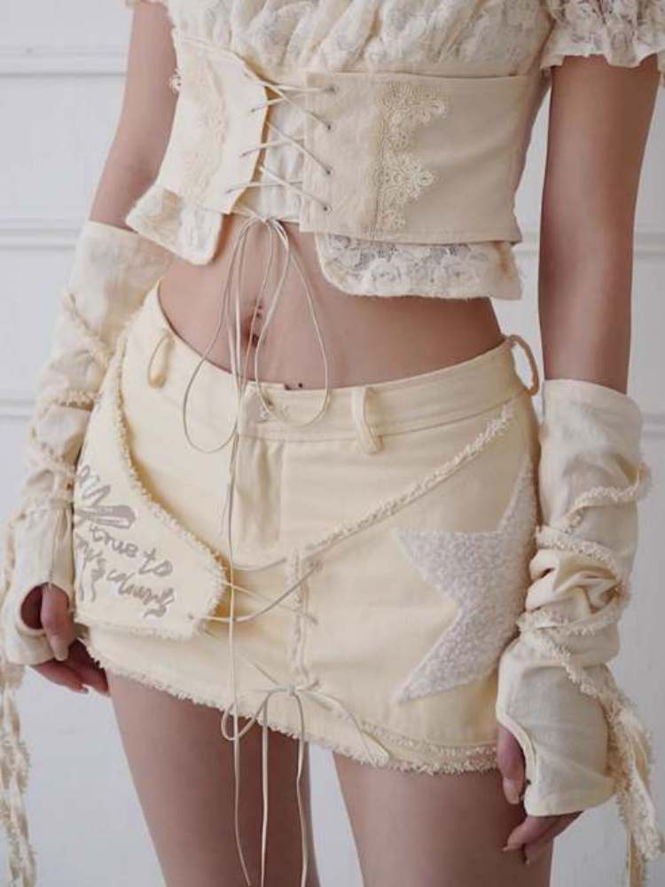 Fleece Star Patch Asymmetrical Frayed Hem Mini Skirt【s0000008157】