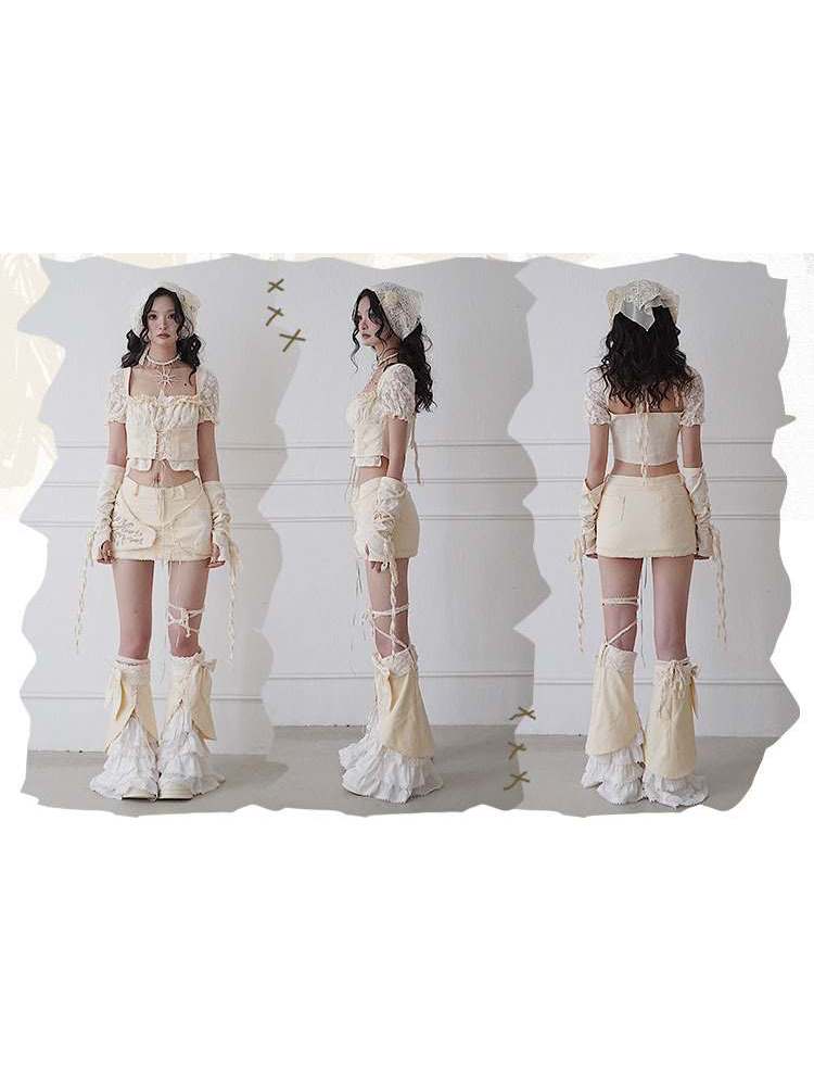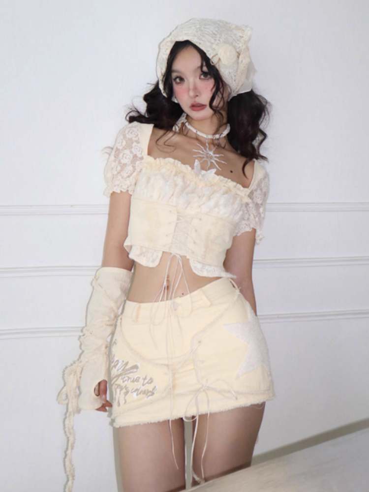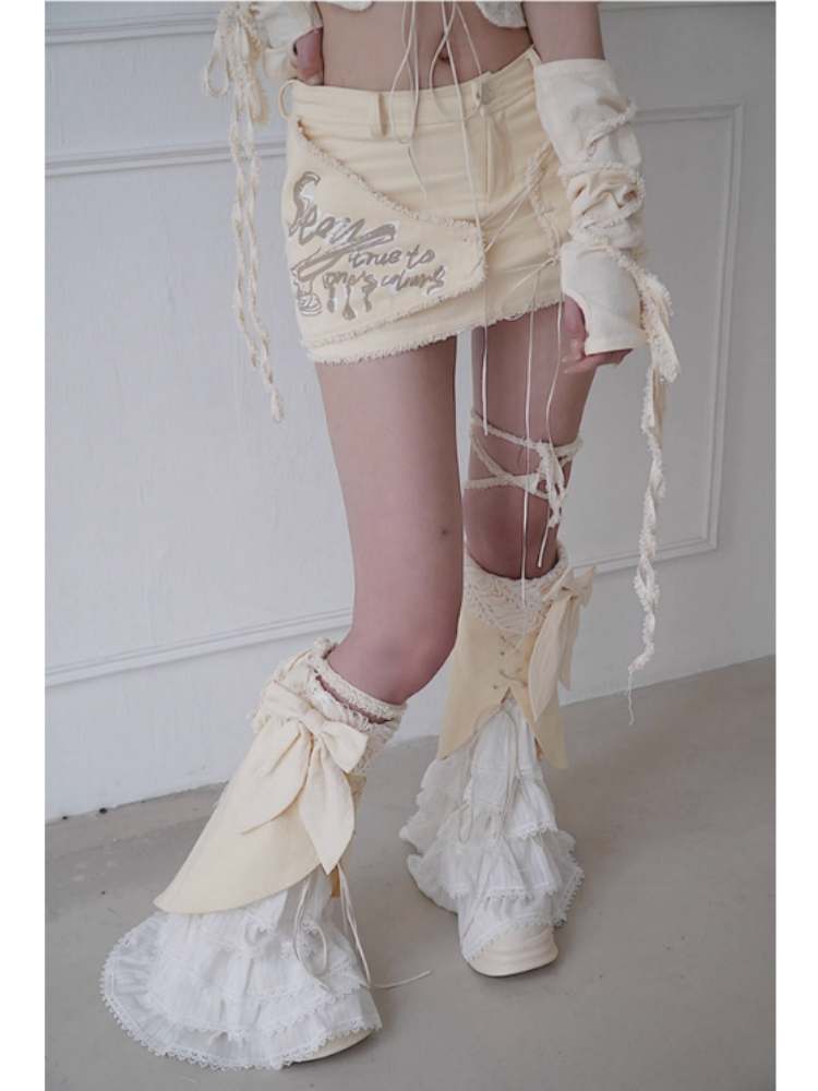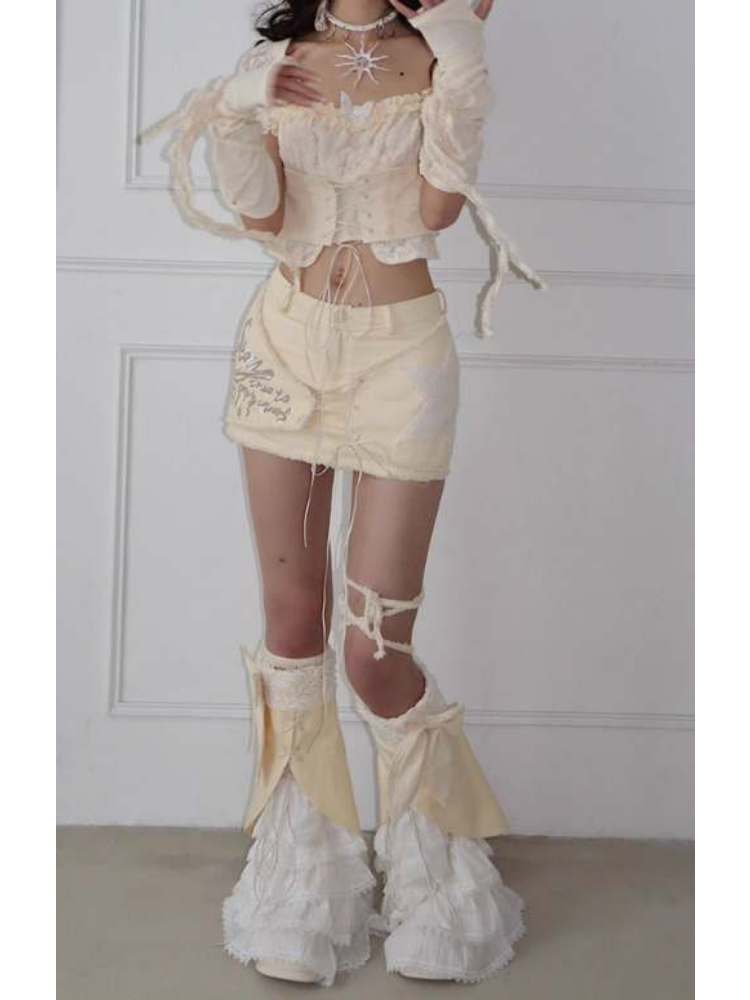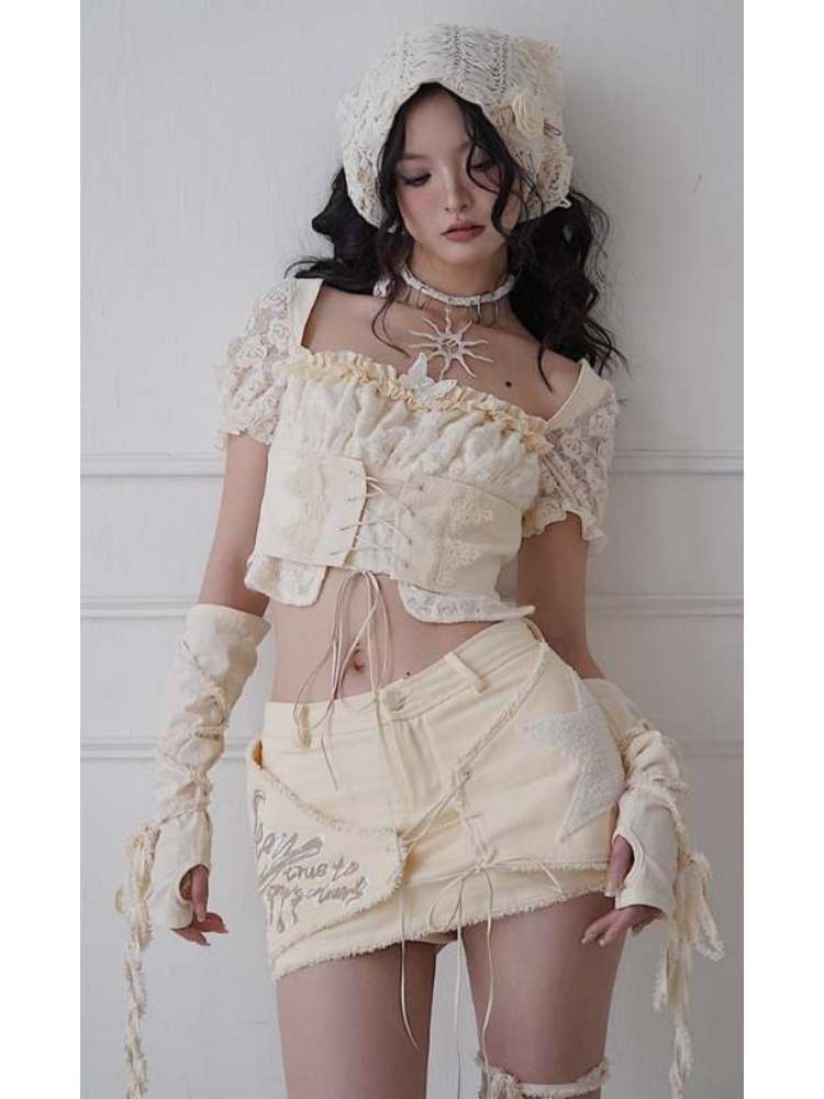 Fleece Star Patch Asymmetrical Frayed Hem Mini Skirt【s0000008157】