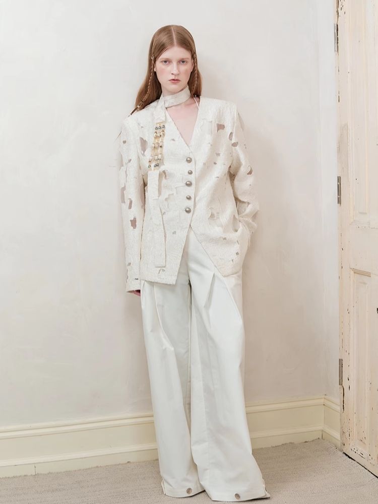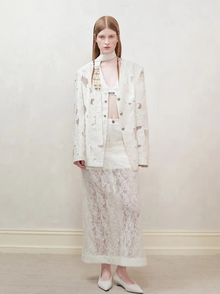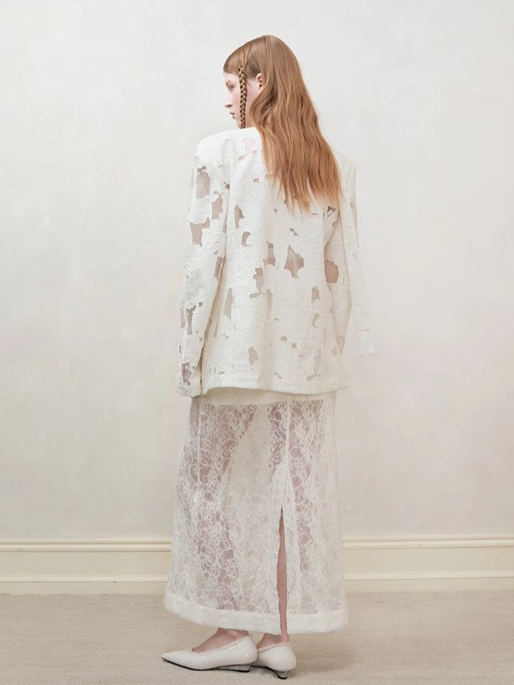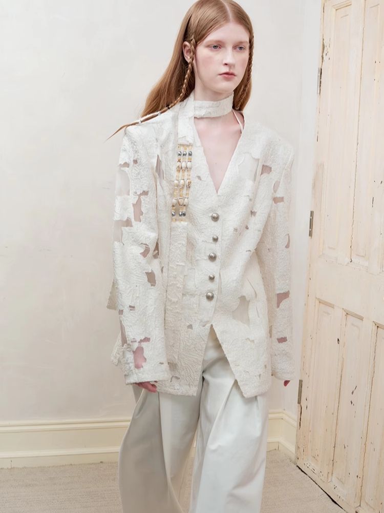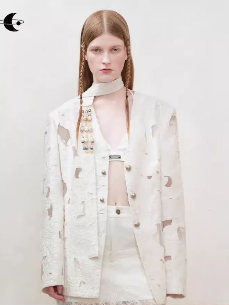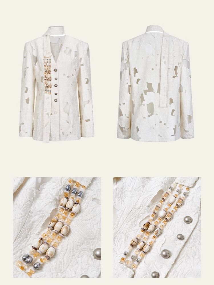 Beaded mottled hollowed out jacquard blazer【s0000008196】