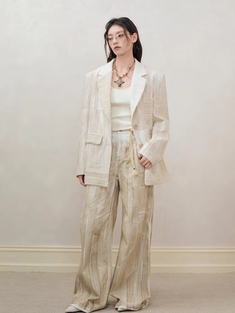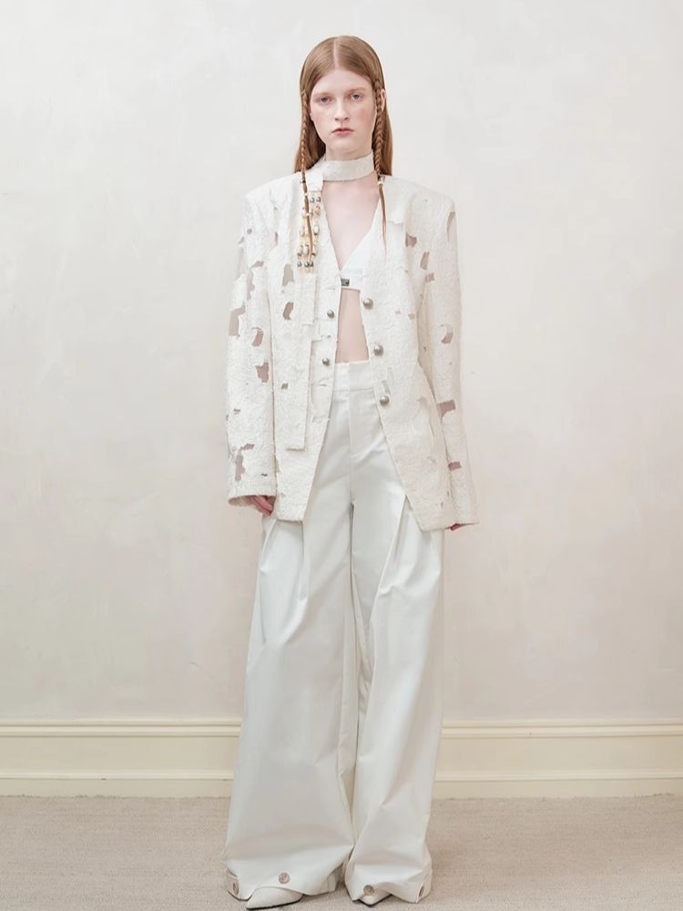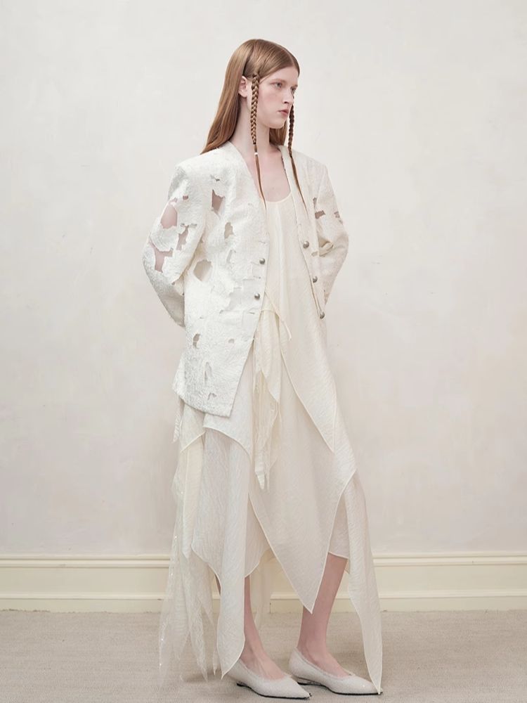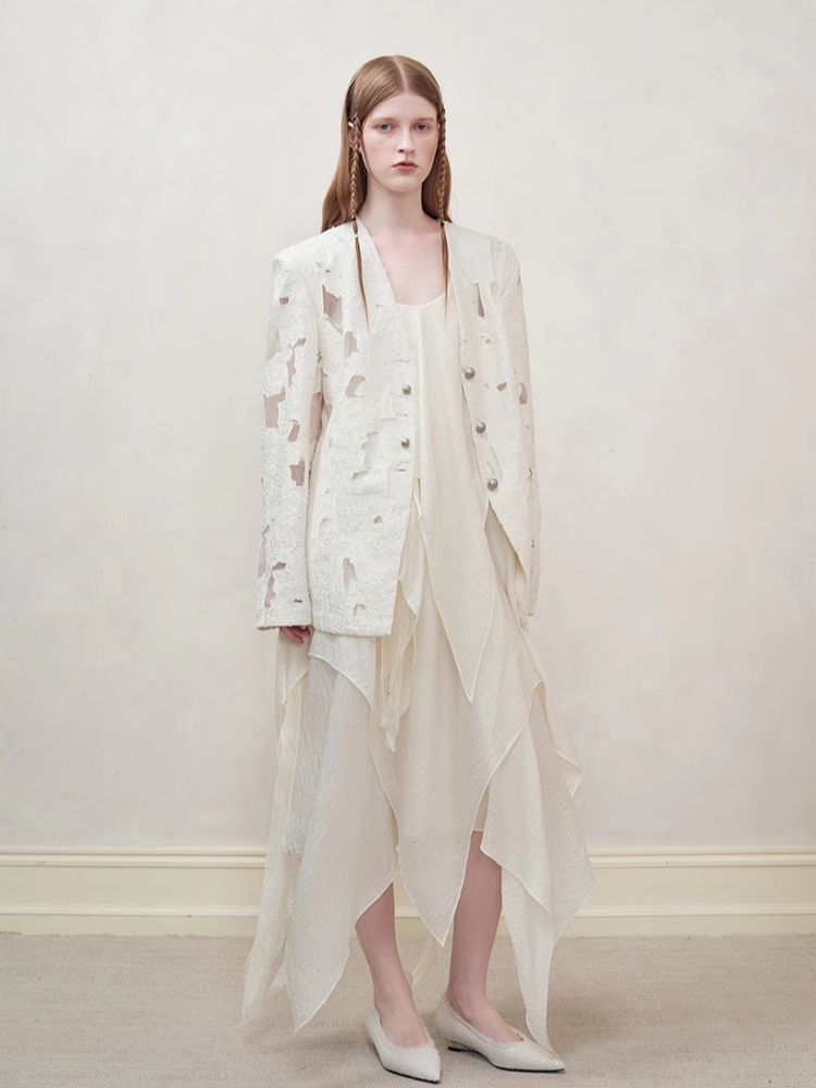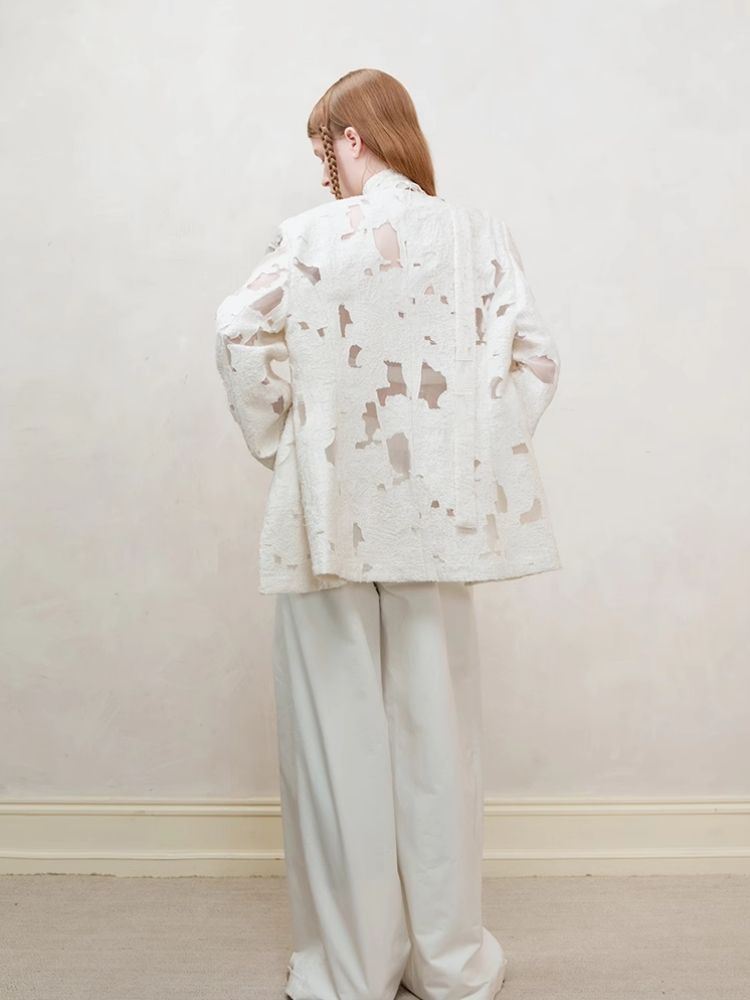 Beaded mottled hollowed out jacquard blazer【s0000008196】