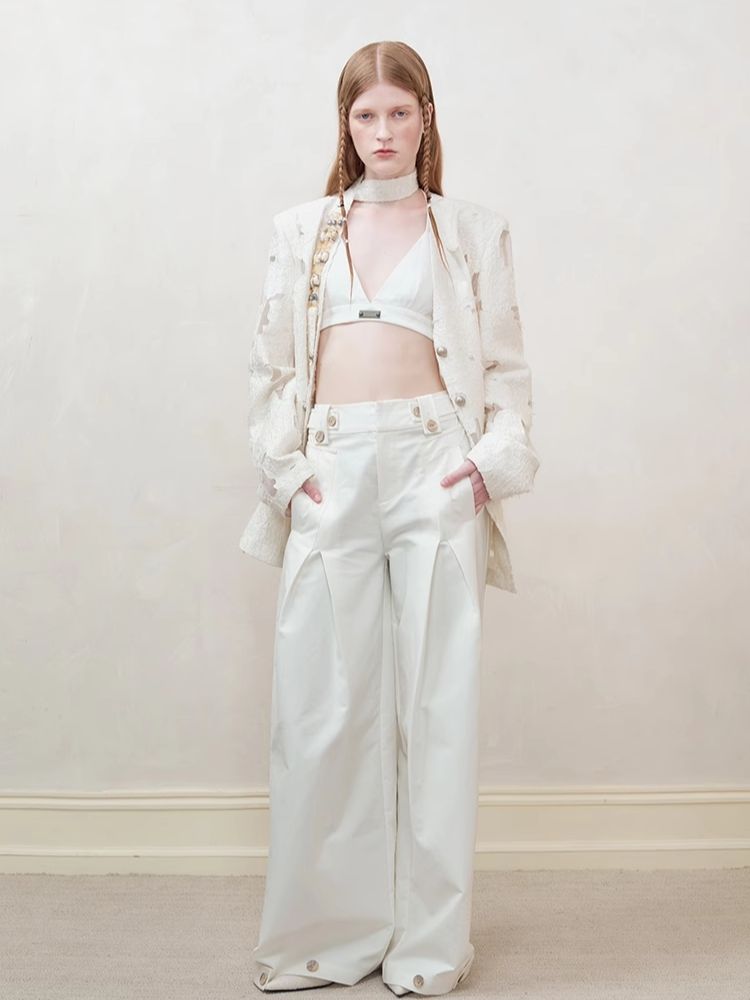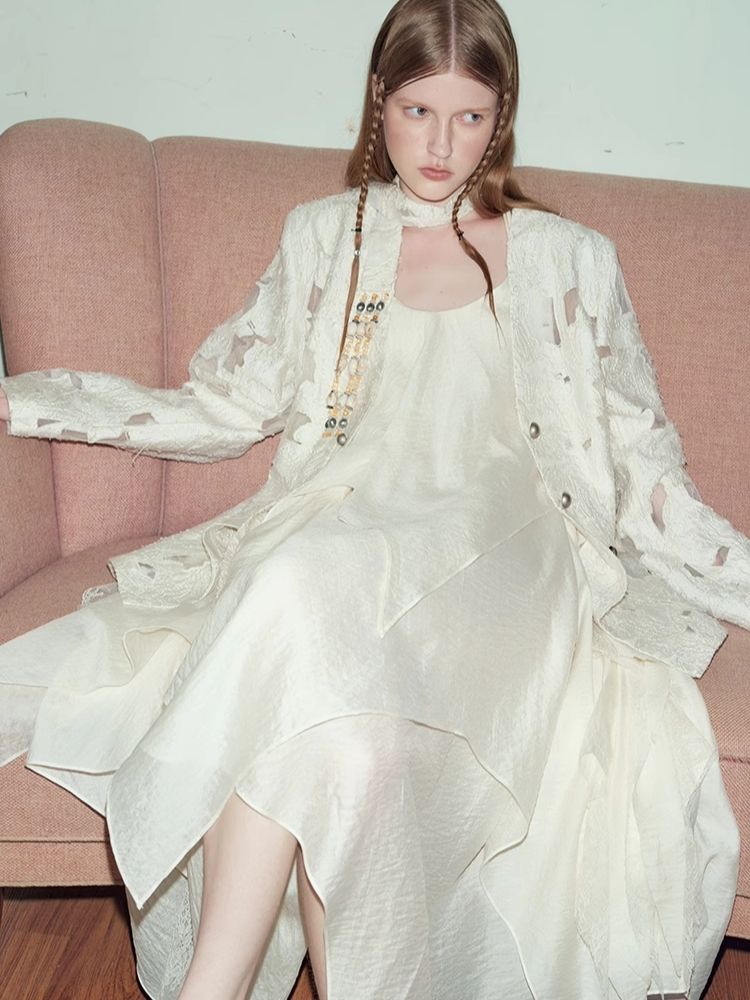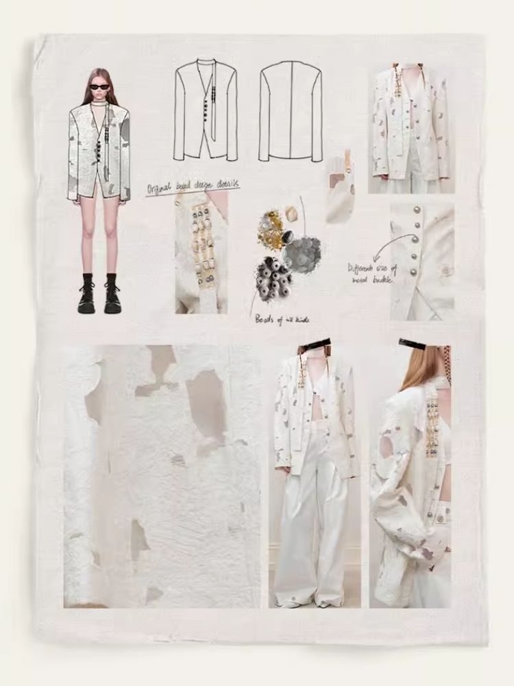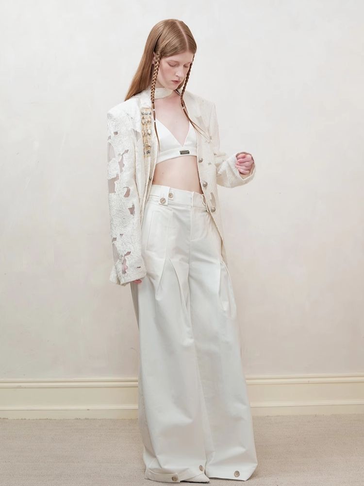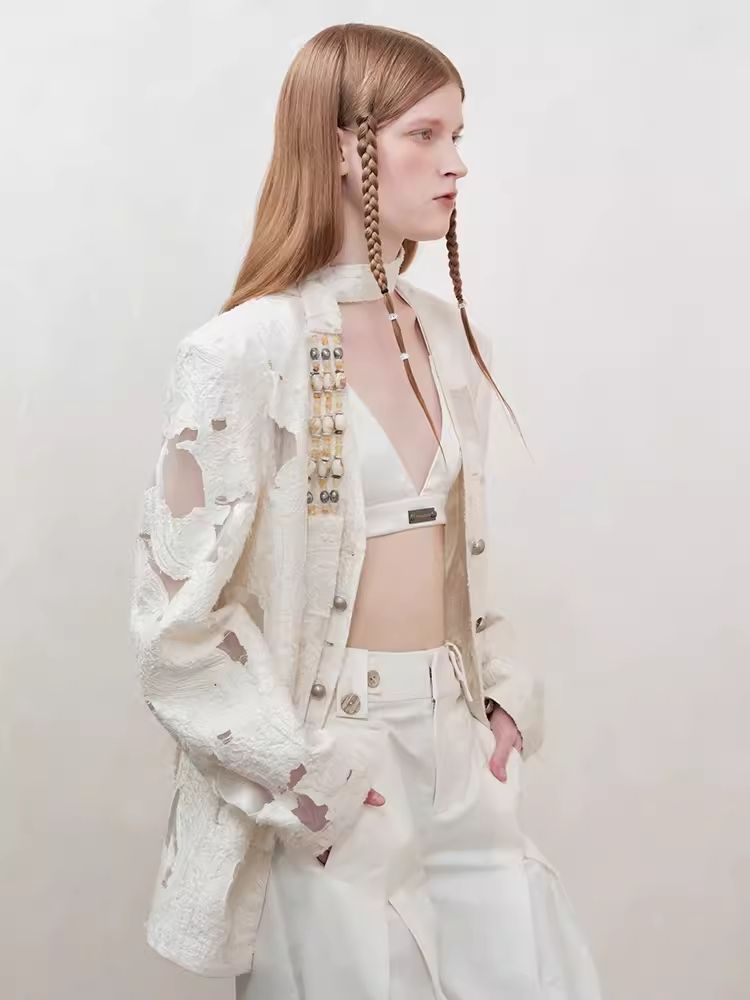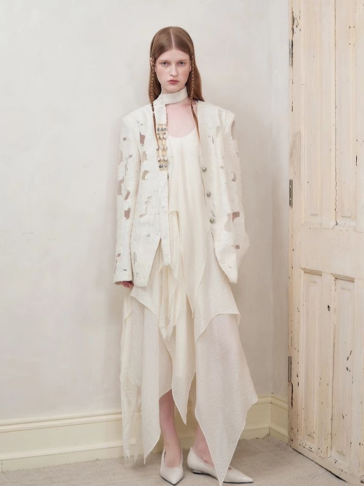 Beaded mottled hollowed out jacquard blazer【s0000008196】