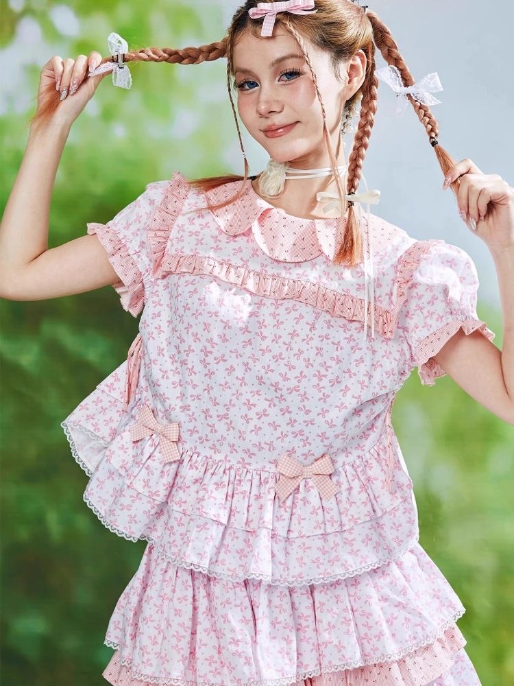Cute Doll Neck Short Sleeve Blouse【s0000008234】