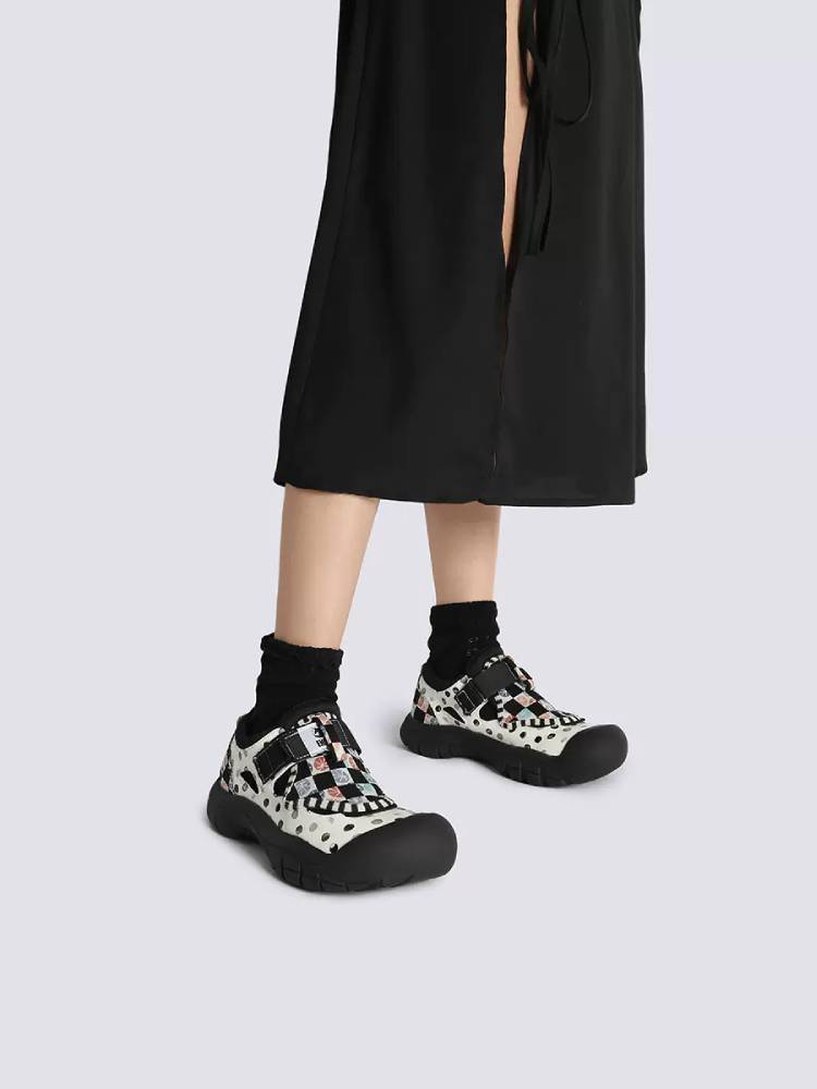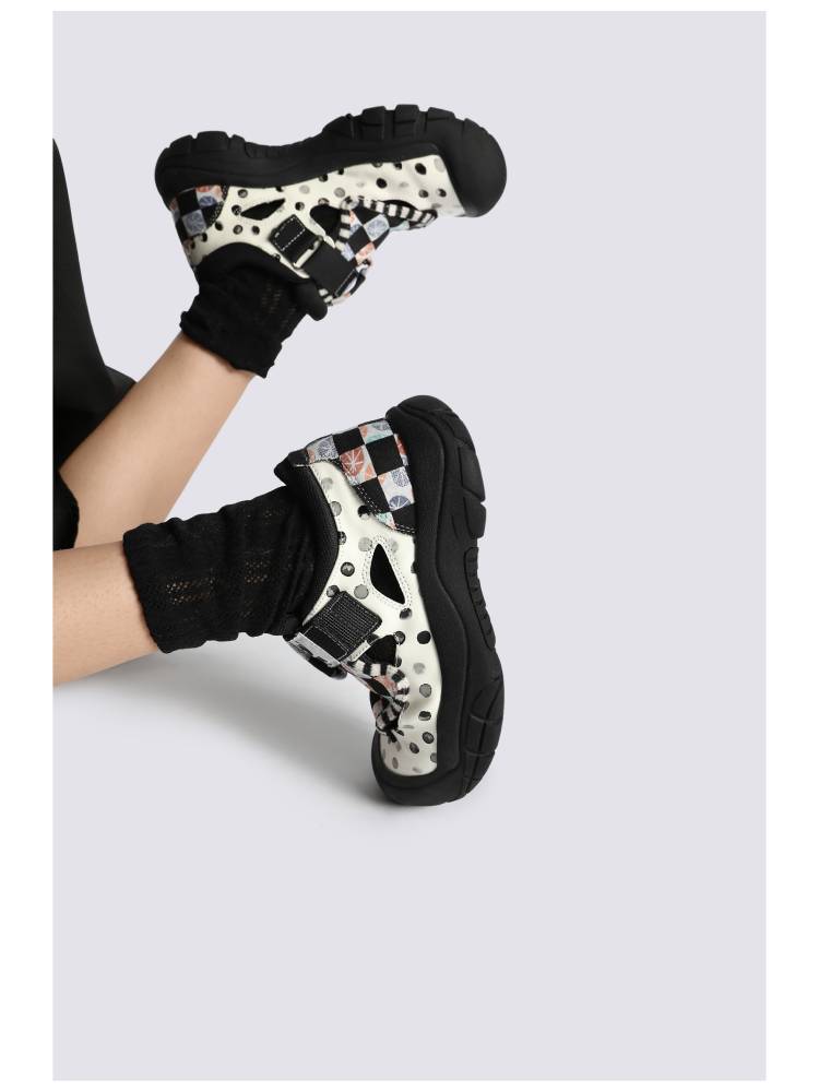 デザインが気に入って購入しました。届いてみると思っていたより軽くて、歩く日でも履けそうな厚底スニーカーです。これからどんな服に合わせて履こうか楽しみ❢
