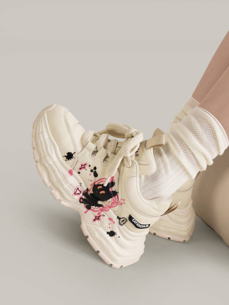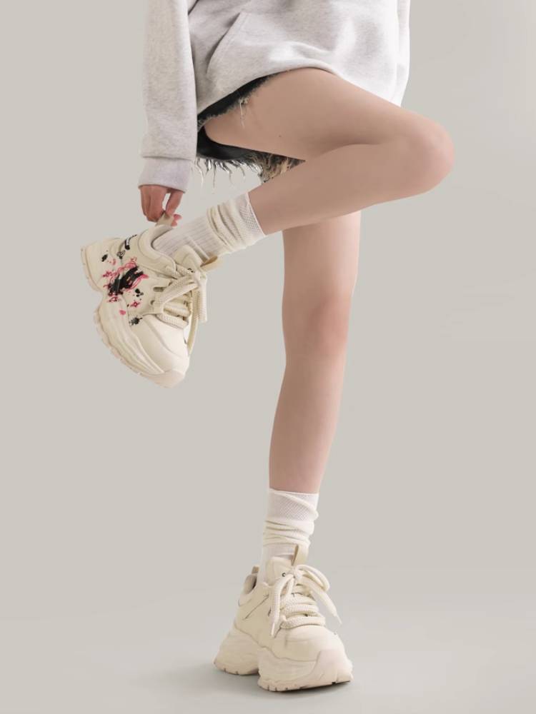 デザインが気に入って購入しました。届いてみると思っていたより軽くて、歩く日でも履けそうな厚底スニーカーです。これからどんな服に合わせて履こうか楽しみ❢
