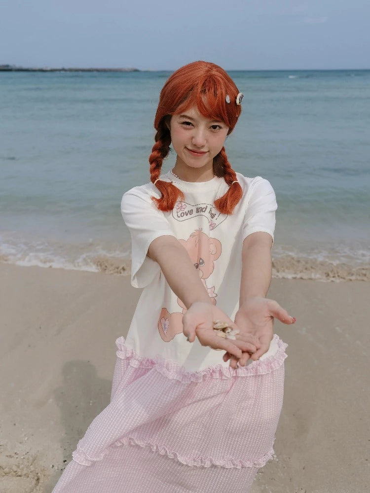 Pink Plaid Faux Two Piece T-Shirt Skirt【s0000008346】