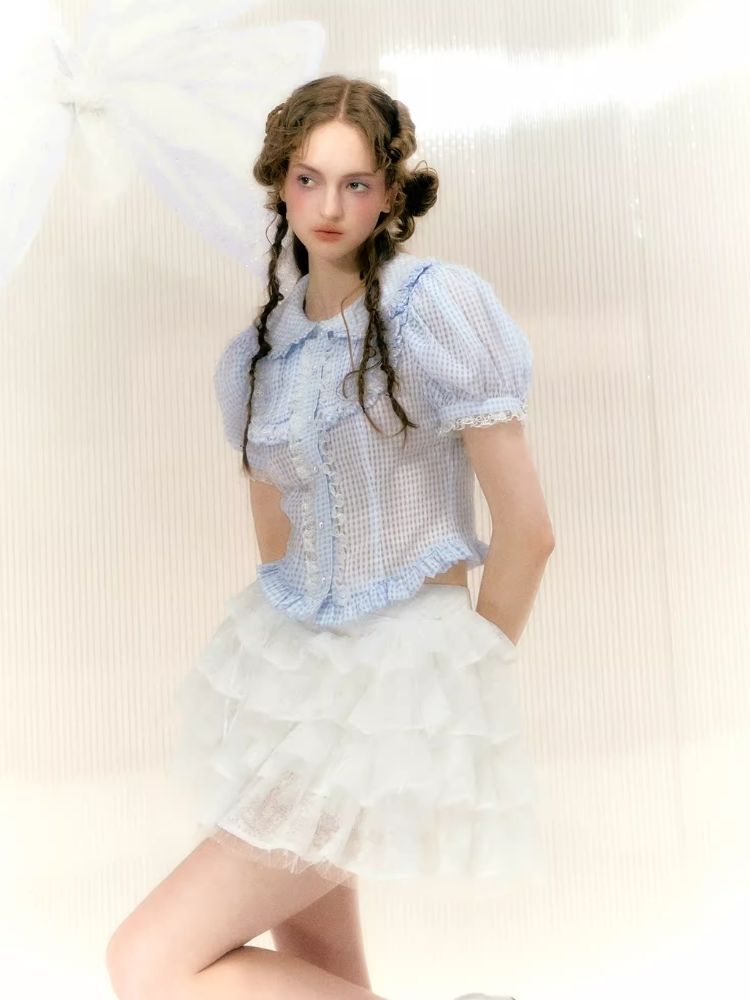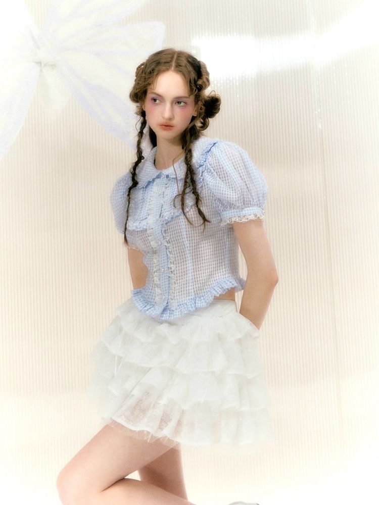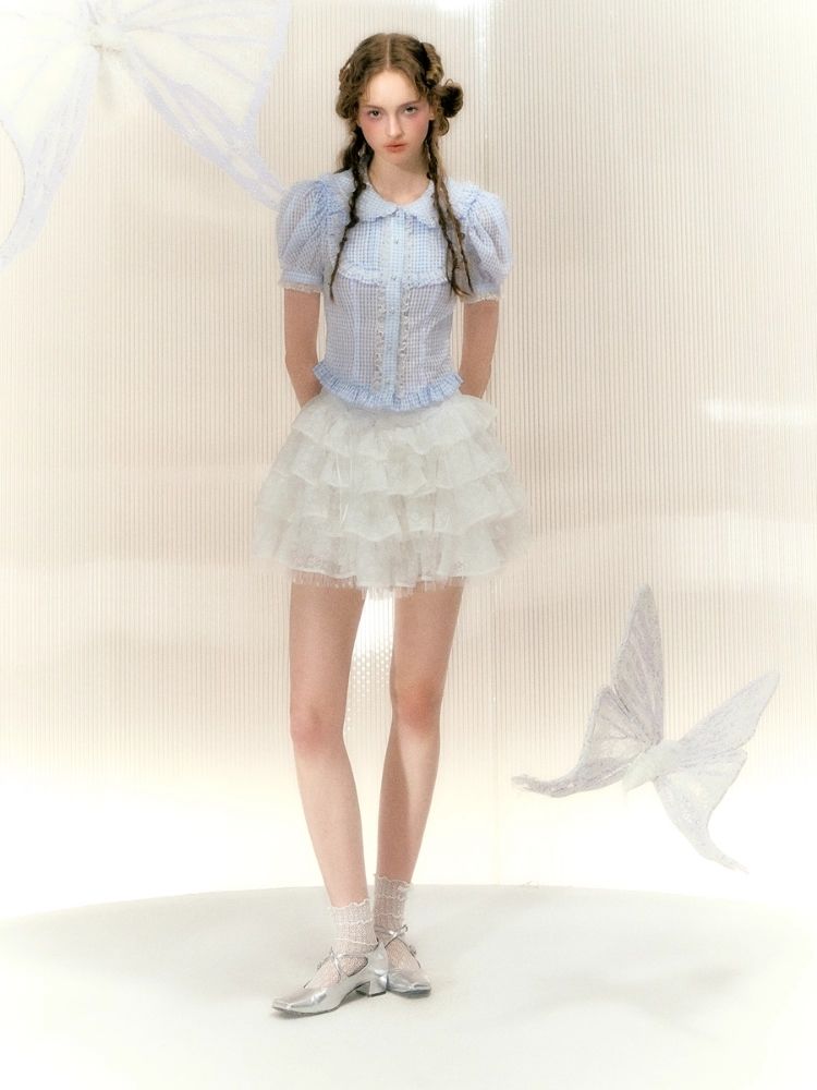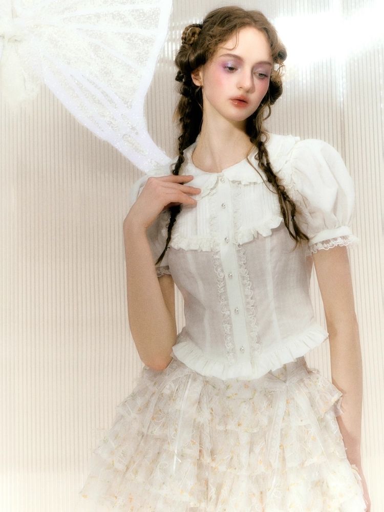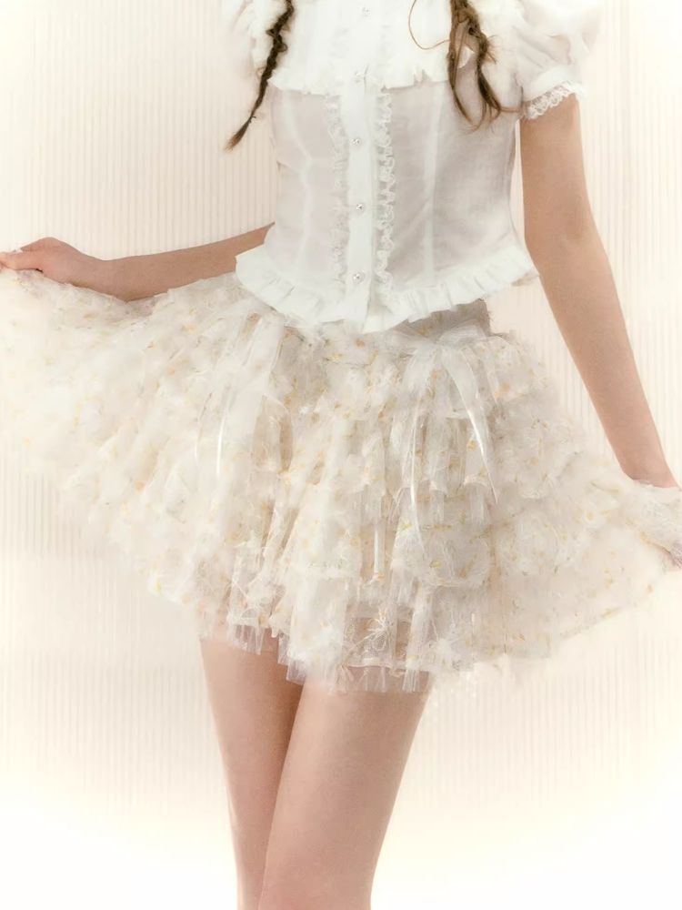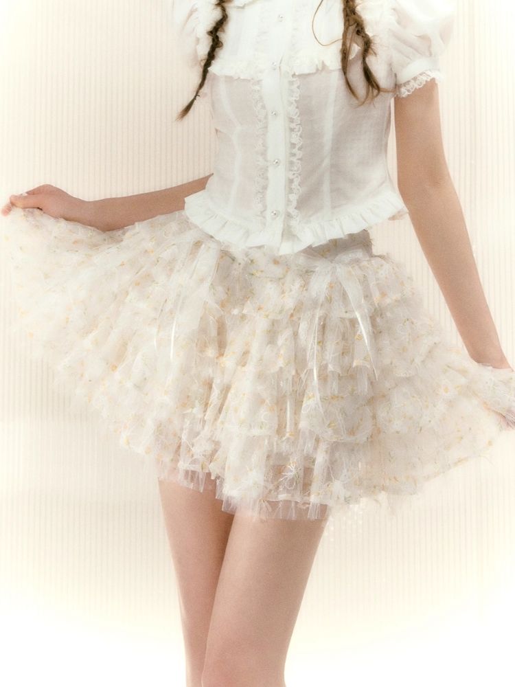 Printed Floral Mesh Semi Skirt Poncho【s0000008360】