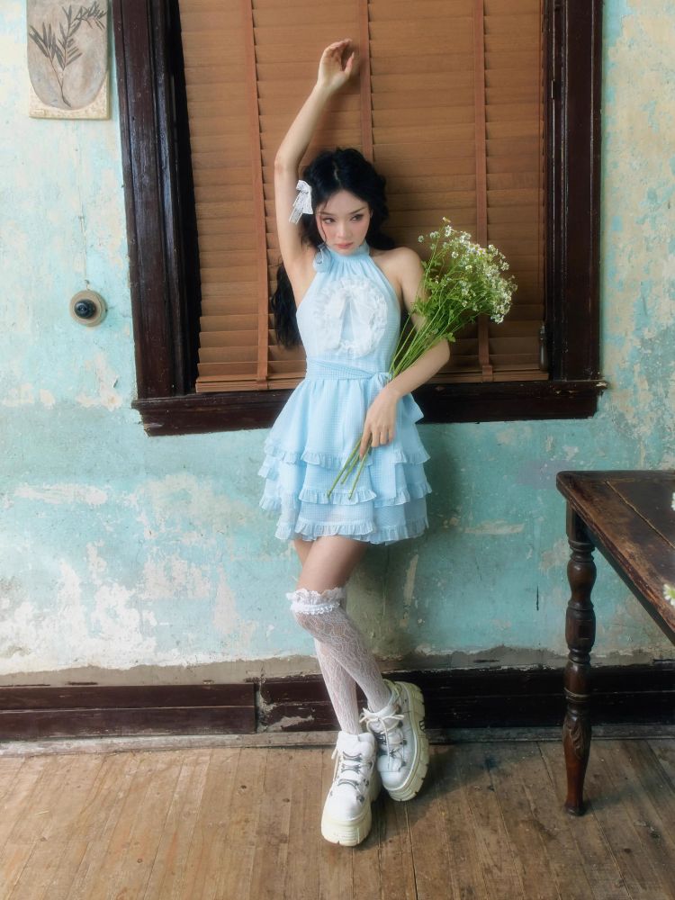 Blue Patchwork Neck Dress【s0000008371】