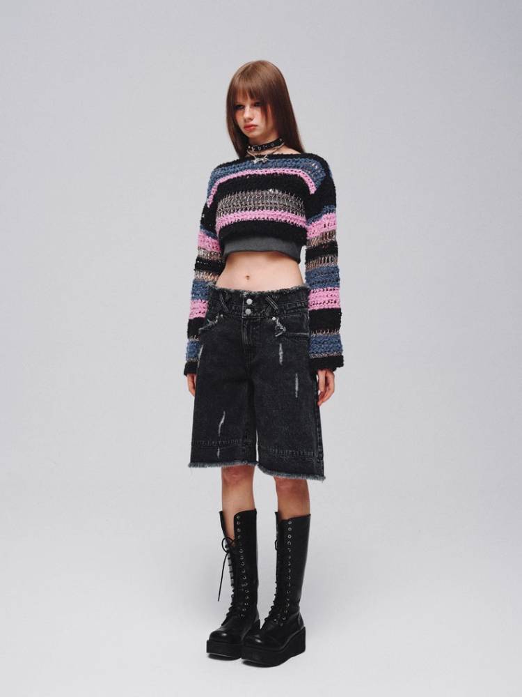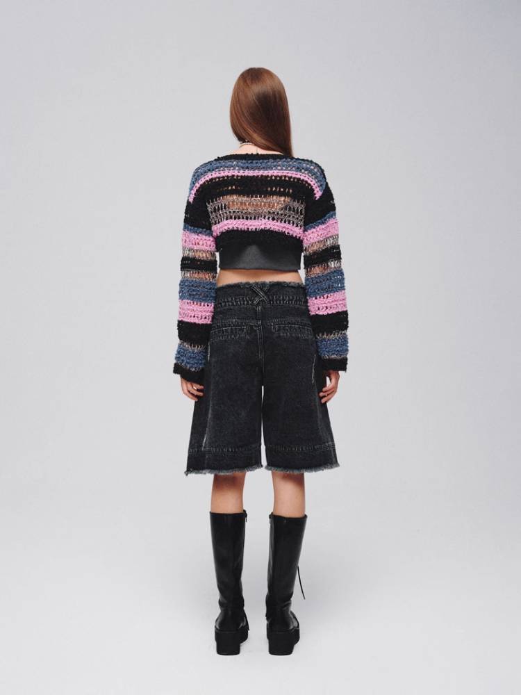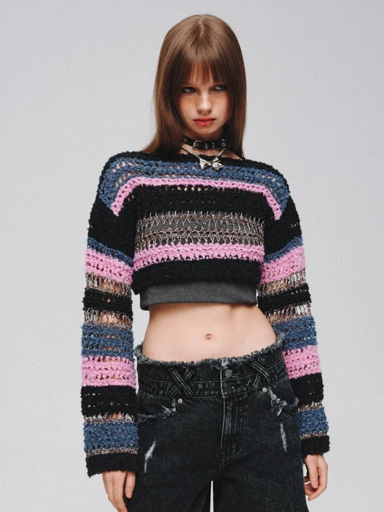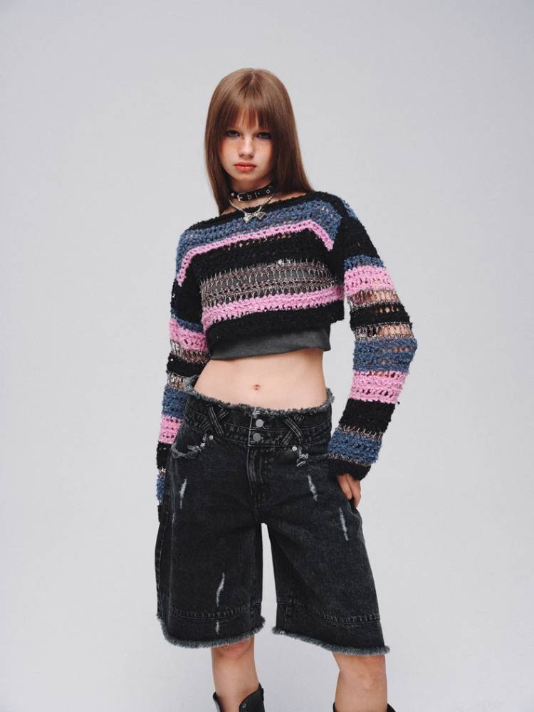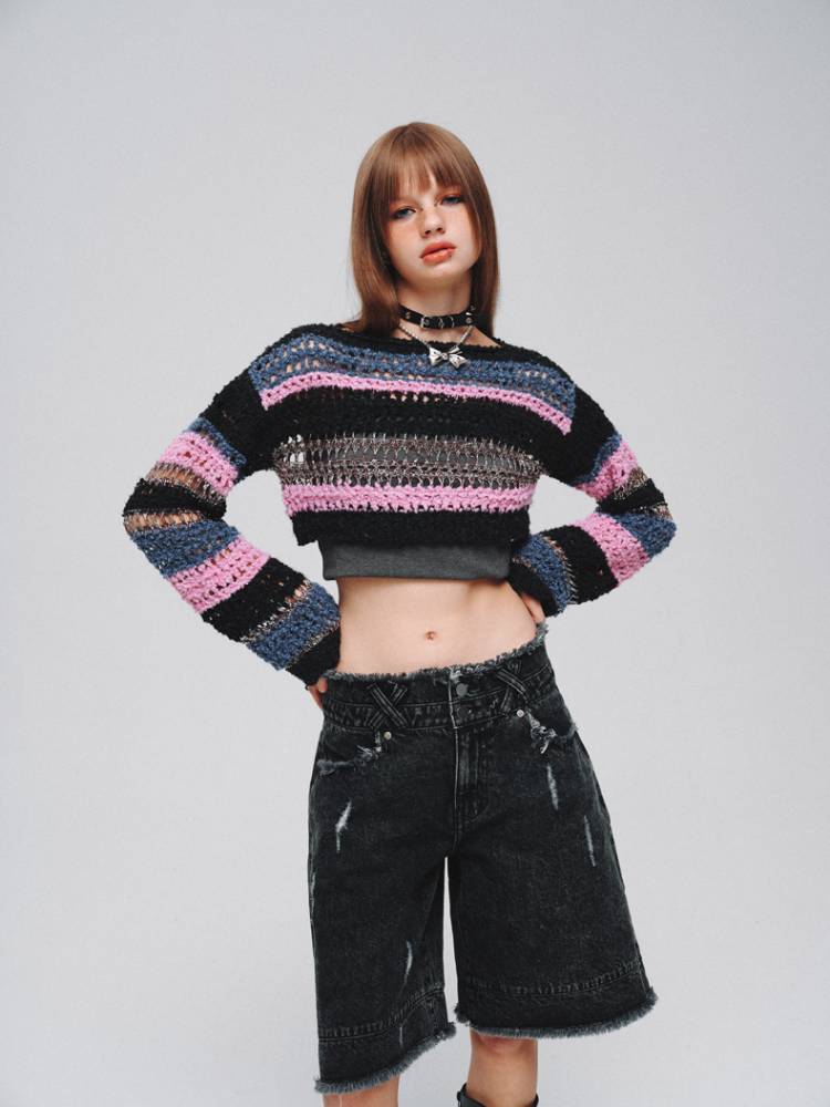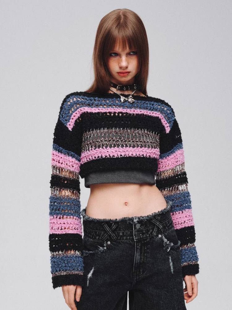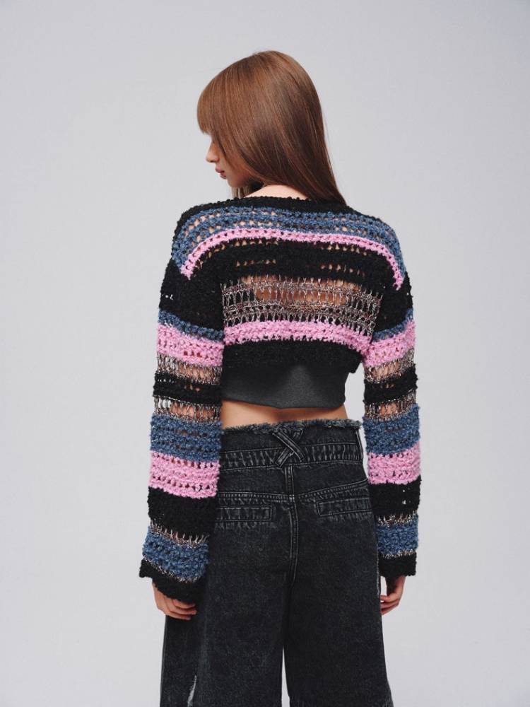 Mixed color striped short sweater【s0000008380】